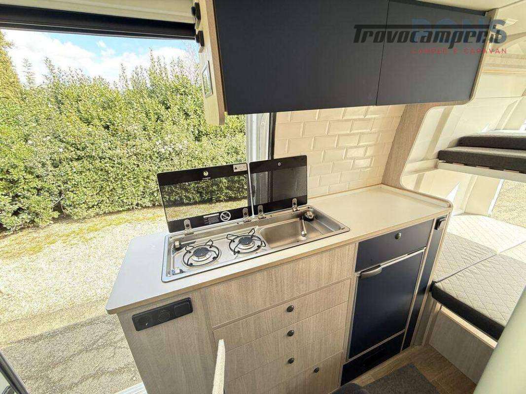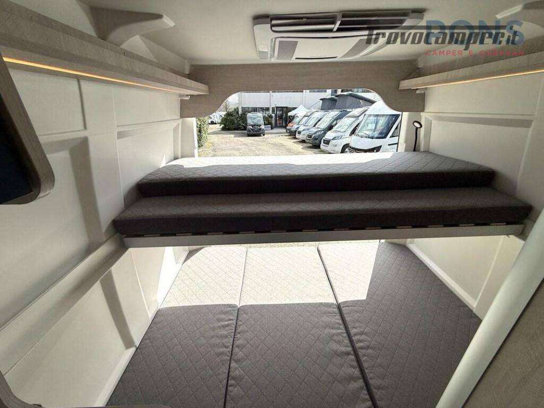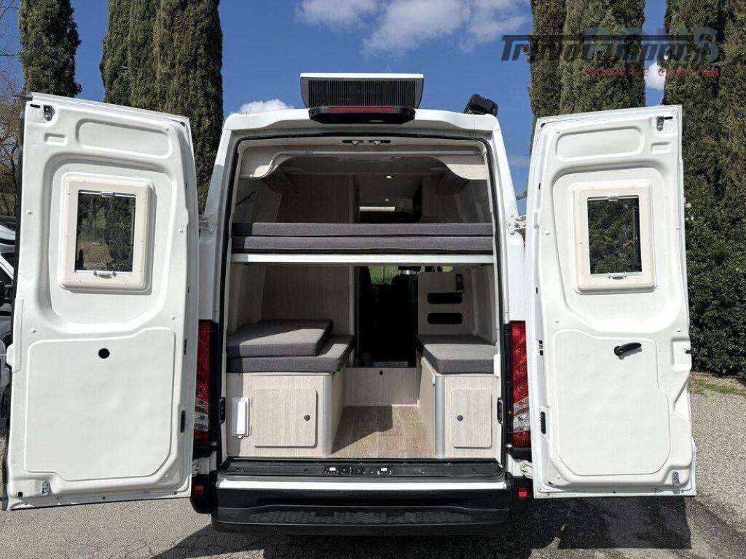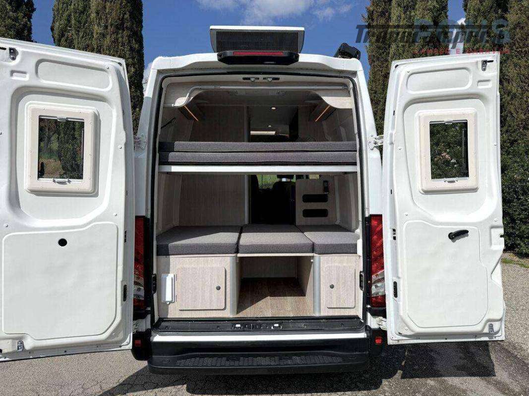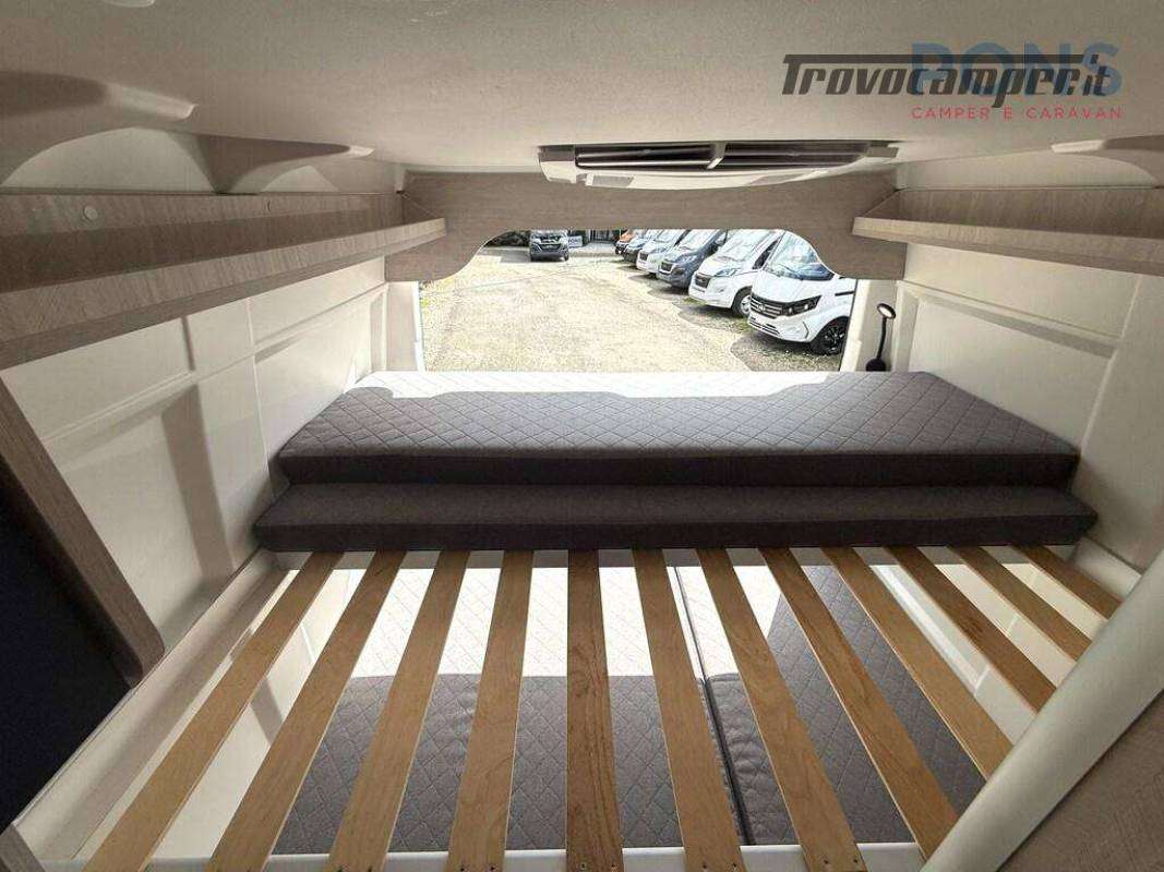 La sua disposizione interna è caratterizzata da due letti matrimoniali a castello, entrambi smontabili, e, lasciando solamente il superiore, si dà la possibilità di poter caricare al suo interno anche le biciclette.
