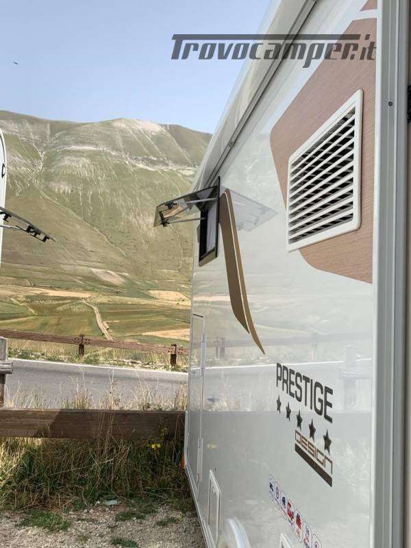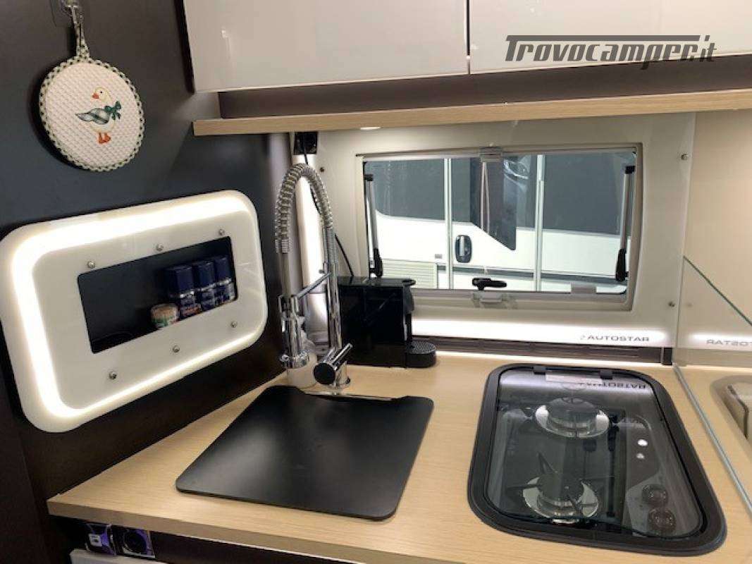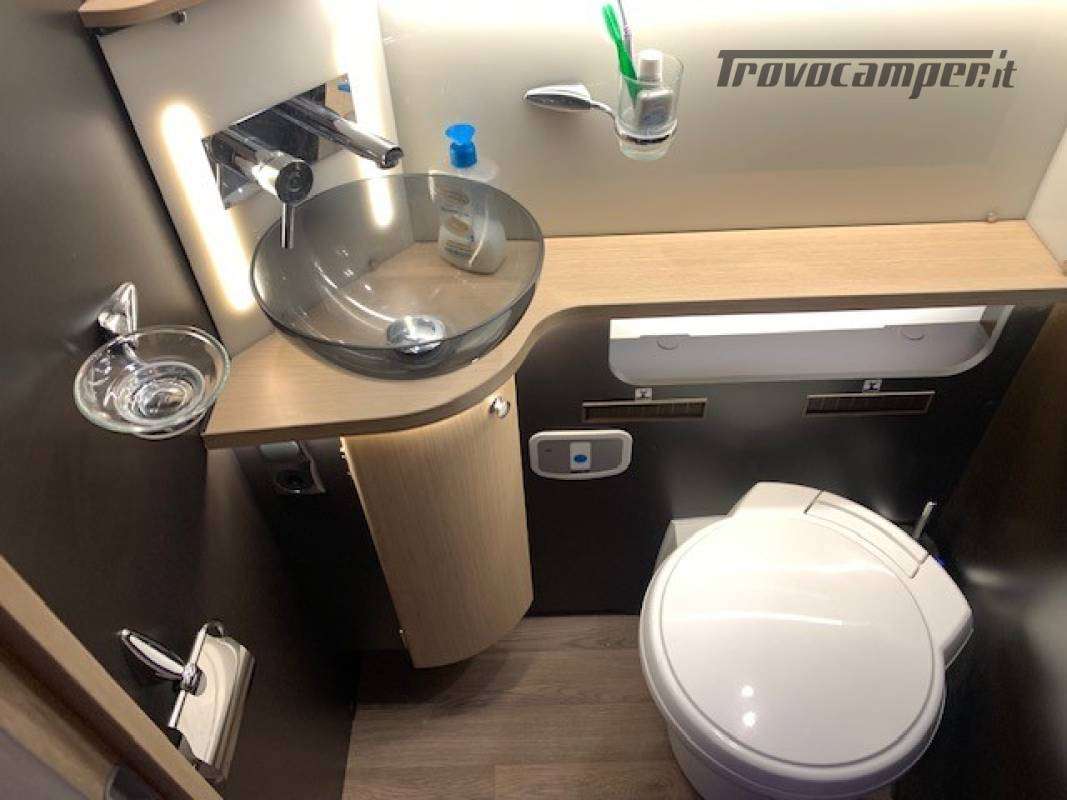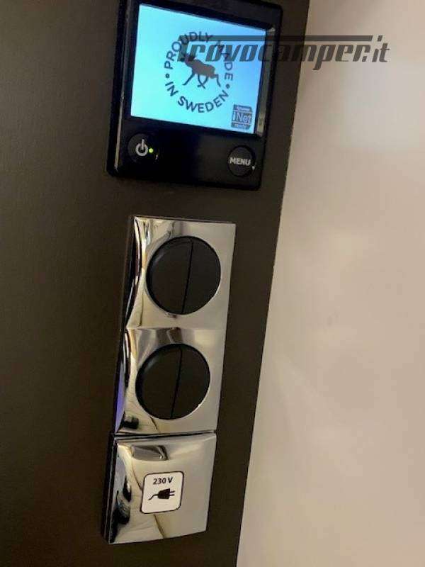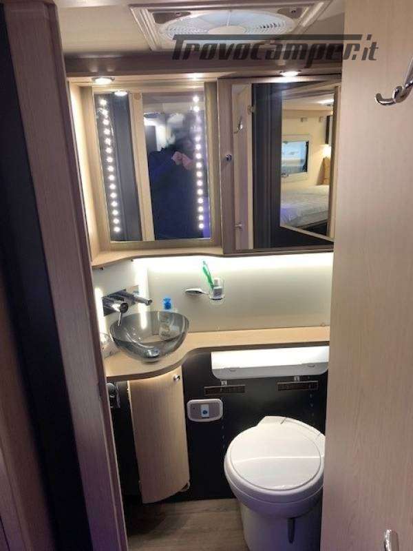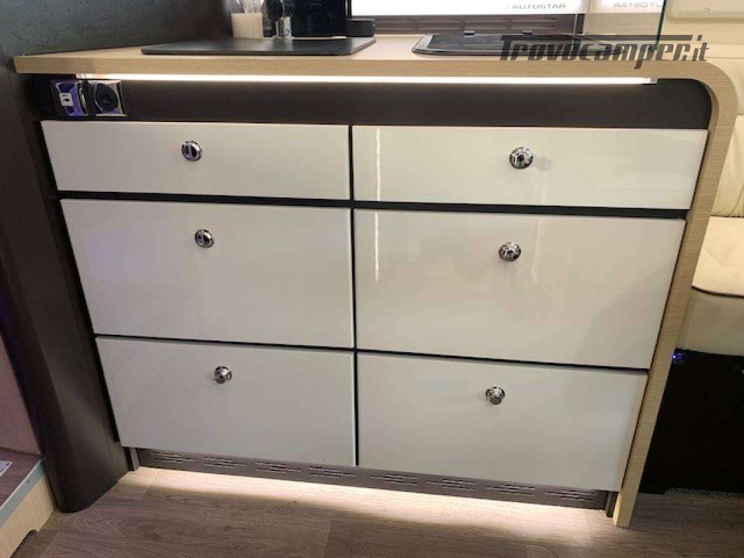 Telaio ribassato AL-KO portata 3.850 kg, riscaldamento a convettori ALDE versione Elite, elettrico ed a gas, scambiatore termico, programmazione da pannello, app smart-phone, da remoto con sistema I-Net. Comando duo control gas, protezione in marcia "gas drive protection". Pack completo, sicurezza, elettrici, climatizzazione, porta guidatore lusso, porta cellula lusso, tappeto riscaldato a liquido in cabina. Cellula "Protec-star", rivestimento esterno in Alufiber, rivestimento termico ed acustico rinforzato, isolamento e rigidità della cellula in Stirofoam 100%, doppio pavimento tecnico su tutta la lunghezza, con doppio vano cassetta wc, multimedia touch screen, android auto, Apple car play, navigatore, 4 telecamere full vision 360° con monitor, retrovisori tipo Bus, oscurante termico parabrezza, frigo trivalente da 175L AES, fornello a 2 fuochi grande e rubinetto con flessibile. Letti gemelli con materassi memory misure 80x214 e 80x210. Doccia esterna calda/fredda, presa gas esterna per grill.