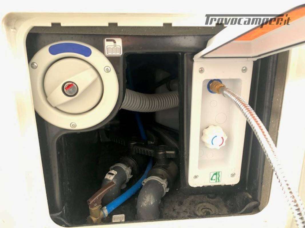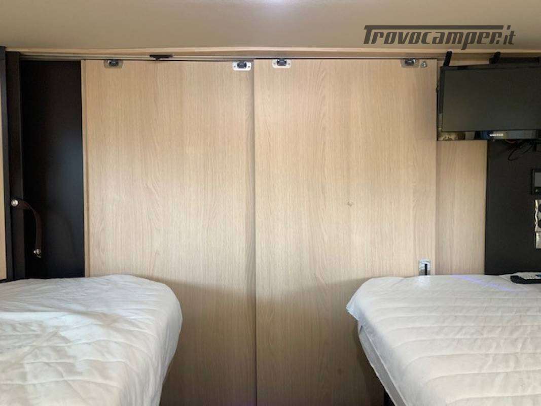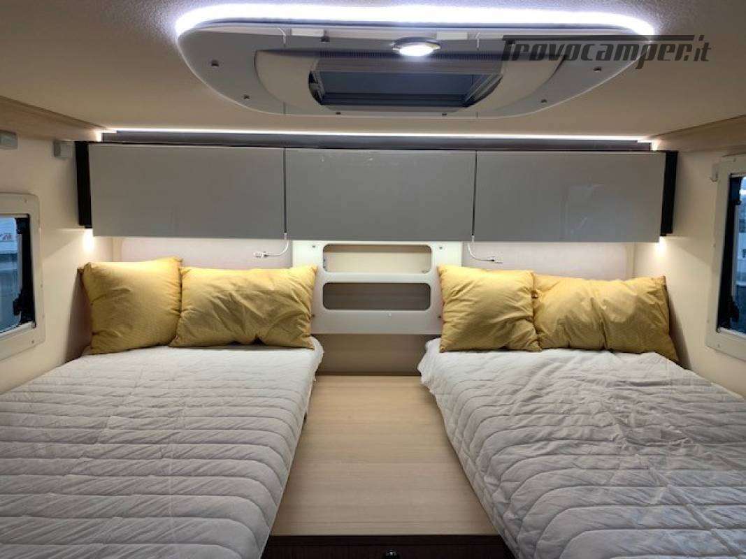 Guida con patente B, omologato per 2 passeggeri 3500 Kg, 2 letti gemelli in coda, salotto face to face, garage con porta-moto pollicino e rampa.