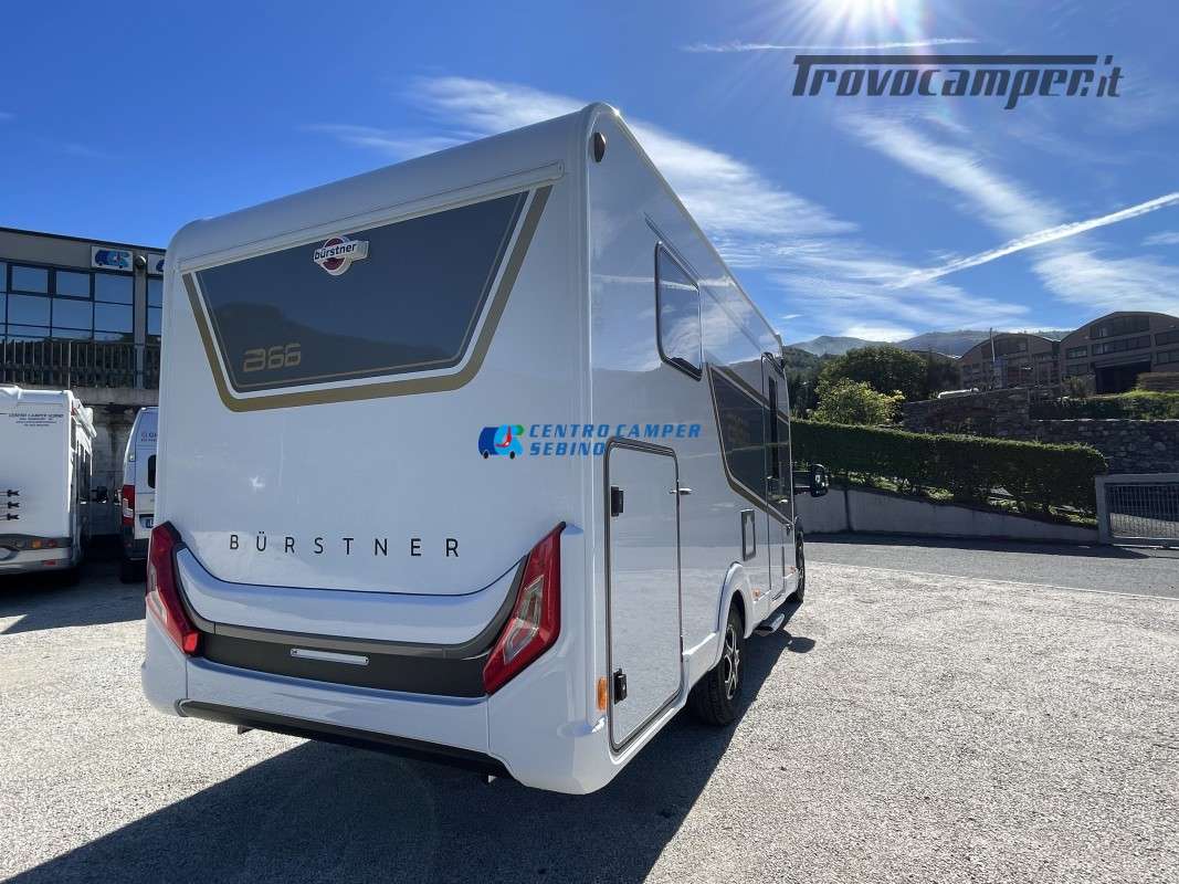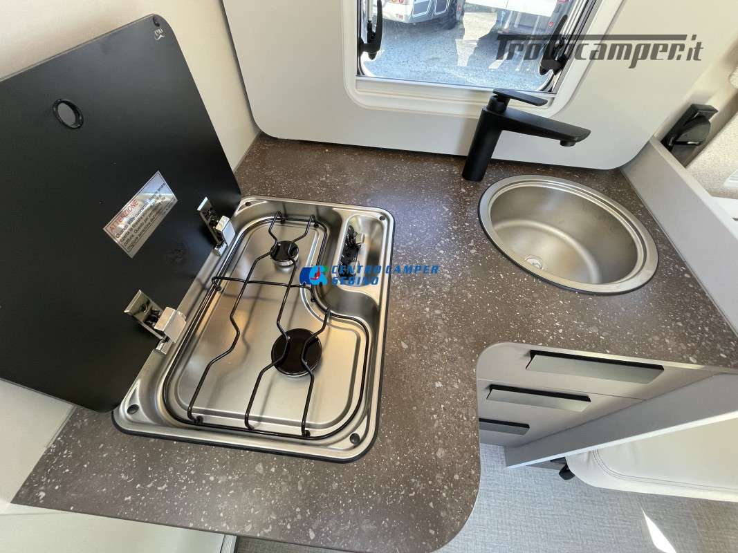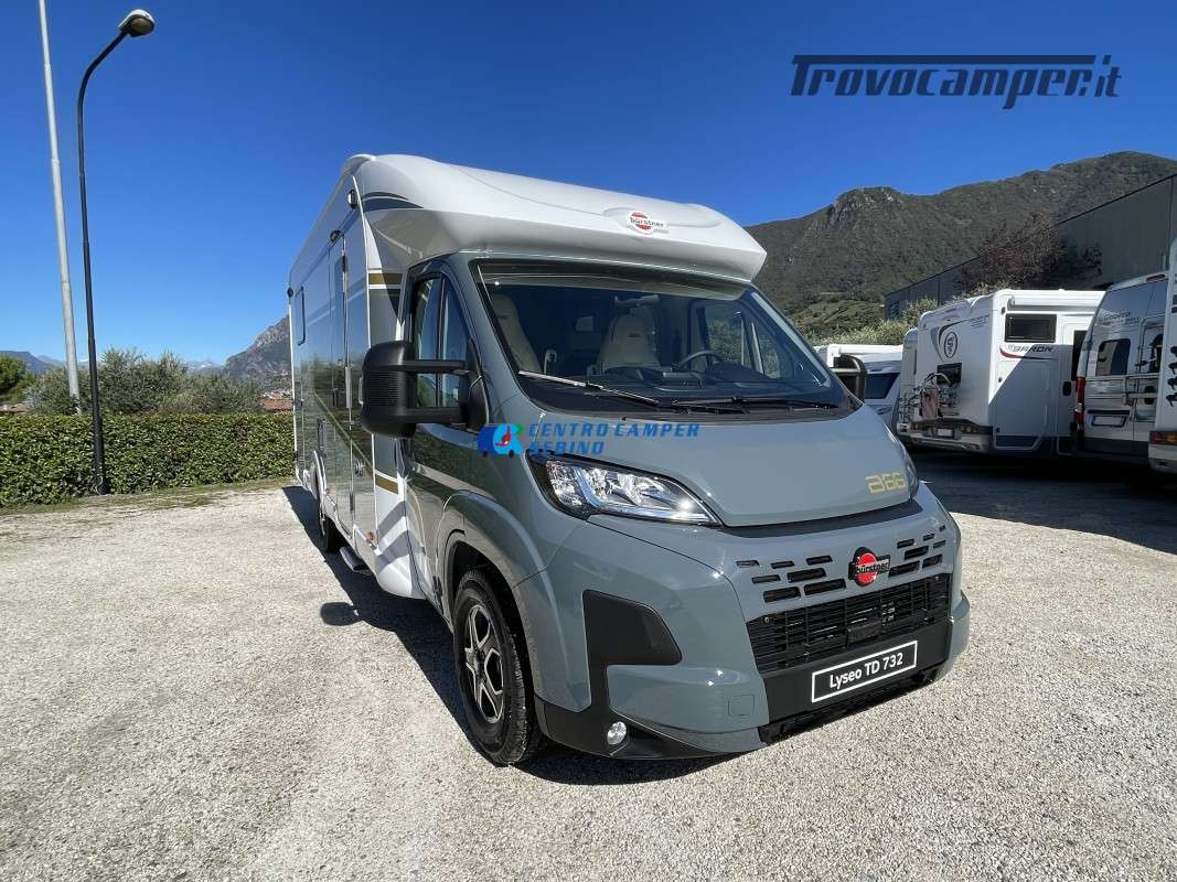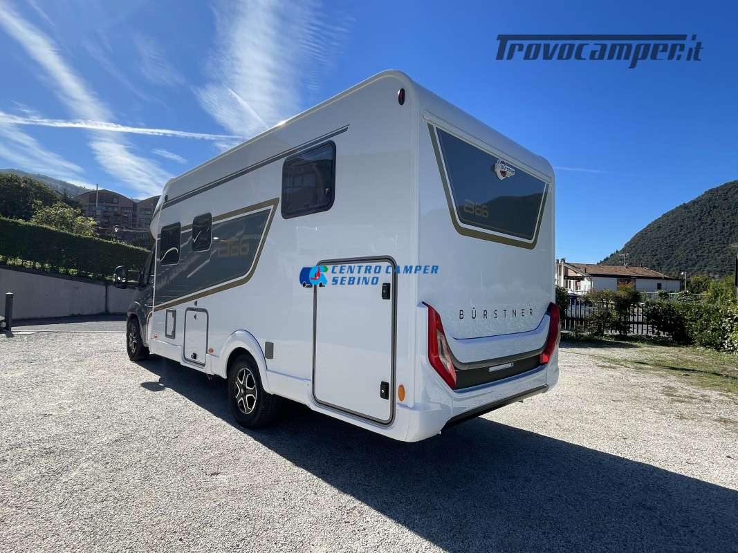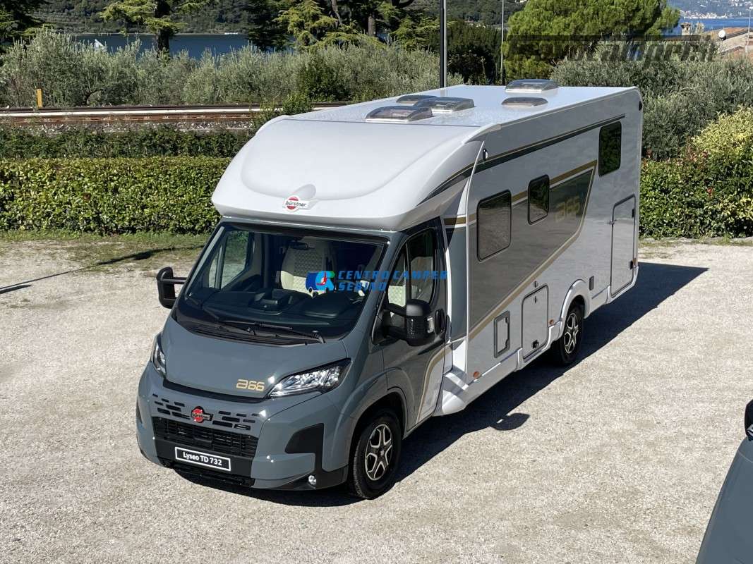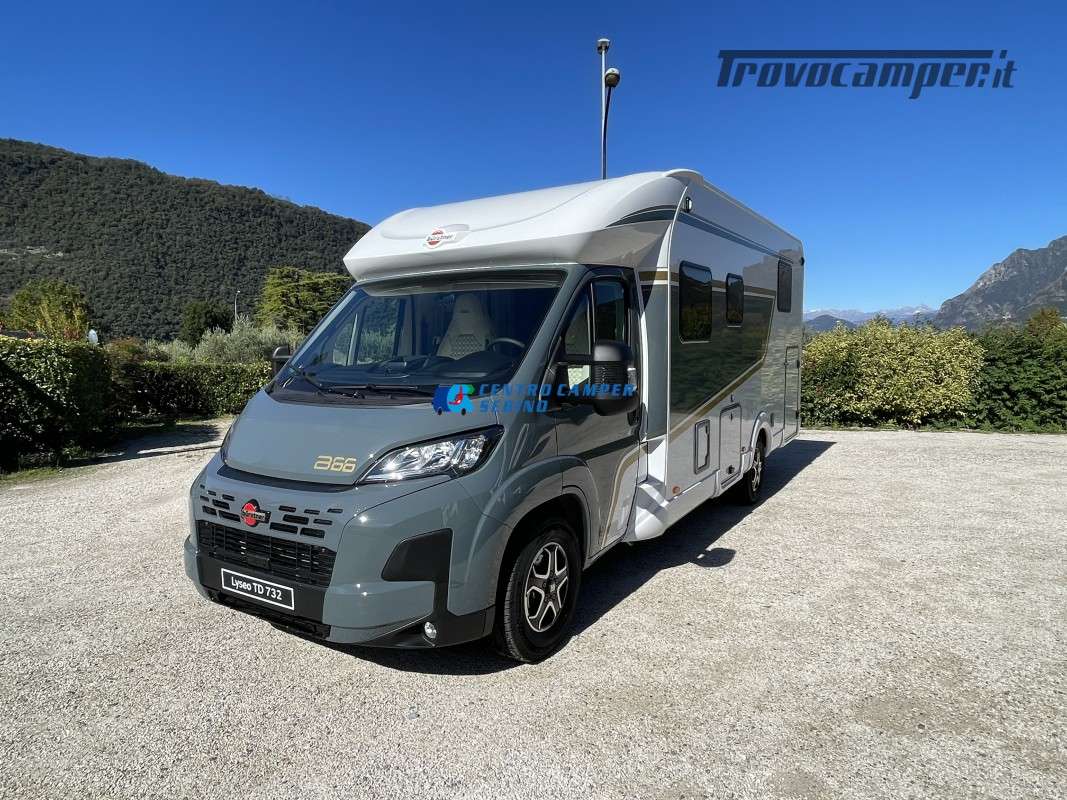 Bürstner B66 732 TD – Special Edition, nuovo camper semintegrale con cambio automatico, 4 posti letto e 4 posti viaggio omologati, letto matrimoniale nautico regolabile in altezza (190x145 cm c.a.), porta divisoria zona giorno e zona notte, comodo living con dinette face-to-face, cucina ad angolo open space con piano cottura a 2 fuochi e lavandino separati (chiusura lavandino girevole e utilizzabile come tagliere), bagno con doccia separata, maxi garage riscaldato con doppia apertura e con presa di corrente e occhielli di ancoraggio con binario.