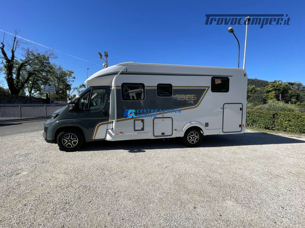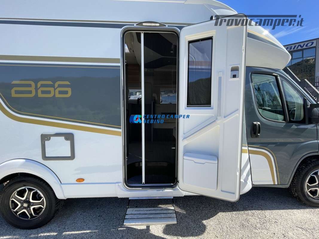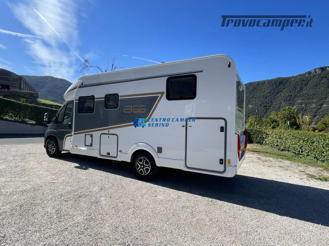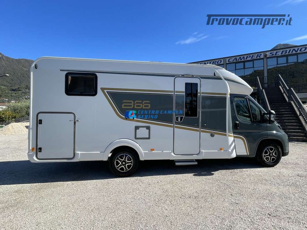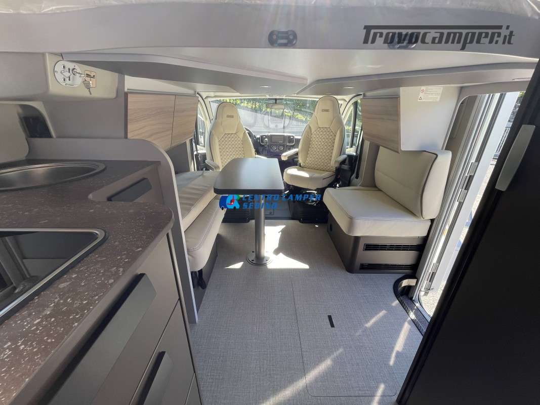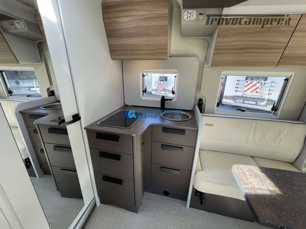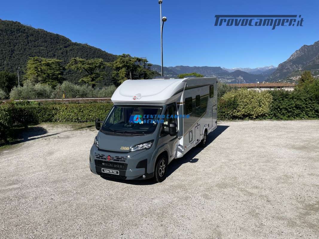 Bürstner B66 732 TD – Special Edition, nuovo camper semintegrale con cambio automatico, 4 posti letto e 4 posti viaggio omologati, letto matrimoniale nautico regolabile in altezza (190x145 cm c.a.), porta divisoria zona giorno e zona notte, comodo living con dinette face-to-face, cucina ad angolo open space con piano cottura a 2 fuochi e lavandino separati (chiusura lavandino girevole e utilizzabile come tagliere), bagno con doccia separata, maxi garage riscaldato con doppia apertura e con presa di corrente e occhielli di ancoraggio con binario.