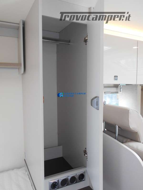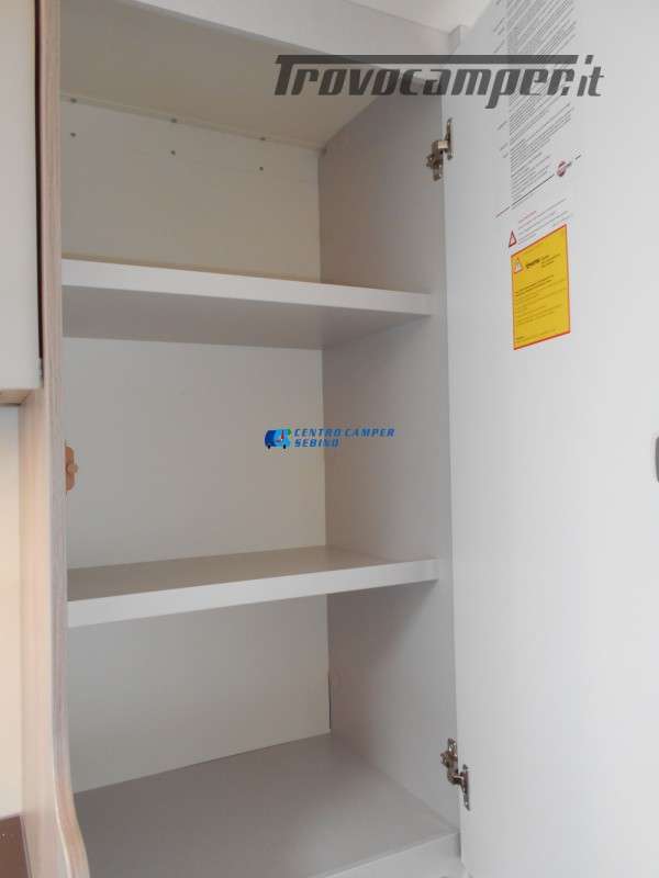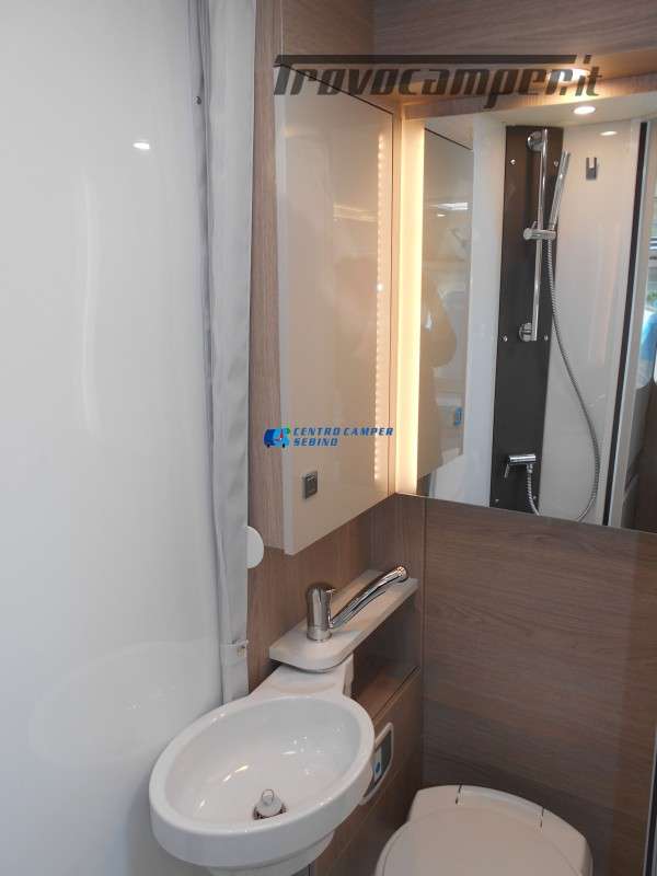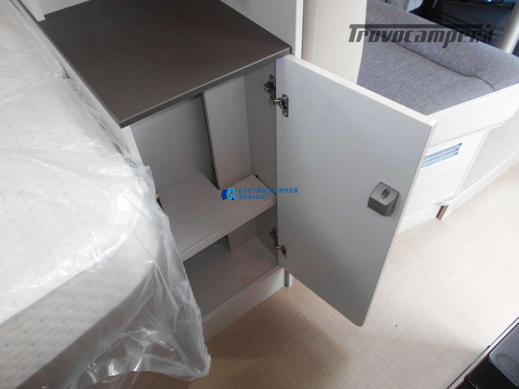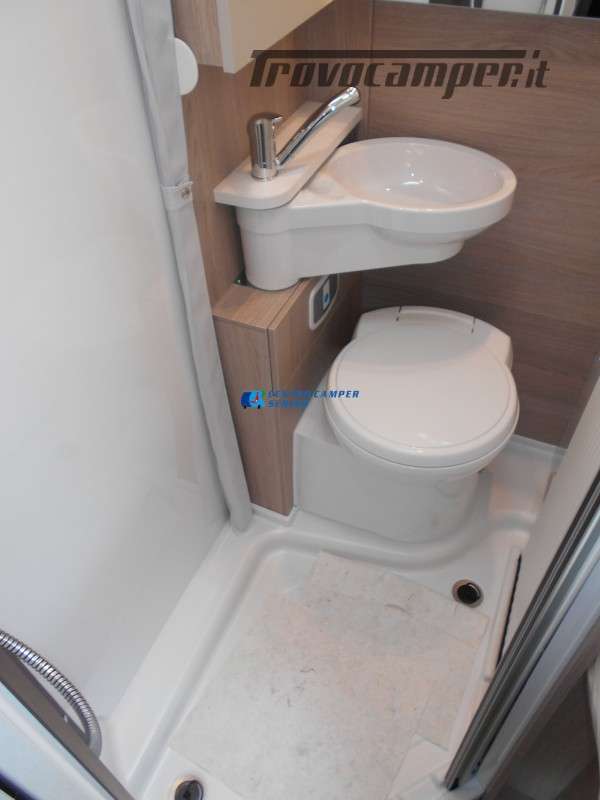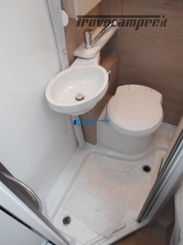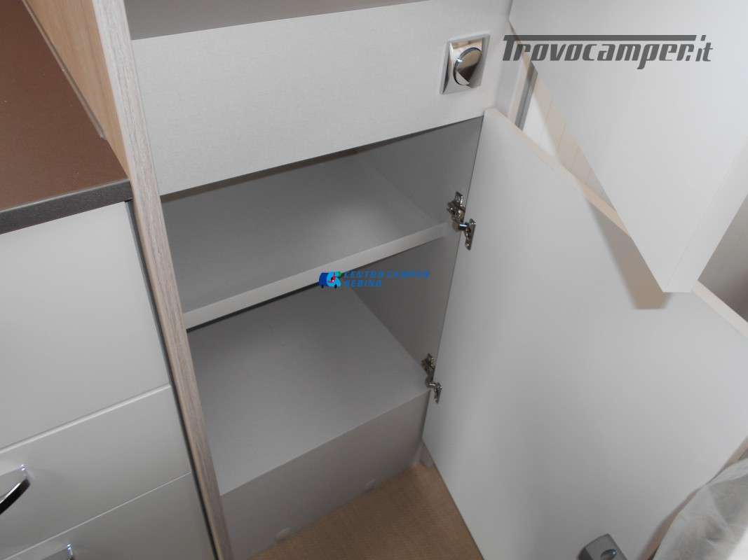 Compatto ma spazioso con 2 posti letto sempre pronti (letto matrimoniale francese) e letto supplementare ricavabile dalla dinette, ottimo stivaggio sotto il letto matrimoniale, 4 armadi interni e grande bagno con doccia separata e lavandino girevole.