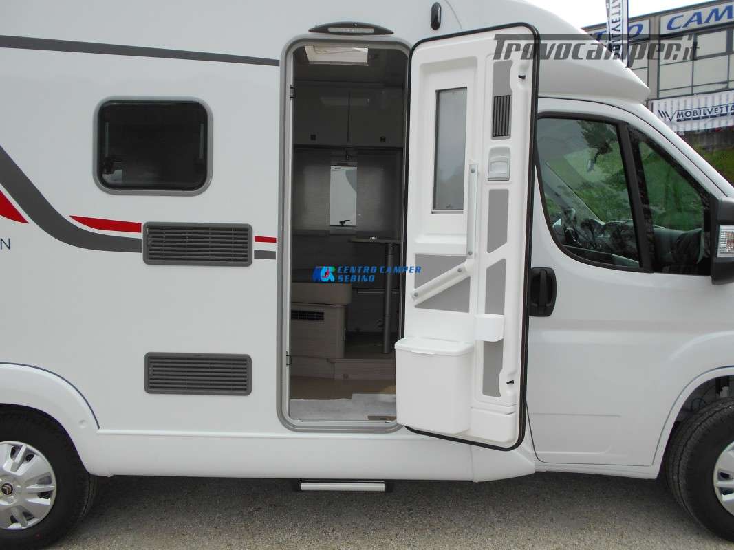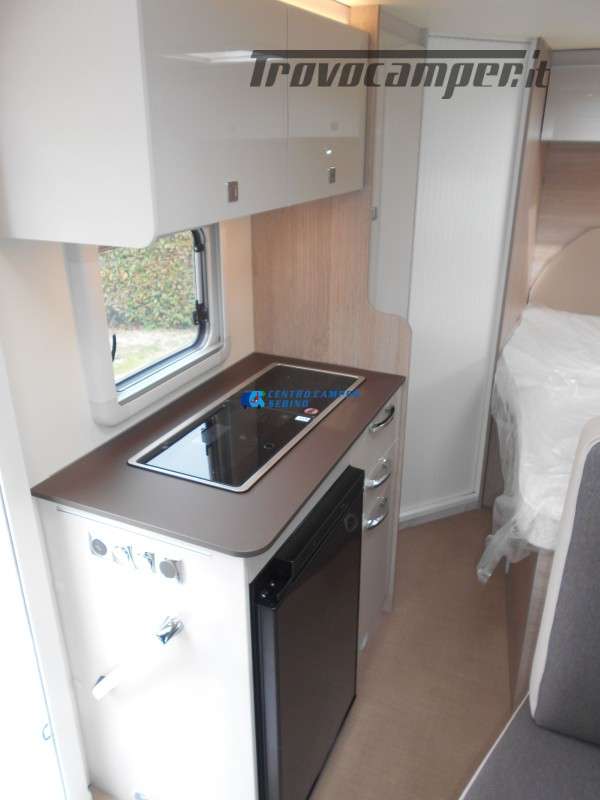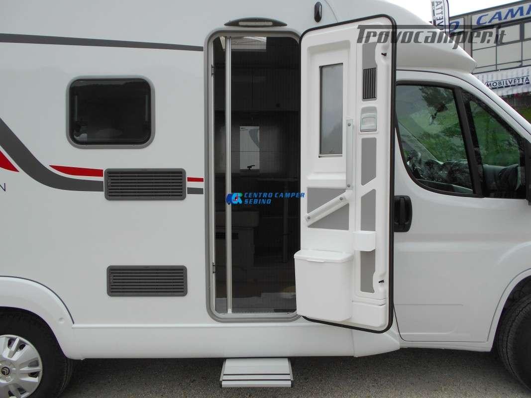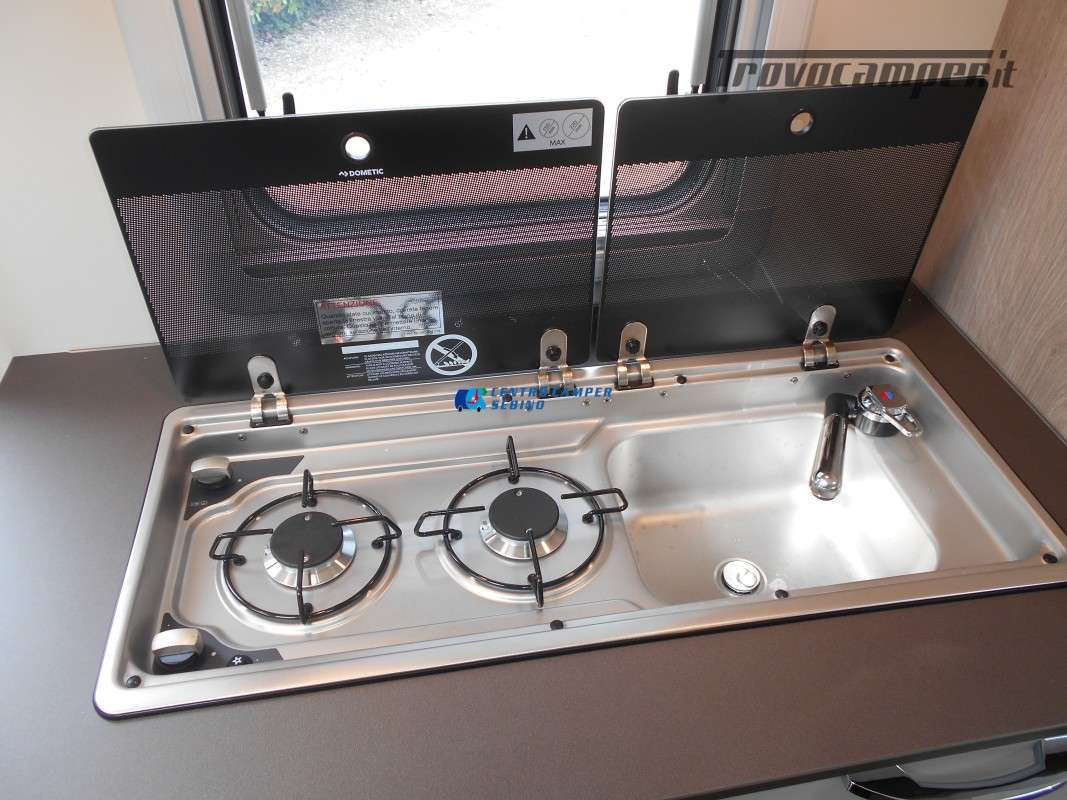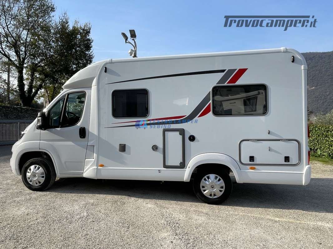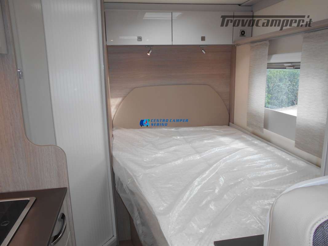 Compatto ma spazioso con 2 posti letto sempre pronti (letto matrimoniale francese) e letto supplementare ricavabile dalla dinette, ottimo stivaggio sotto il letto matrimoniale, 4 armadi interni e grande bagno con doccia separata e lavandino girevole.
