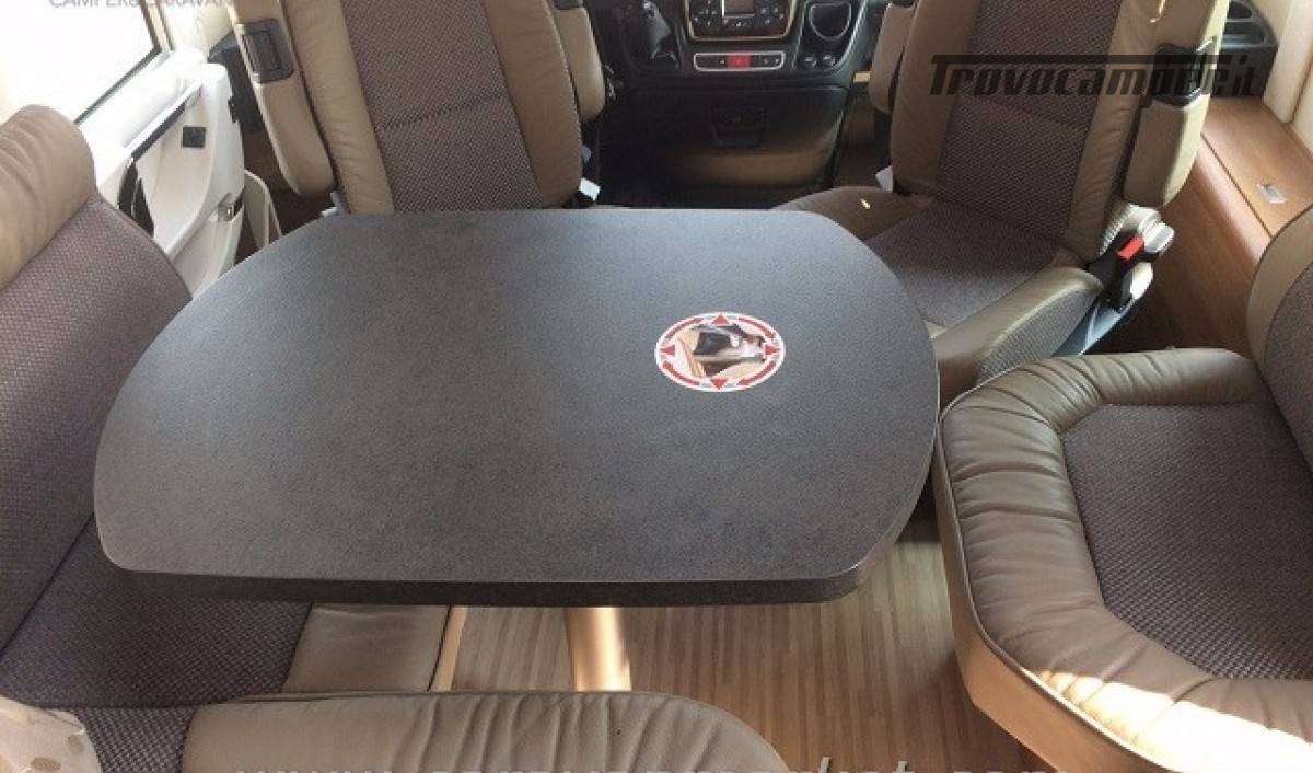 Doppio pavimento riscaldato , Luci Led diurne, Sedili cabina girevoli , Lettocon materasso in schiuma, Finestre Seitz S4, gradino elettrico, Luce esterna, Riscaldamentoa gas Truma Kombi 6000, Tetto in vetroresina.