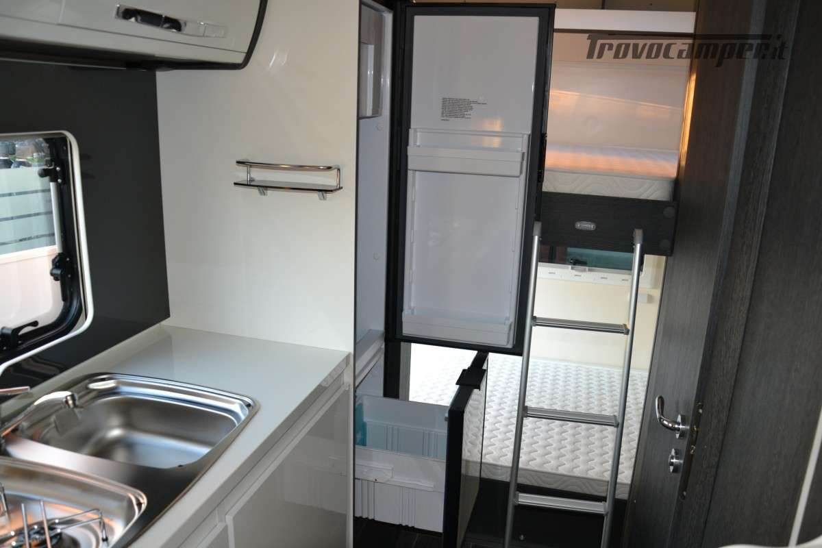 Trazione anteriore, 6 rapporti + retro Marcia, Controllo velocità da crociera (cruise control) ,Computer di bordo, Sensori temperatura esterna, Doppi Braccioli conducente + passeggero, Fodere sedili cabina in tinta, Specchietti elettrici, Chiusura centralizzate, ABS – EBD, Climatizzato, Doppio air bag, Autoradio con lettore cd, Alza cristalli elettrici, Scocca in vetro resina ad alta densità, Tetto antigrandine, pavimento e pareti con estruso plastico per maggiore isolamento STYROFOAM, Allarme elettronico volumetrico e perimetrale, Box doccia separato, Oscuranti termici, Zanzariere, Miscelatori, Illuminazione a led a basso consumo, Letto mansarda con doghe, Letti posteriore matrimoniale con doghe, Frigo trivalente 145LT. accensione elettronica CON SELEZIONE AUTOMATICA, Porta ingresso con zanzariera plissettata, Porta cellula con finestra, Riscaldatore acqua COMBI Diesel, Riscaldatore aria COMBI Diesel, Tv lcd con Impianto tv digitale completo di piastra e profilo scorrevole, OBLO’PANORAMICO con zanzariera e oscuranti, oblò con oscuranti e zanzariere, Oblò doccia, Veranda, Terzo stop, Retro camera, Pannello solare 120 W, Paraurti in tinta, Tessuti originali nuovi, Pavimento protetto, Coibentazione ad alta densità.