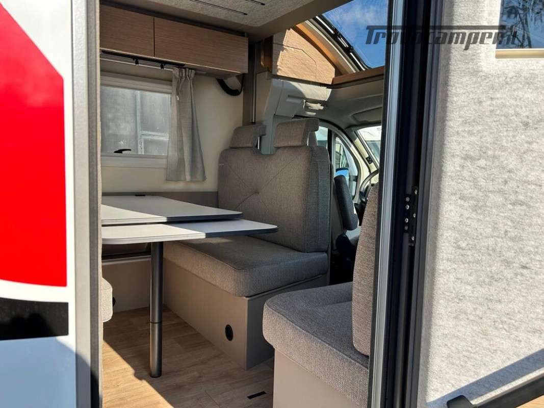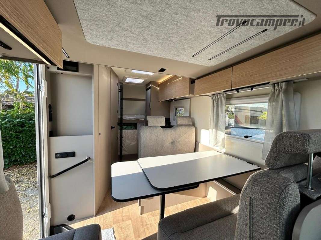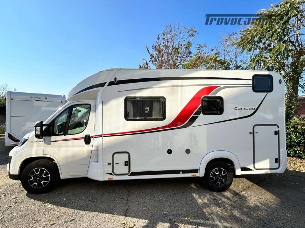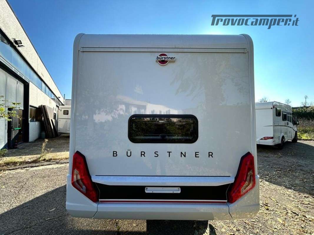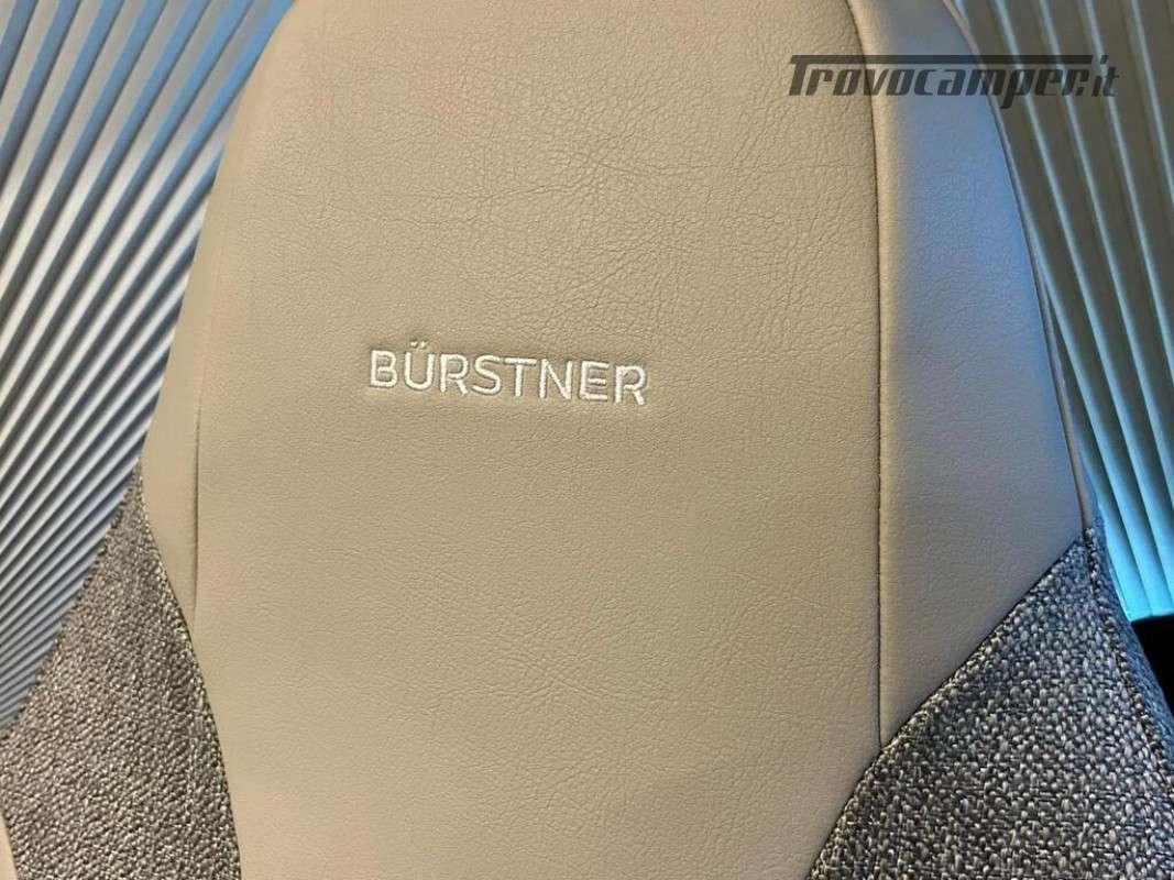 - PACCHETTO COMFORT (Oscuranti plissettati in cabina Sun-Roof, Porta ingresso larga con finestra e chiusura centralizzata, Finestre con cornici, Oblò 50 x 70 cm, Gradino elettrico, Illuminazione indiretta, My Bürstner App, Schermo di controllo 7"e Sportello garage supplementare lato sinistro);