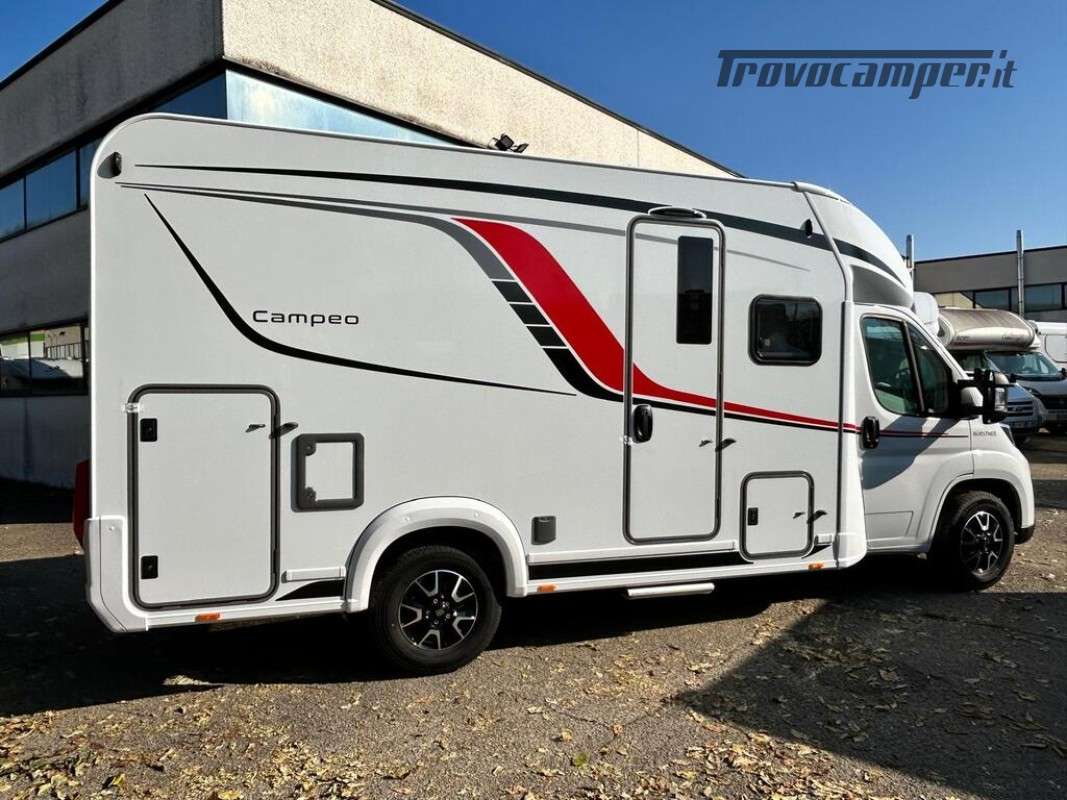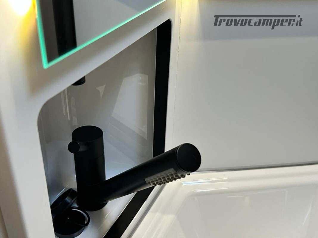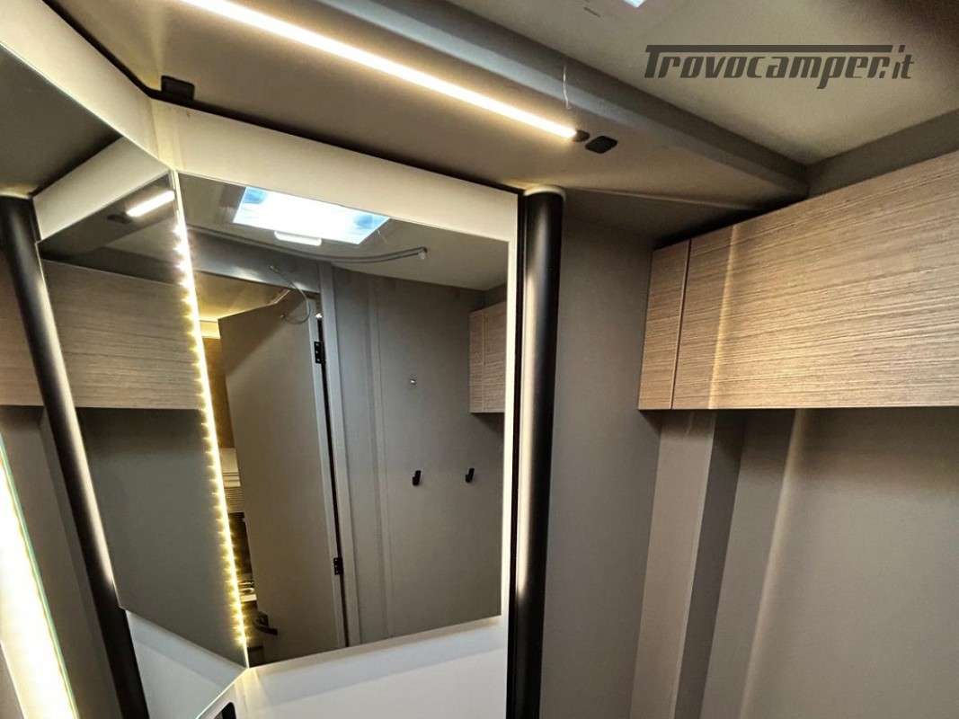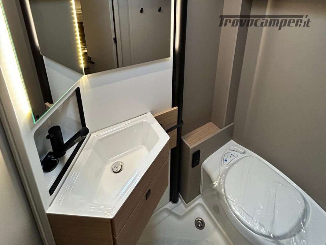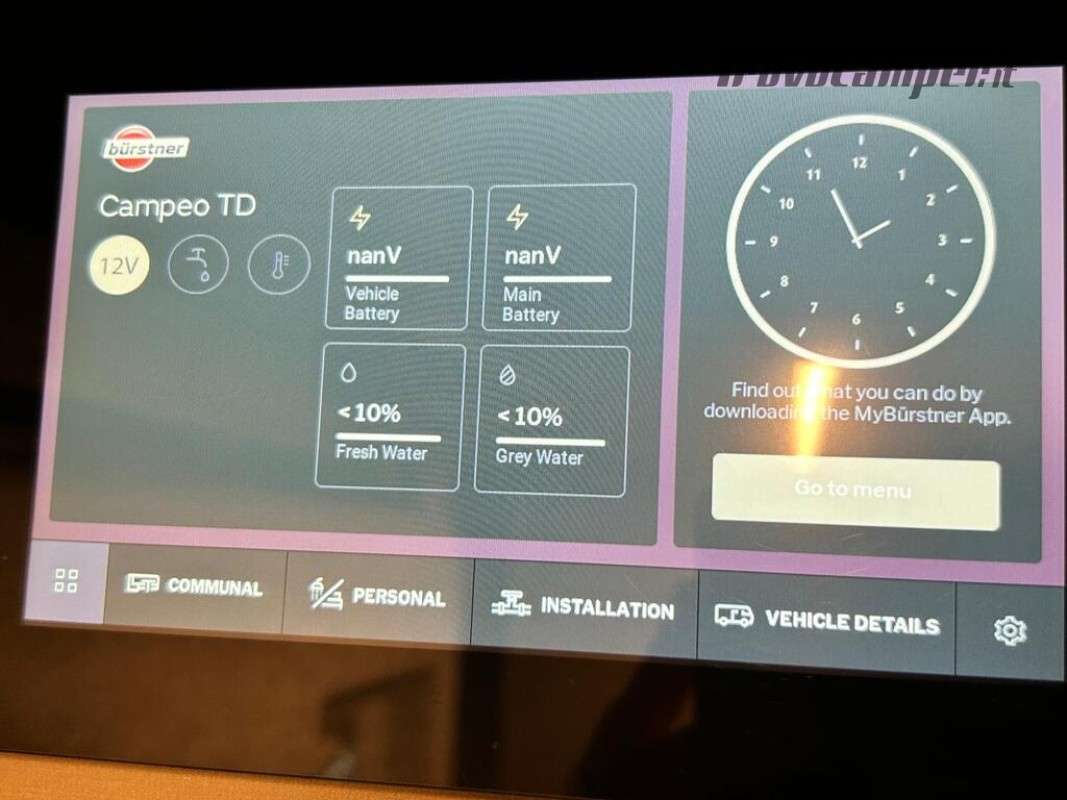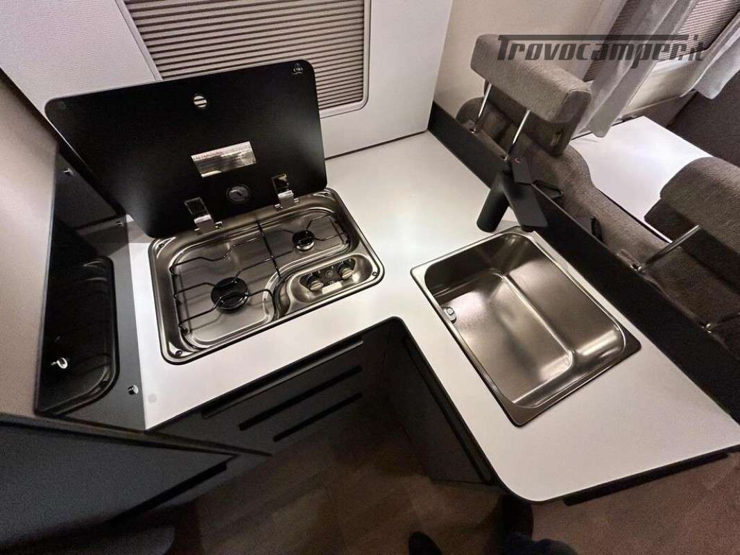 - PACCHETTO COMFORT (Oscuranti plissettati in cabina Sun-Roof, Porta ingresso larga con finestra e chiusura centralizzata, Finestre con cornici, Oblò 50 x 70 cm, Gradino elettrico, Illuminazione indiretta, My Bürstner App, Schermo di controllo 7"e Sportello garage supplementare lato sinistro);
