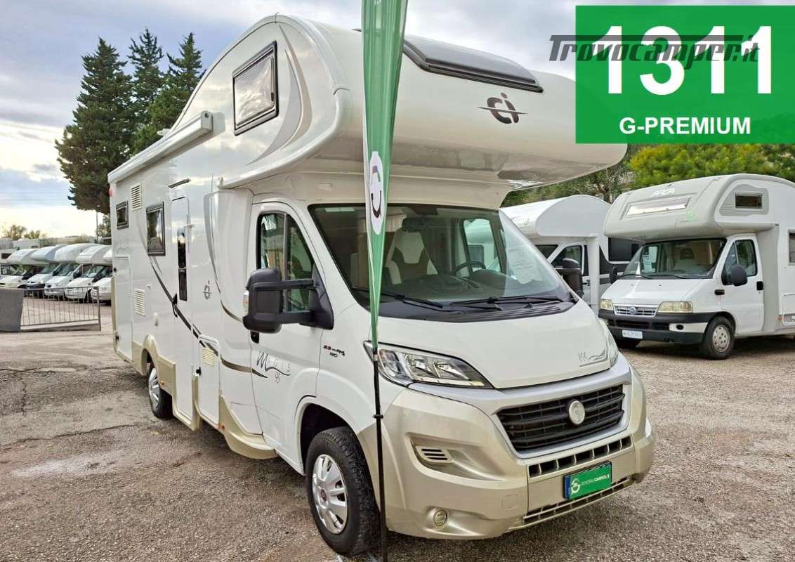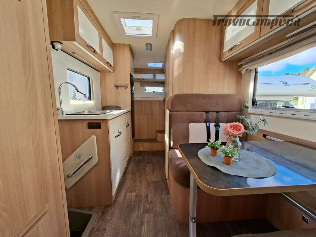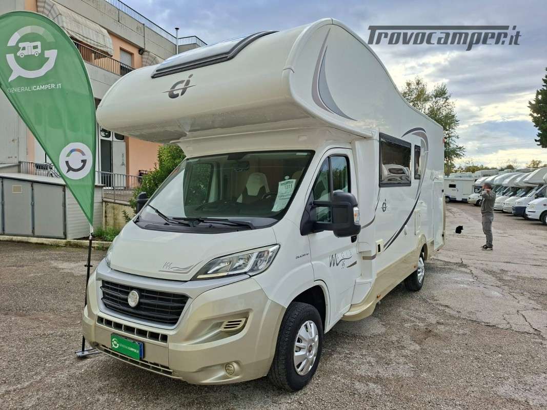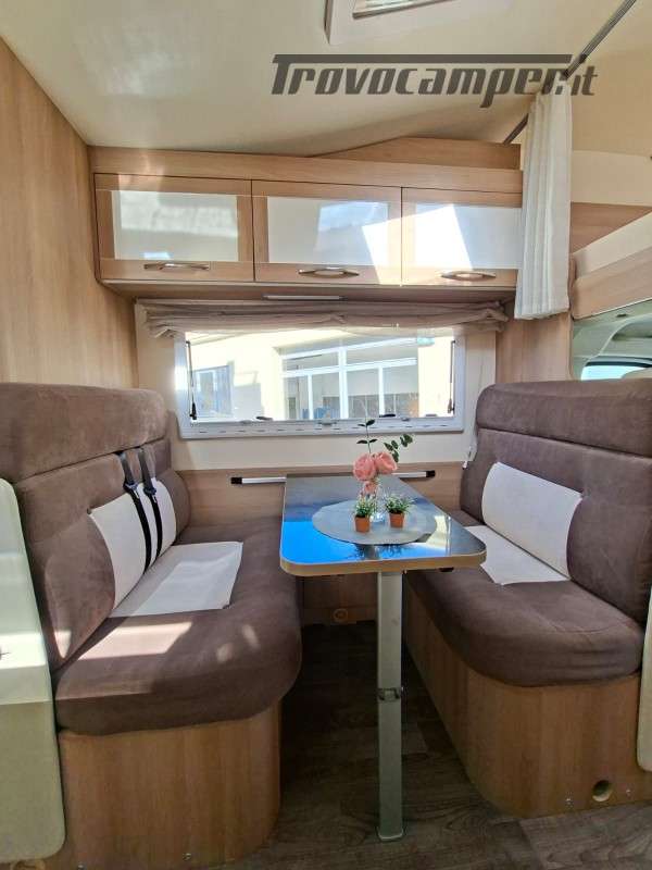 * Tipologia: Camper MANSARDATO | ** Posti Letto 6 | ** Posti Omologati 6 | ABS | Autoradio. | Bagno con Doccia Separata | Braccio TV | Cassetta WC Thetford Estraibile | Chiusura Centralizzata | CLIMA CABINA | CRUISE CONTROL | Dinette Centrale | DOPPIO AIRBAG | Doppio Vano Porta Bombole | FINESTRE SEITZ | FRIGORIFERO TRIVALENTE AUTOMATICO 150L con Congelatore Separato | GARAGE_POSTERIORE a VOLUME VARIABILE | Illuminazione Interna Luci LED | KIT MONITOR con RETROCAMERA | Letto Matrimoniale su Garage | Luce Esterna | PANNELLO FOTOVOLTAICO | Piano Cottura Cucina 3 Fuochi | Porta Cellula con Finestra Oscurante e Zanzariera | Servosterzo | TENDALINO ESTERNO | Truma COMBI (Acqua e Riscaldamento) a GASOLIO | Vetri Elettrici