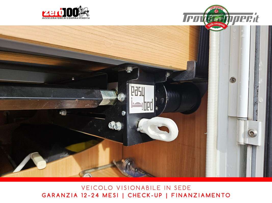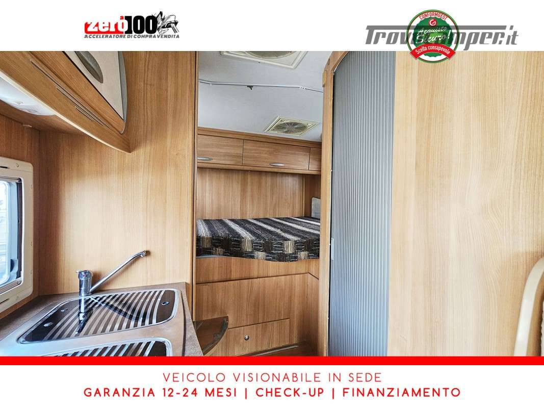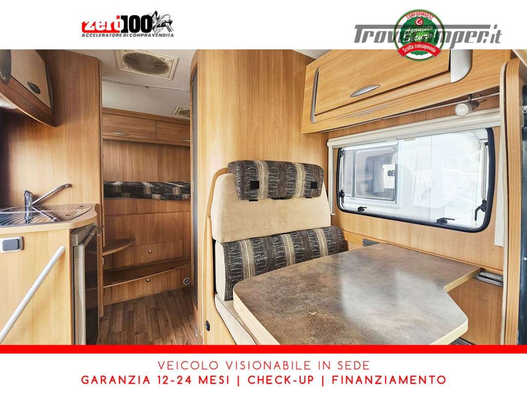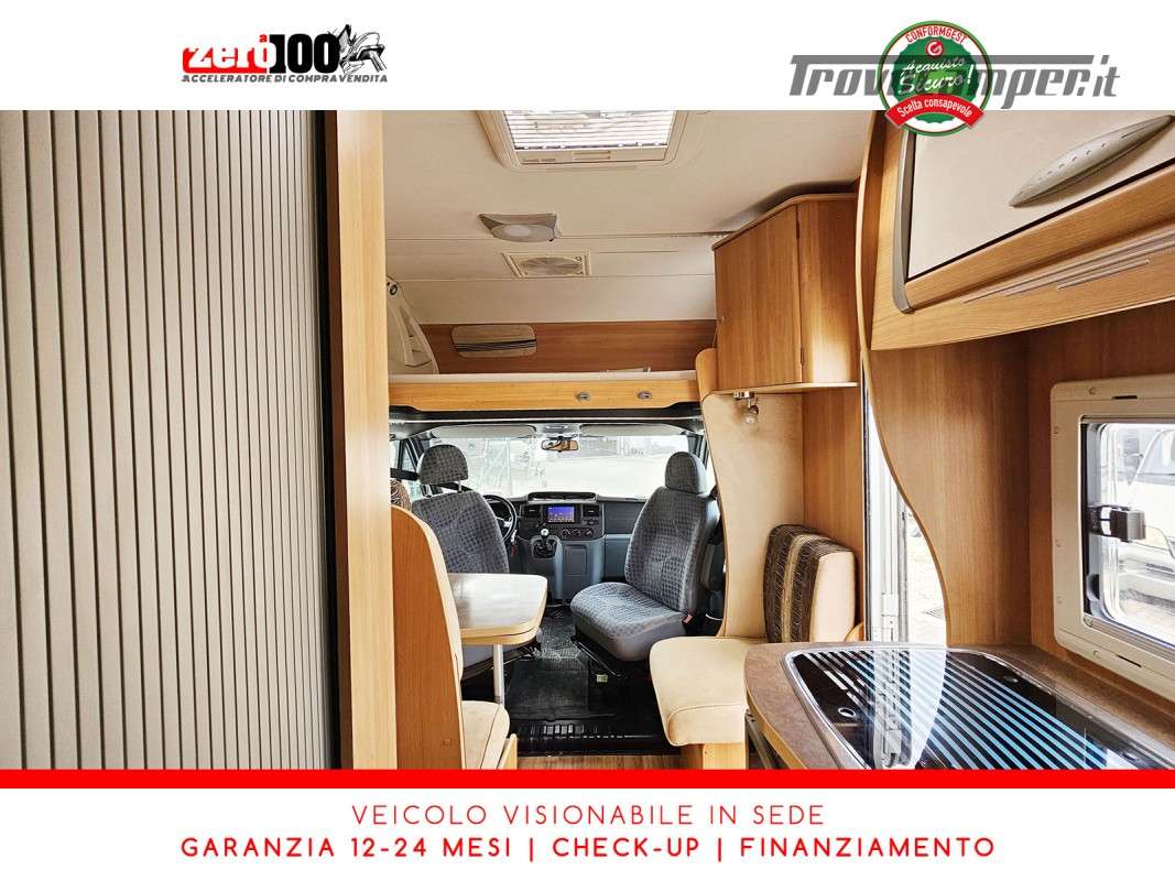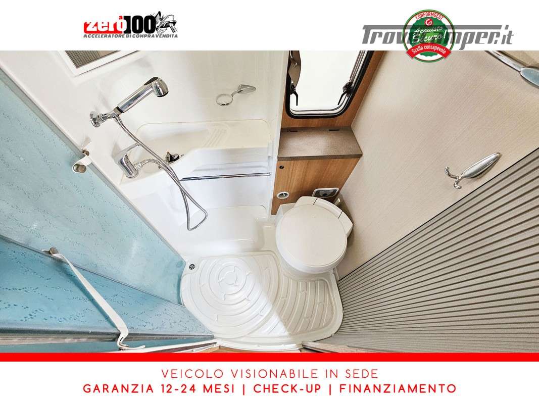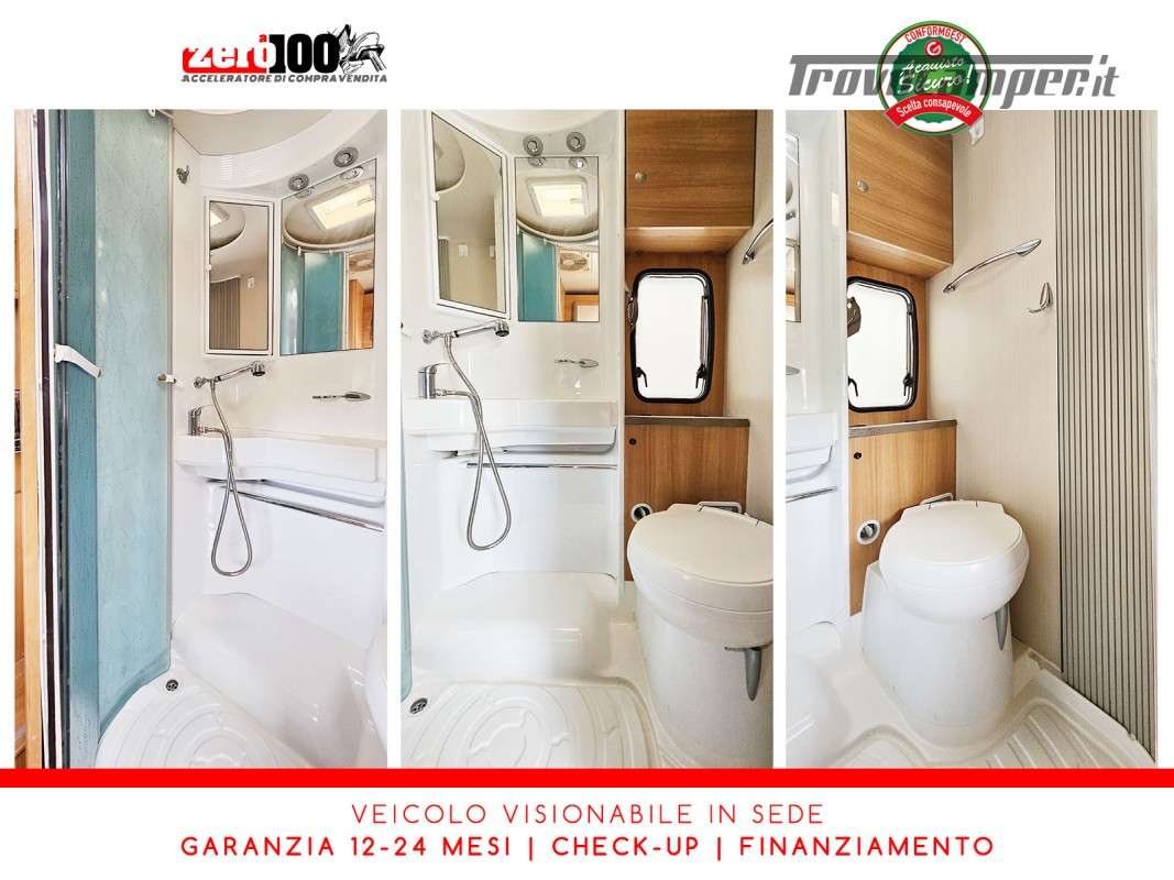 Letto matrimoniale trasversale in coda flex space - Mezza dinette e divanetto lato dx con sedili cabina girevoli - Letto matrimoniale anteriore in mansarda - Cucina lineare 3 fuochi - Frigorifero trivalente basso con cella freezer integrata - Bagno finestrato con box doccia girevole integrato nella toilette - Garage