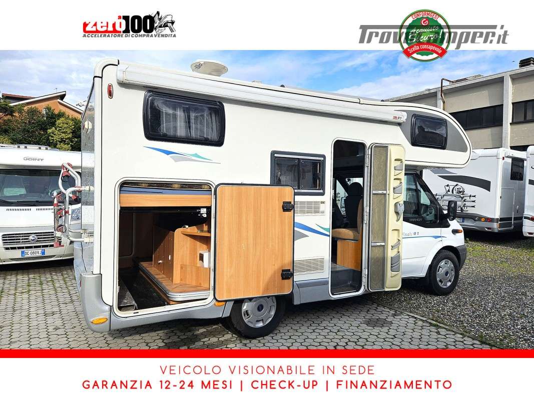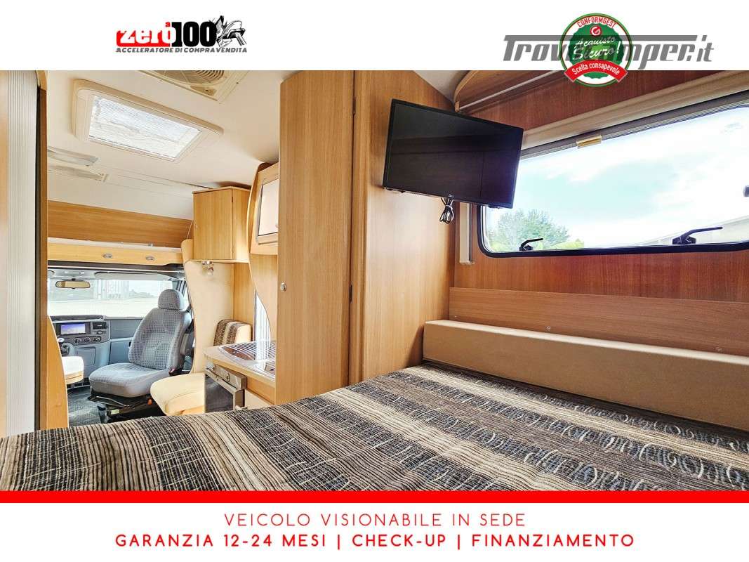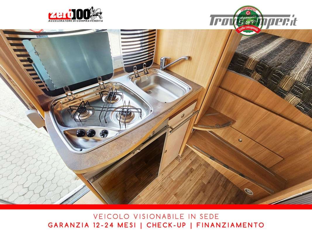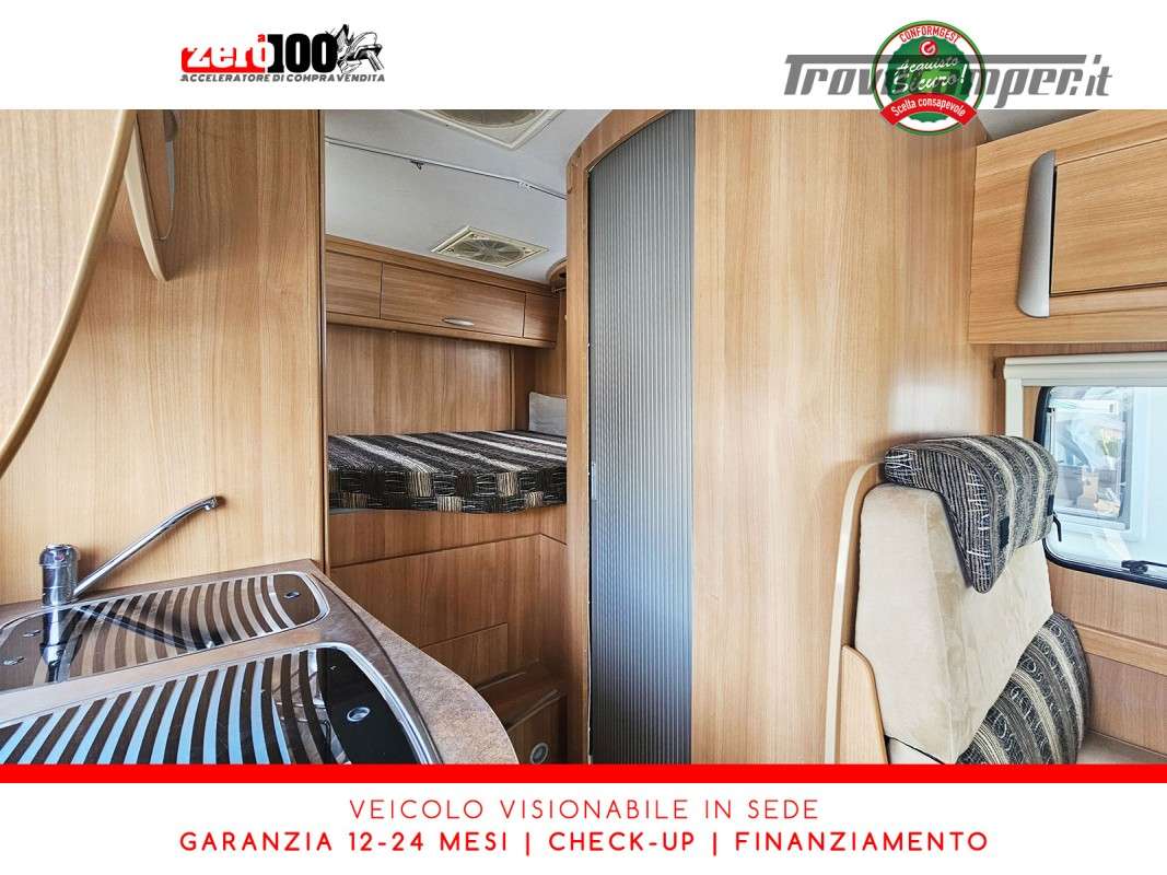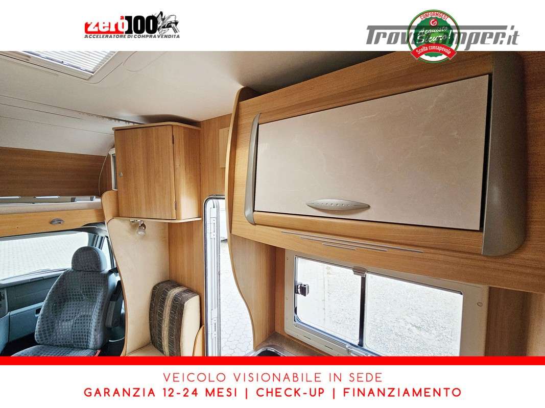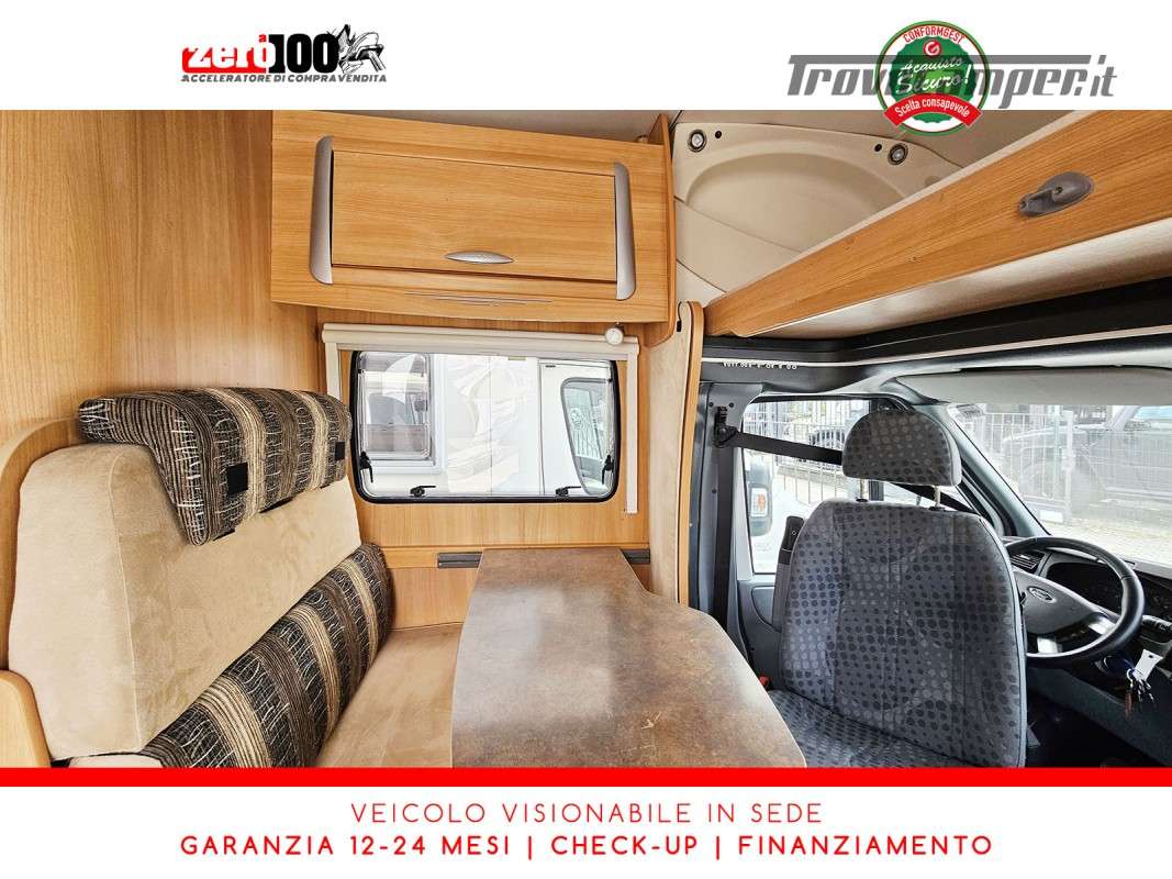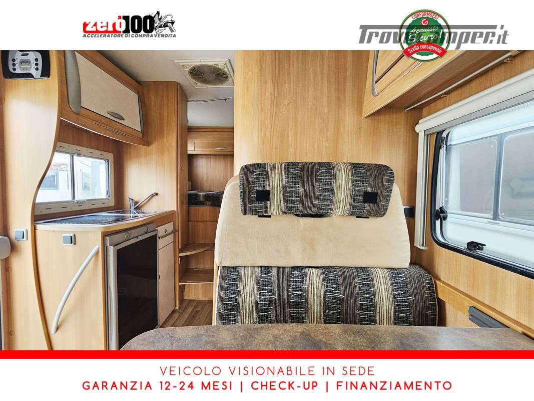 Letto matrimoniale trasversale in coda flex space - Mezza dinette e divanetto lato dx con sedili cabina girevoli - Letto matrimoniale anteriore in mansarda - Cucina lineare 3 fuochi - Frigorifero trivalente basso con cella freezer integrata - Bagno finestrato con box doccia girevole integrato nella toilette - Garage