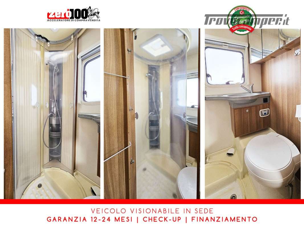 Letto matrimoniale trasversale in coda - Dinette classica trasformabile in letto – Letto matrimoniale in mansarda - Cucina lineare 3 fuochi con cappa aspirante - Frigorifero trivalente 150 lt – Bagno con box doccia girevole - Garage