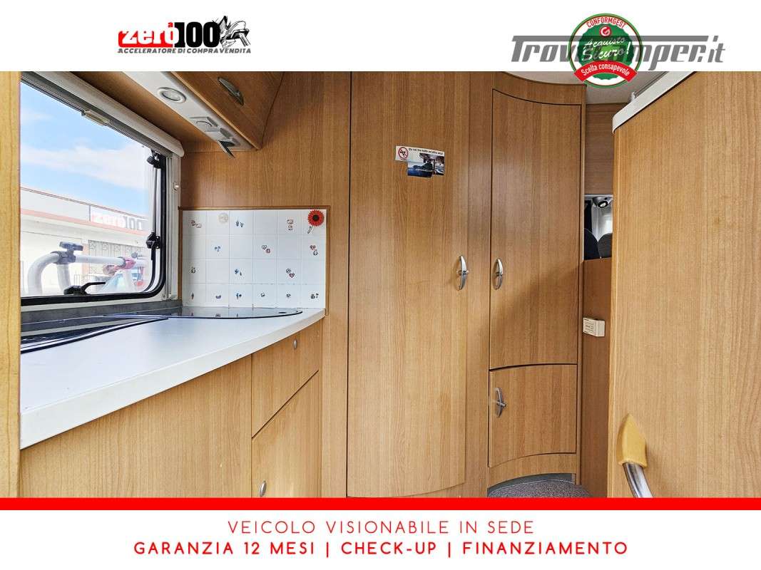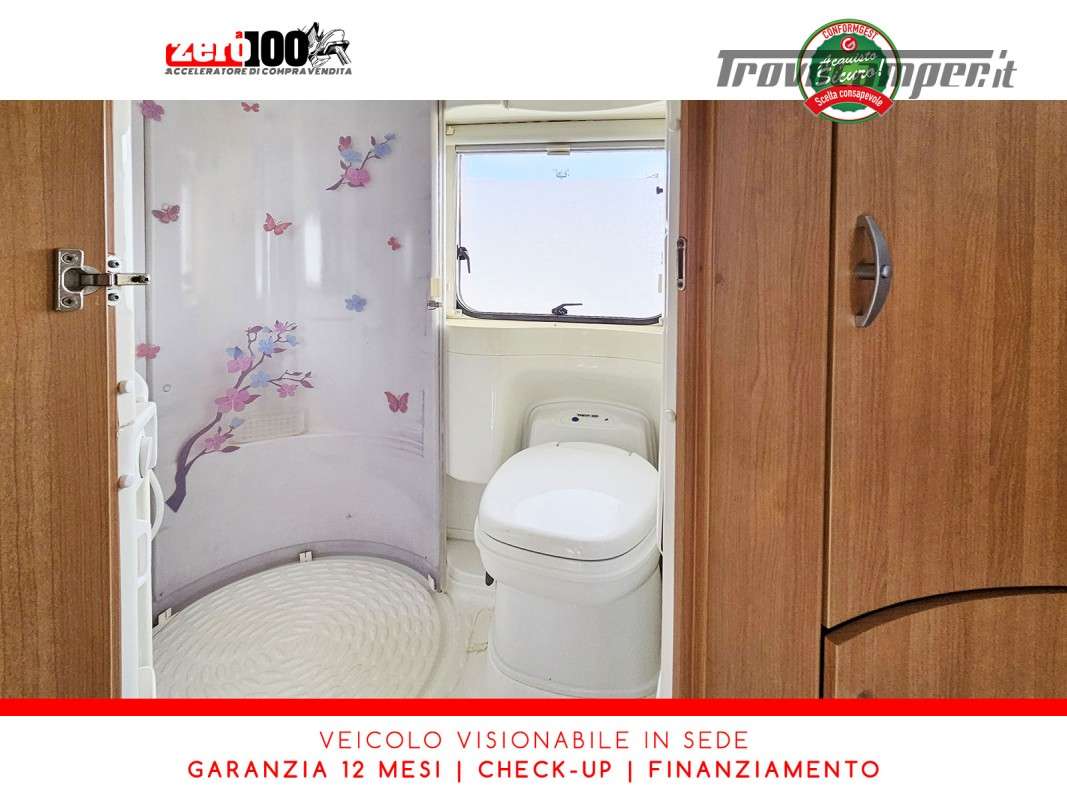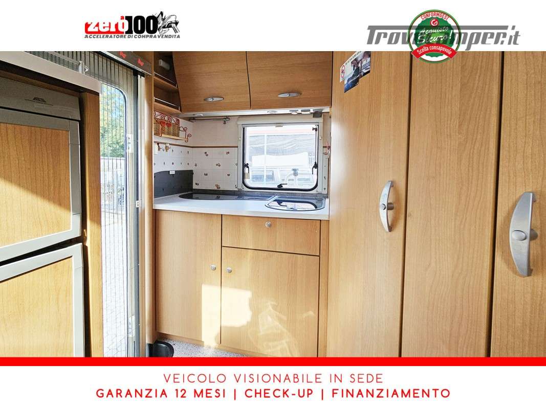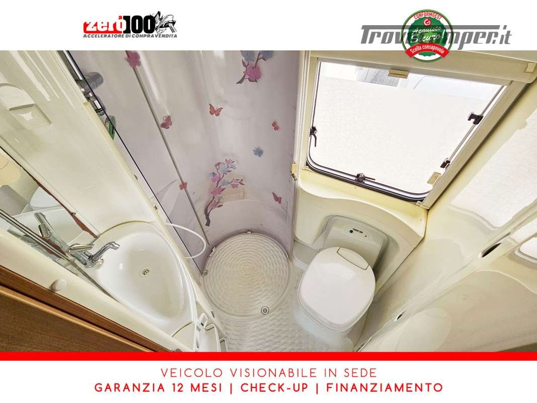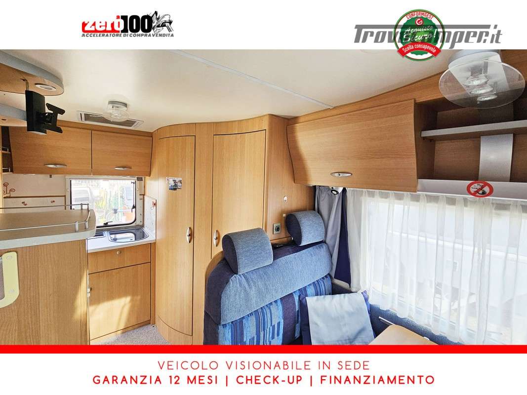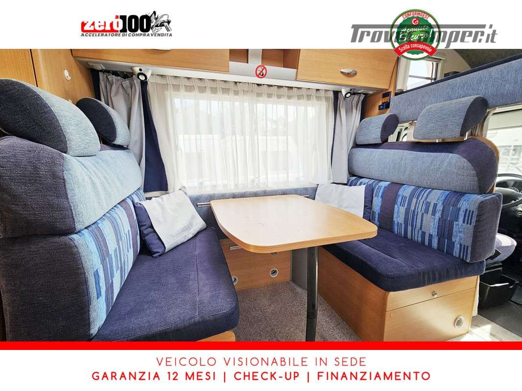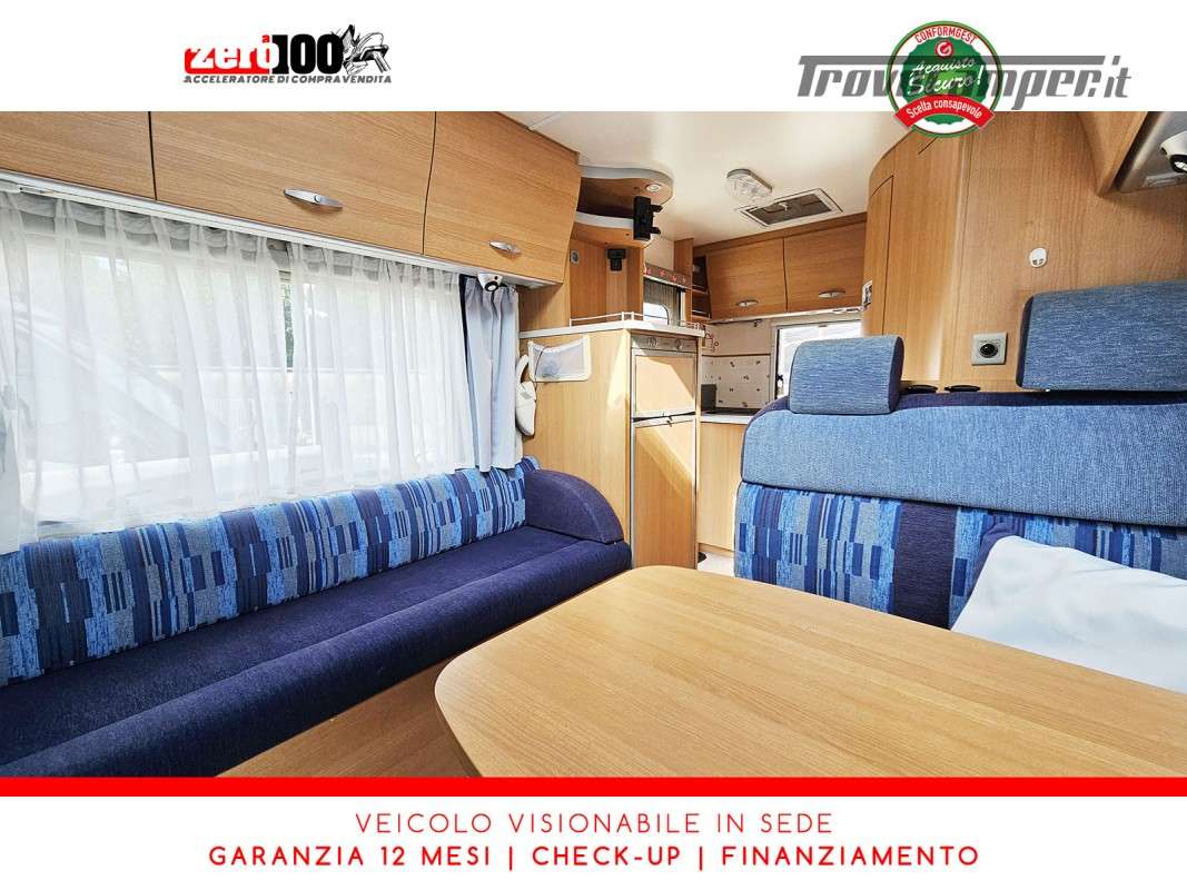 Letto matrimoniale trasversale in mansarda – Dinette contrapposta lato SX trasformabile in letto matrimoniale – Divanetto lato DX – Cucina lineare 3 fuochi con Frigorifero trivalente 150 lt alto con cella freezer separata – Bagno con box doccia girevole e finestra