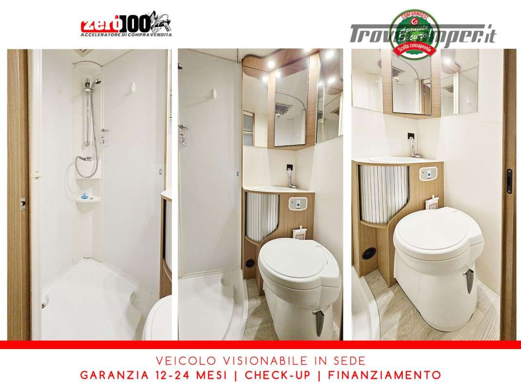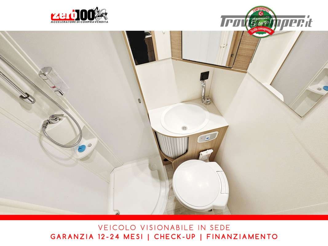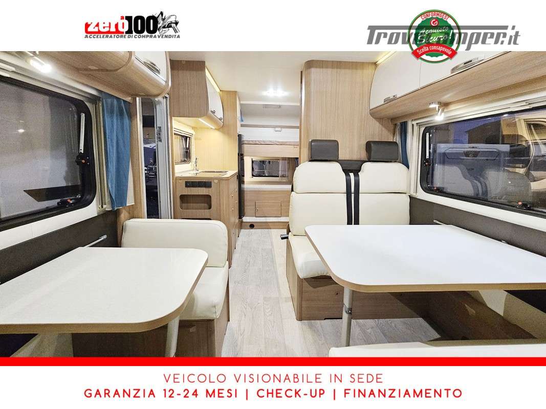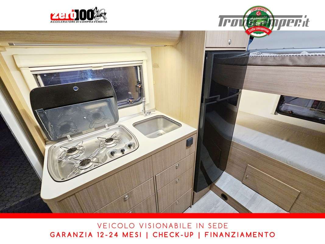 Letto matrimoniale anteriore in mansarda - Dinette classica contrapposta trasformabile in letto matrimoniale - Letti a castello trasversale - Cucina lineare 3 fuochi con frigorifero con cella frigorifera separata - Bagno con box doccia separata