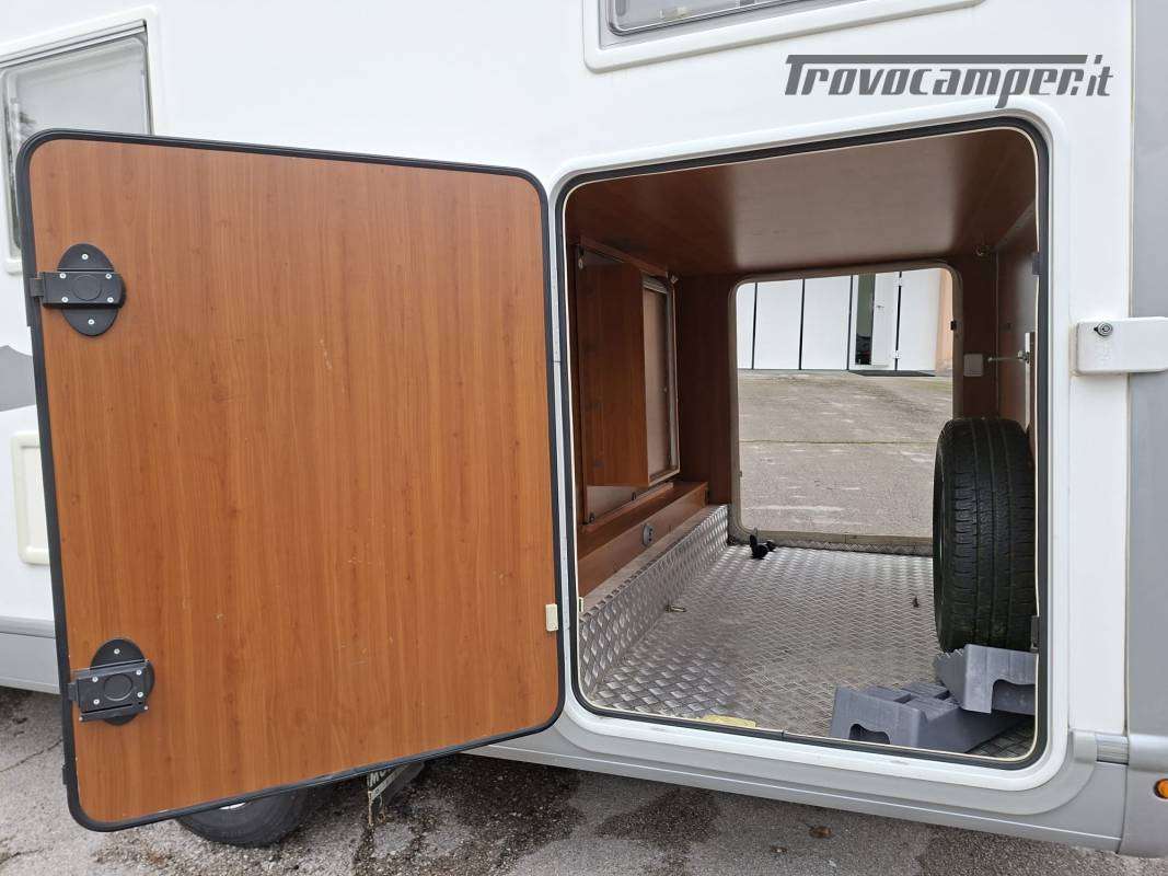 Posti Letto 4 e Omologati 4 | ABS | Air-Bag | ANTENNA TV | ASR-TCS | Attacco Acqua Esterno | Autoradio DoppioDIN | Bagno con Doccia Separata | Boiler Truma | Braccio TV | CAPPA ASPIRANTE | Cassetta WC Thetford Estraibile | CERCHI in LEGA | Chiusura Centralizzata | CLIMA CABINA | CLIMA CELLULA | DINETTE AD "L" CON DIVANETTO LATERALE | Doppio Vano Porta Bombole | FINESTRE SEITZ | FORNO GAS con GRILL | FRIGORIFERO TRIVALENTE AUTOMATICO 150L con Congelatore Separato | GARAGE POSTERIORE | Illuminazione Interna Luci LED | KIT MONITOR con RETROCAMERA | Letto Matrimoniale su Garage | Luce Esterna | Oblò PANORAMICO | PANNELLO FOTOVOLTAICO | Piano Cottura Cucina 2 Fuochi | PIASTRE GIREVOLI SEDILI ANTERIORI | Porta Cellula con Finestra Oscurante e Zanzariera | PORTABICI | Semi-Dinette | Servosterzo | STACCA-BATTERIA | TENDALINO ESTERNO | TURBOVENT | Vetri Elettrici | WEBASTO per RISCALDAMENTO