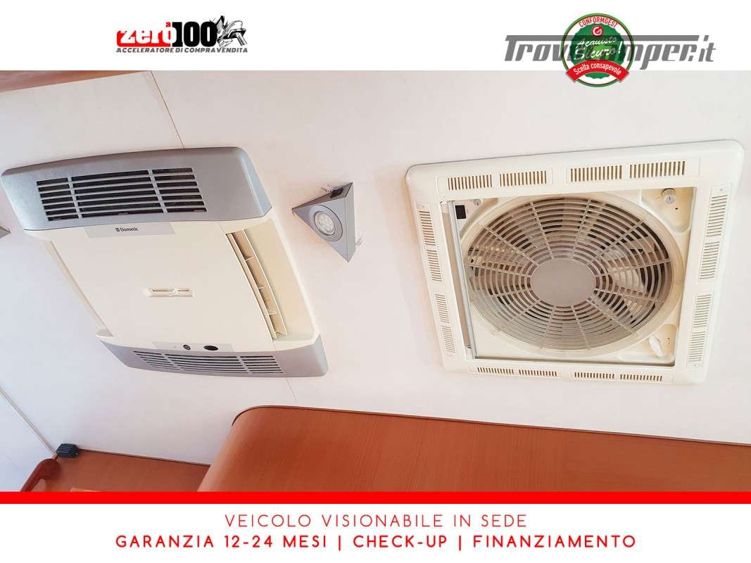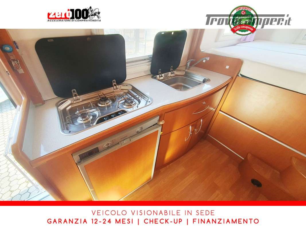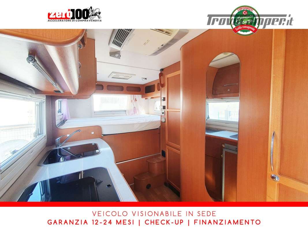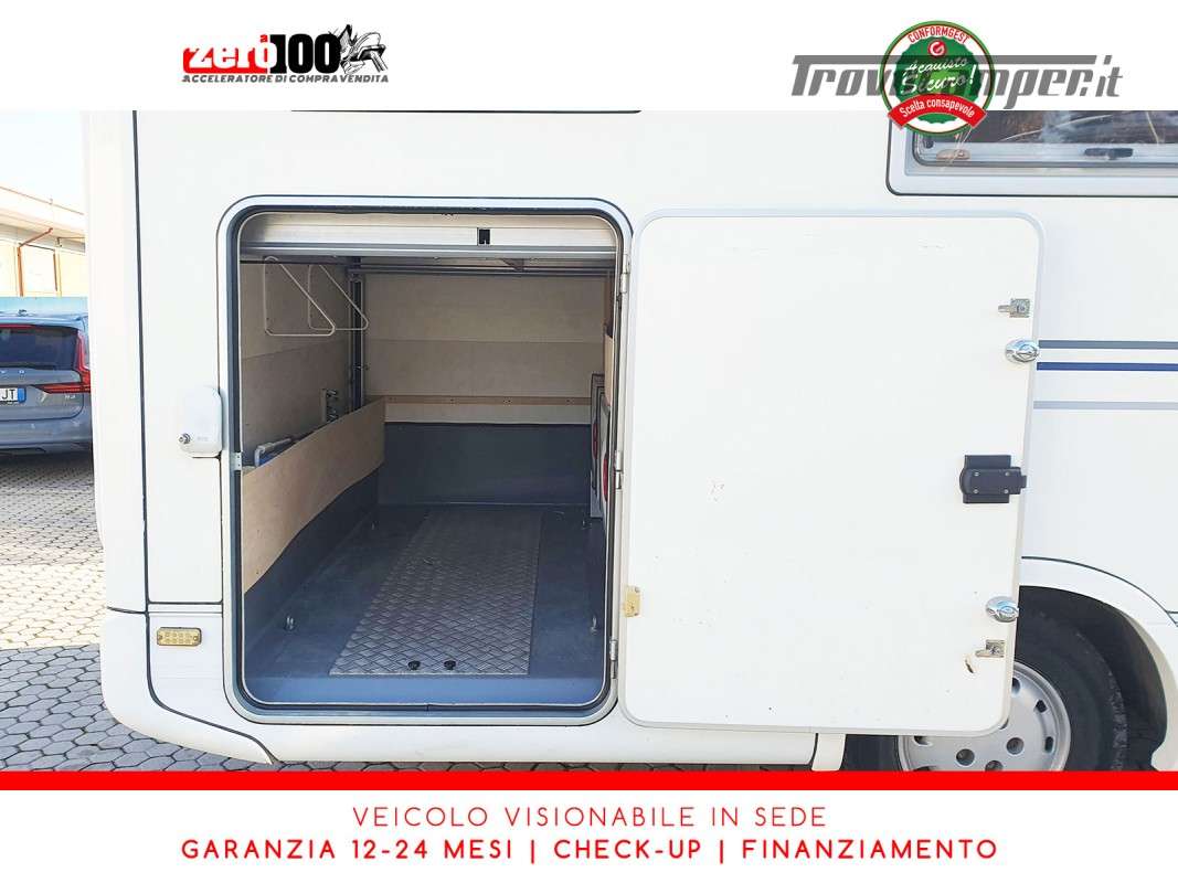 Letto matrimoniale trasversale in coda – Mezza dinette con sedili cabina girevoli – Cucina lineare 3 fuochi con frigorifero trivalente 110 lt – Bagno con doccia separata – Letto matrimoniale basculante – Garage