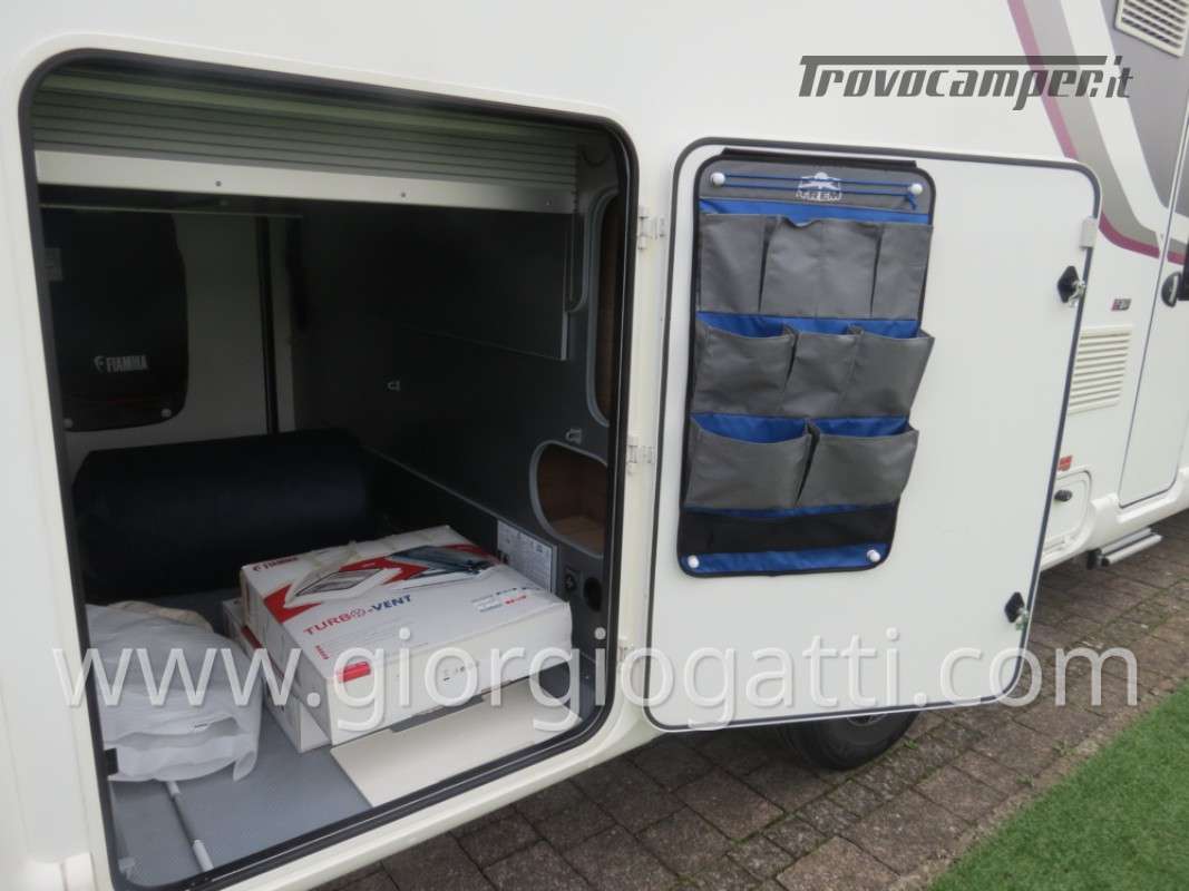 -Accessori: Veranda-Piedini stazionamento-Antifurto-Pannello solare-Radio monitor-Antenna sat.-Retrocamera-TV-Oblò ventilato-Ruota di scorta-Letto nautico reg. in altezza-Oblò panoramico-Oscuranti cabina-Cerchi in lega-Navigatore Garmin-retrocamera-Cambio automatico-Oscuranti esterni-Interni ecopelle-Trio gas