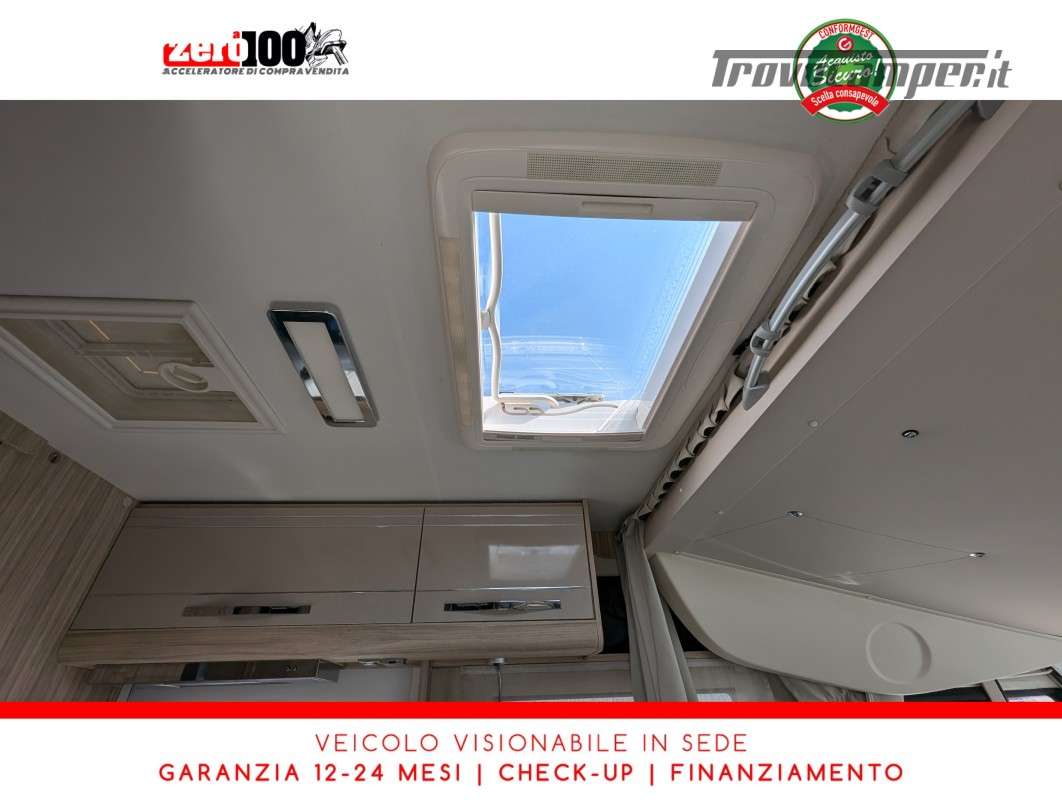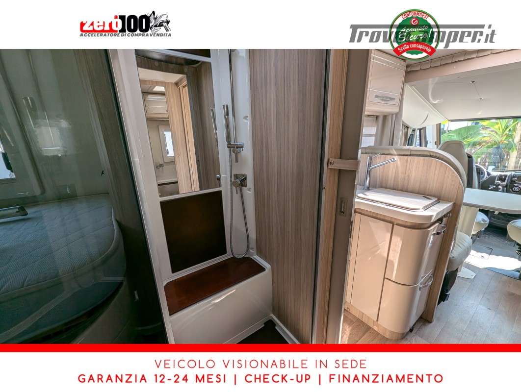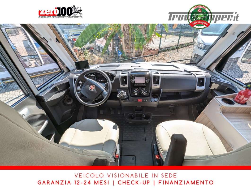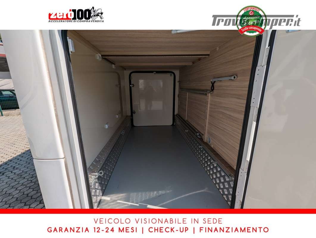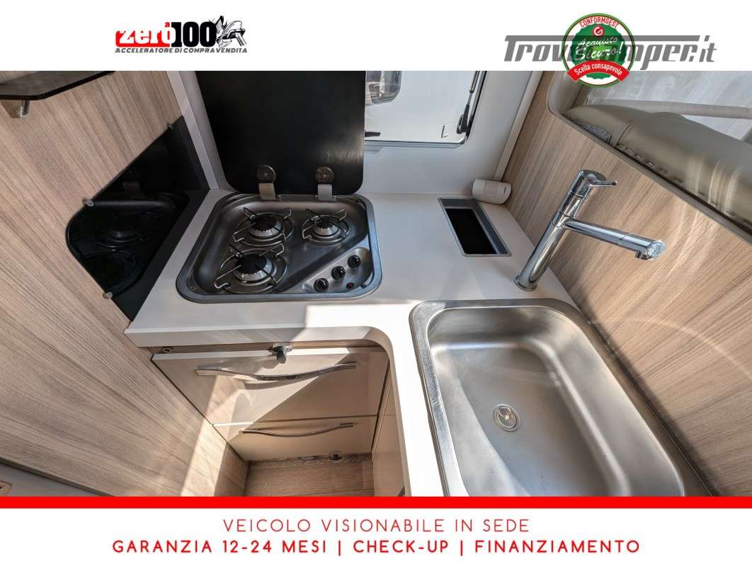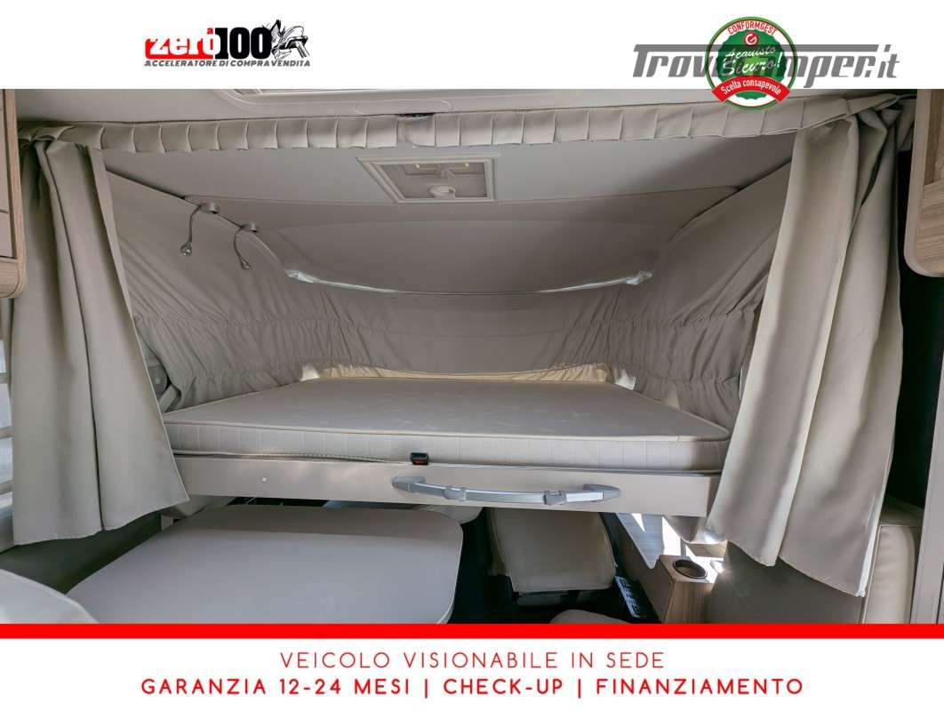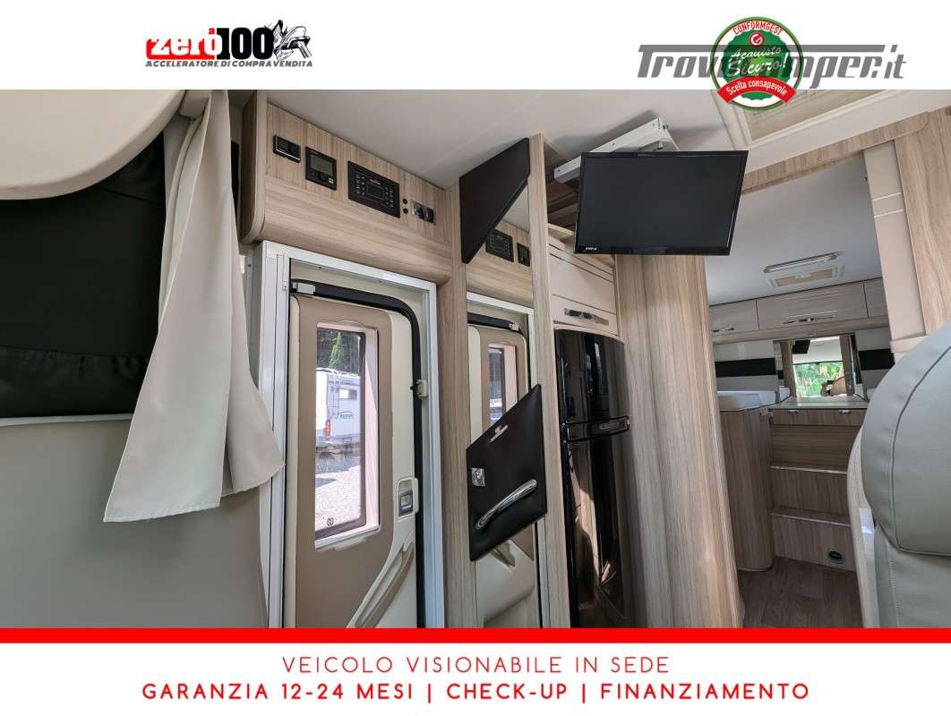 Dinette a L con panca laterale e sedili cabina girevoli - Cucina a L 3 fuochi con piezo, cappa aspirante e Frigorifero trivalente 150 lt automatico - Letti gemelli in coda - Letto matrimoniale basculante anteriore - Bagno composto da 2 vani separati e Doccia indipendente - Garage