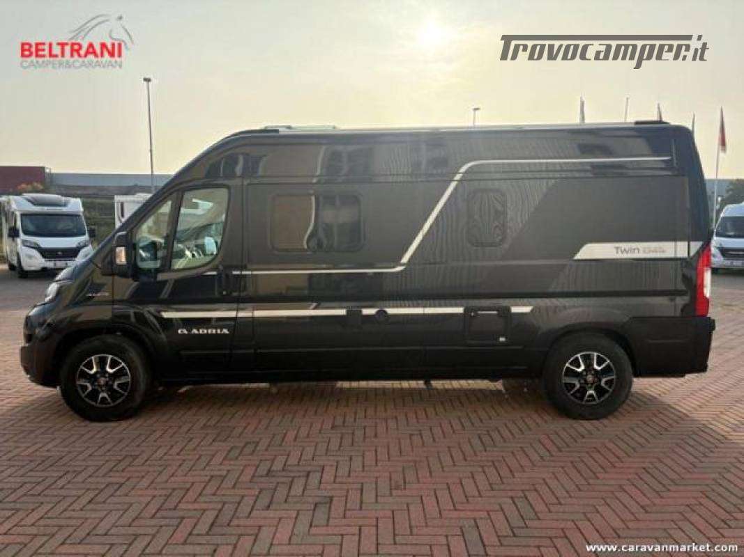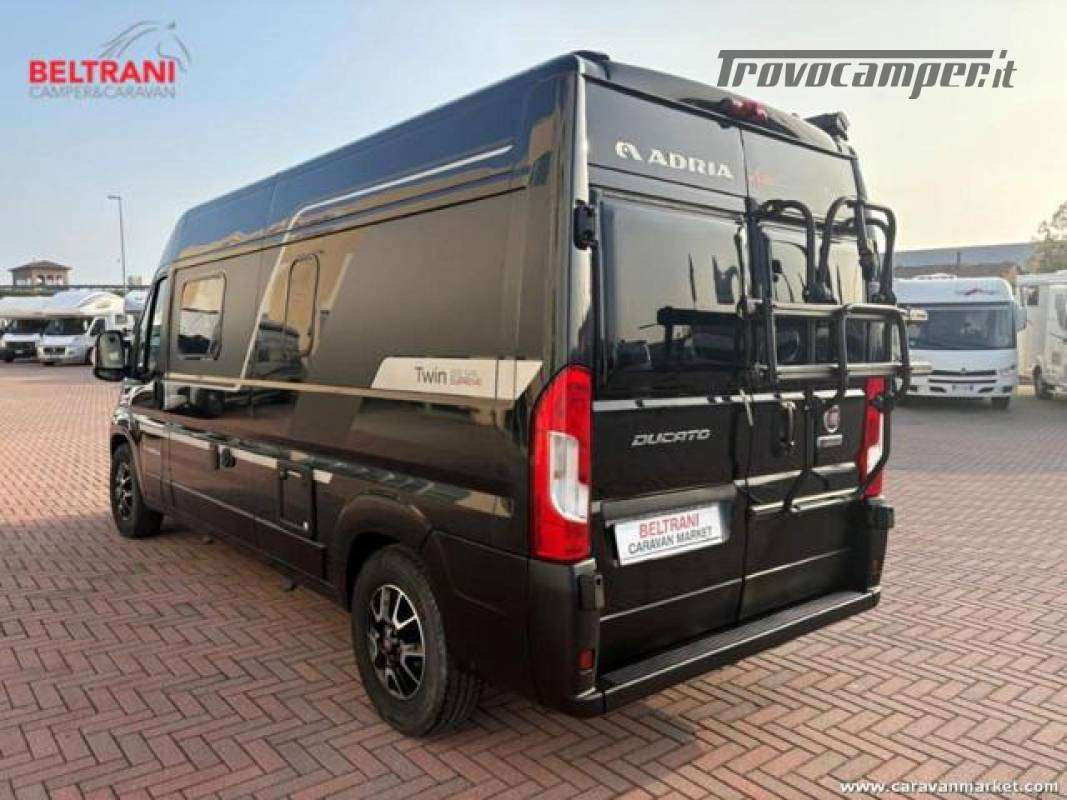 maneggevole e rifinito, Adria Twin Supreme 600 SPB 2021 su Fiat Ducato 2.3 offre letto matrimoniale trasversale in coda, cucina completa, bagno con doccia e riscaldamento Truma, in soli 5,99 m. Ideale per week-end e viaggi smart, con oscuranti e zanzariere, tendalino e portabici, condizioni ottime e pronto a partire.