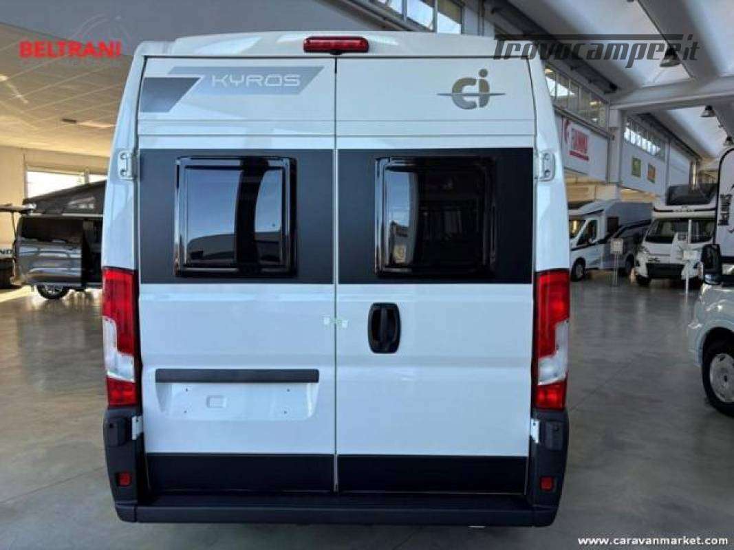 Il CI Kyros Go 5 2026 è un van facile da guidare e versatile con 4 posti letto, costruito su meccanica Citroën Jumper 140 CV. Con le sue dimensioni di 5,99 m di misura in metri e 2,05 m di larghezza, unisce agilità su strada e comfort abitativo, ideale per chi cerca praticità senza rinunciare allo spazio.