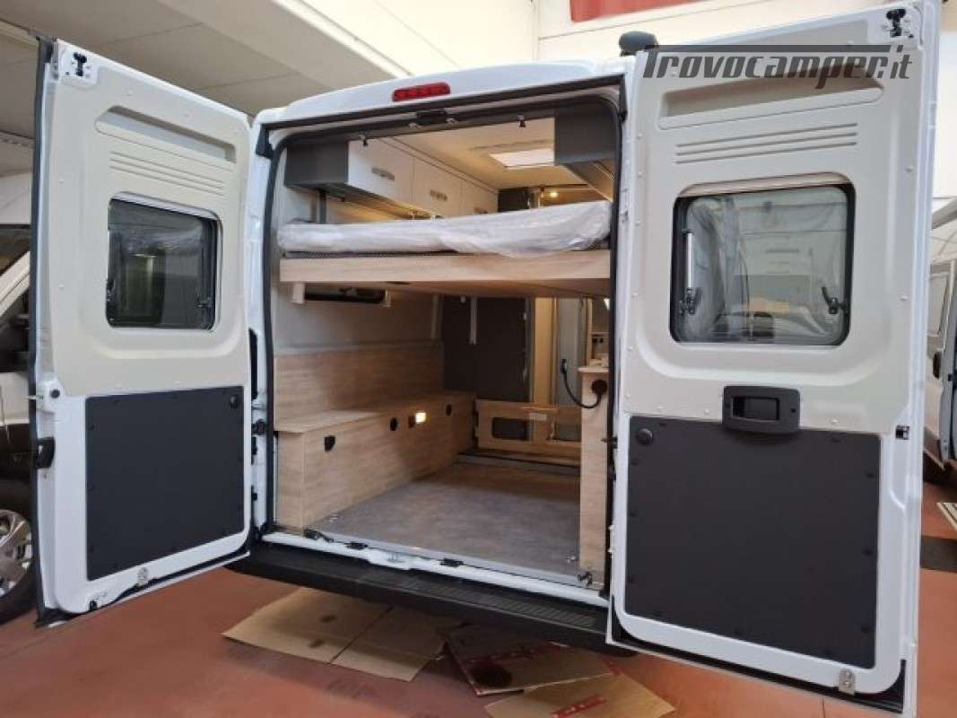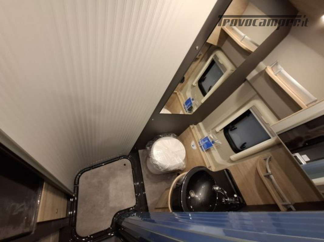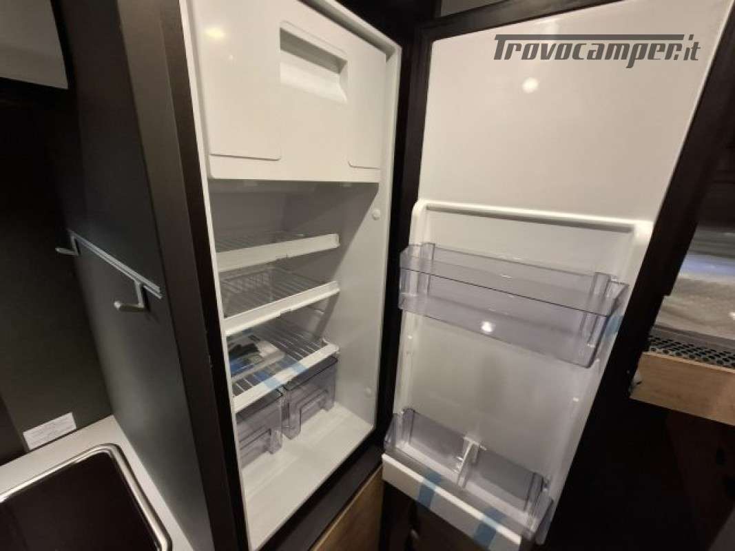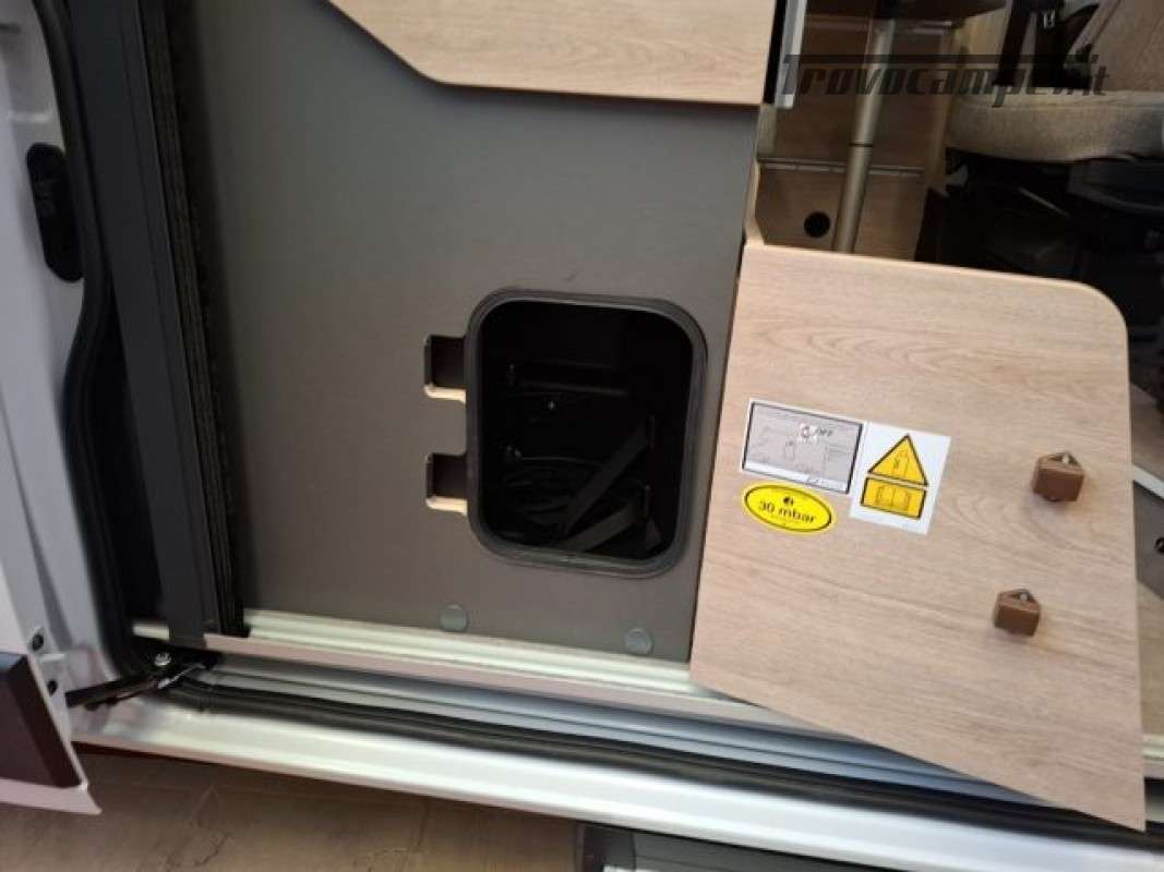 PACK ELEKTRO (Presa doppia USB aggiuntiva nella parte anteriore a sinistra, Presa 12V nella zona posteriore, in basso a sinistra, Presa 230 V nel pensile della parte anteriore a sinistra (zona dinette), Illuminazione indiretta, Tubo luminoso a LED in cucina, Predisposizione impianto solare),