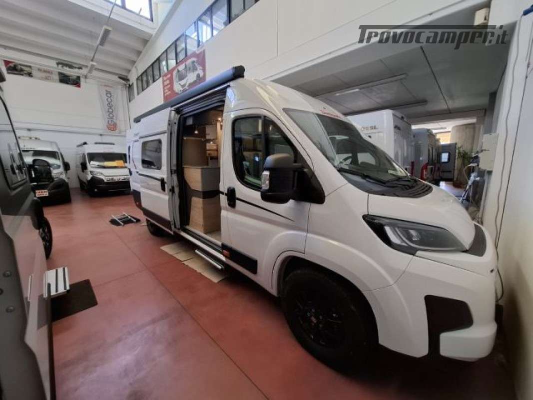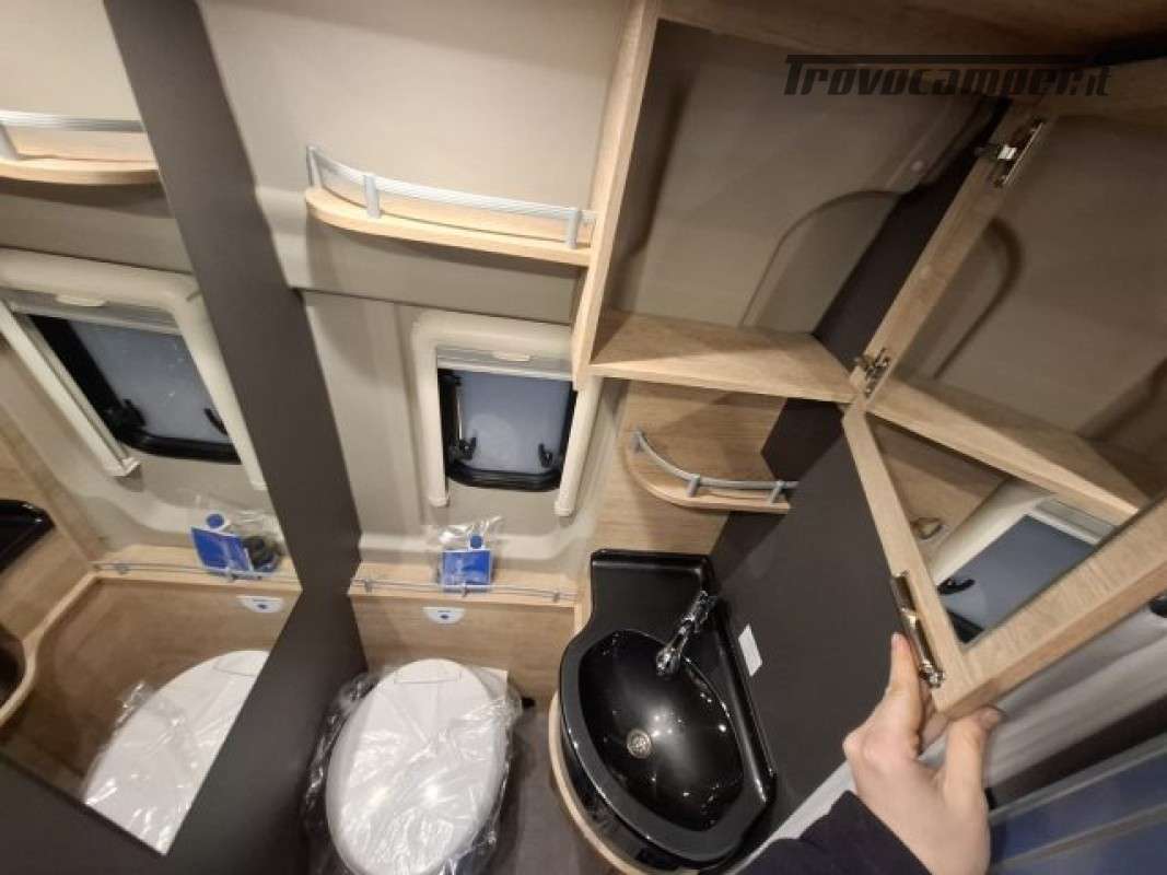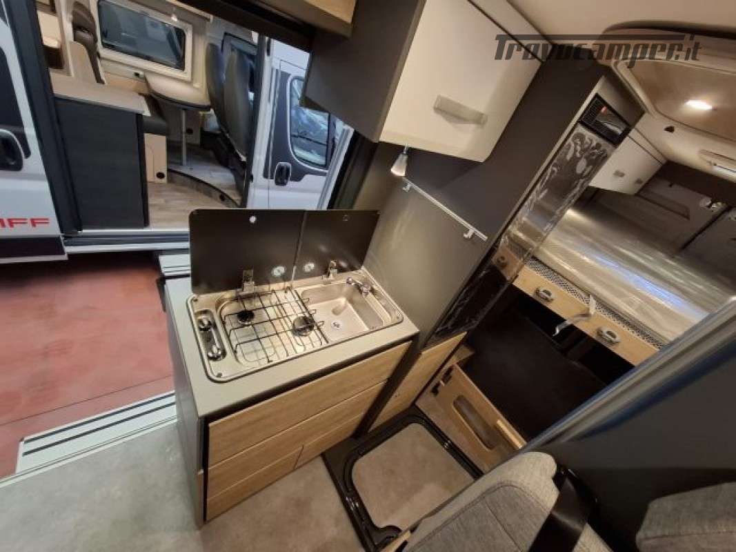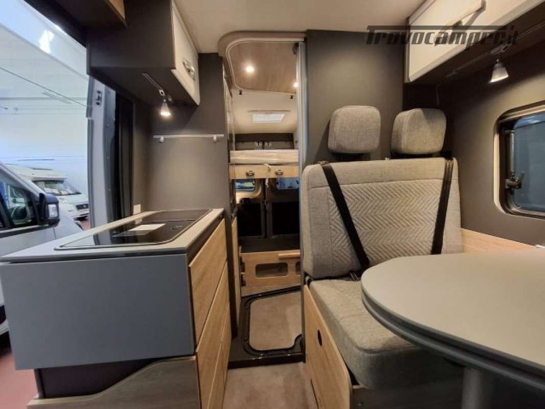 PACK ELEKTRO (Presa doppia USB aggiuntiva nella parte anteriore a sinistra, Presa 12V nella zona posteriore, in basso a sinistra, Presa 230 V nel pensile della parte anteriore a sinistra (zona dinette), Illuminazione indiretta, Tubo luminoso a LED in cucina, Predisposizione impianto solare),