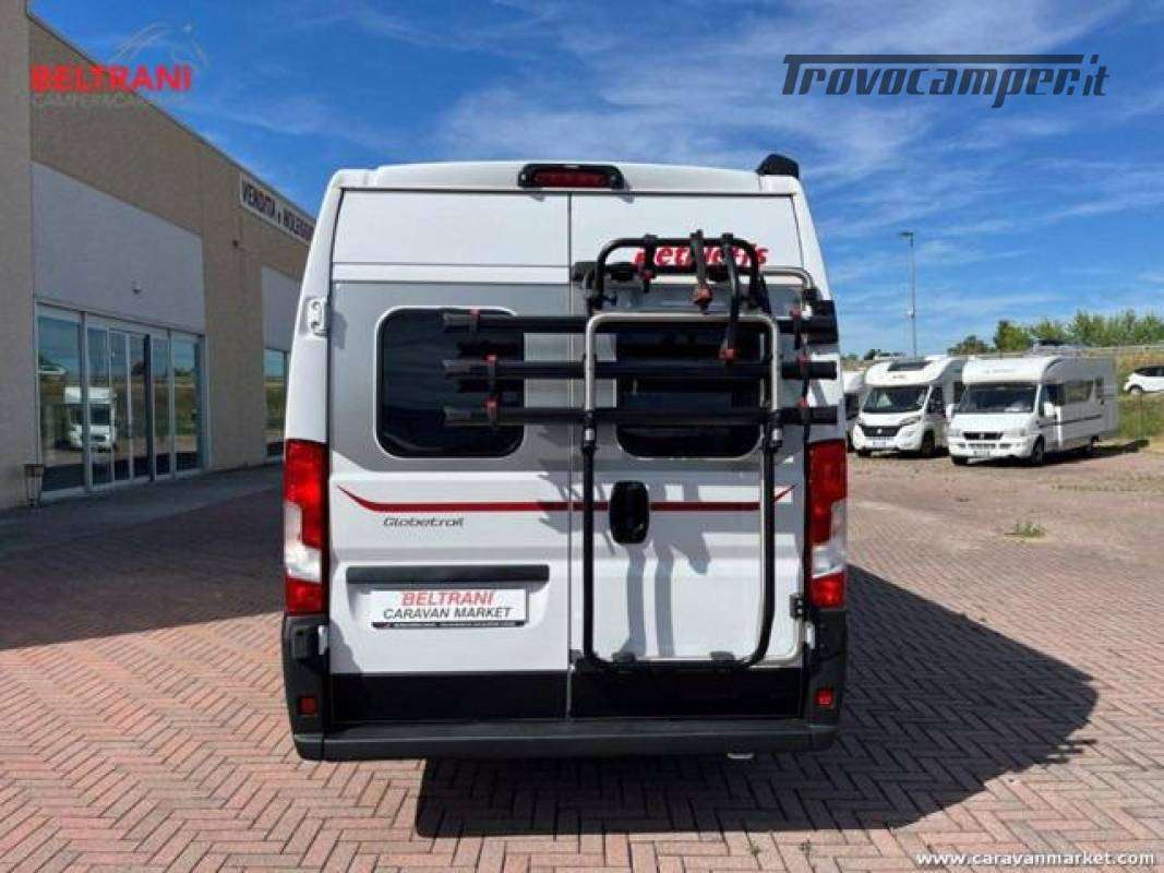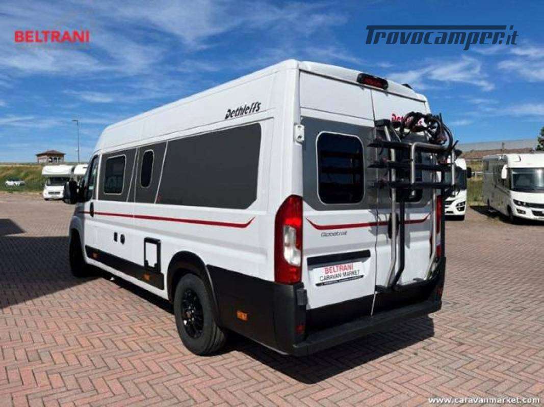 Dethleffs Globetrail 640, van di alta gamma lungo 6,36 metri, perfetto per chi cerca spazio, affidabilità e uno stile di vita on the road senza rinunce. L'interno è configurato con letti gemelli posteriori, ideali per garantire massimo comfort sia in coppia che in viaggio con un amico o familiare.Questo van è dotato di una ricchissima lista di optional, pensati per garantire autonomia, sicurezza e comodità in ogni situazione: pannello solare per viaggiare anche in libera, portabici, tendalino esterno, luce esterna a LED e Truma Combi a gas per il riscaldamento e l'acqua calda.Alla guida, il comfort è garantito da una cabina con climatizzatore, volante multifunzione, autoradio doppio DIN, cruise control, prese USB, cerchi in lega e gradino elettrico. La presenza di retrocamera con indicatore di direzione rende le manovre semplici e sicure.Inoltre, troviamo predisposizione per antenna TV, staffa supporto TV e oscuranti plissettati su tutte le finestre per una privacy totale e un perfetto isolamento.