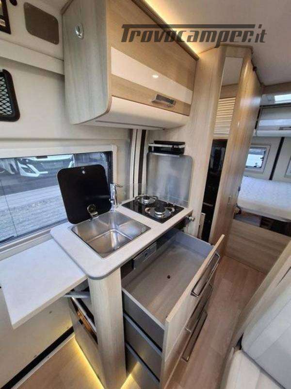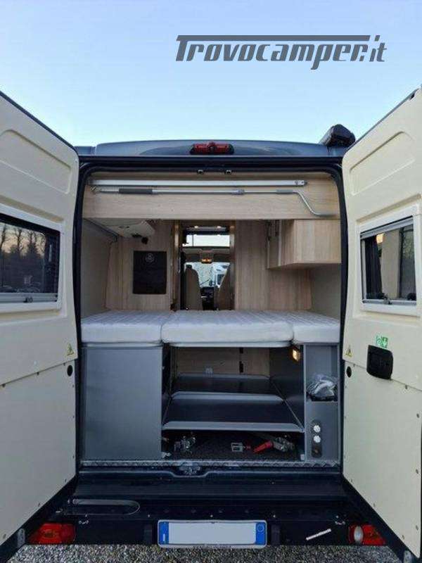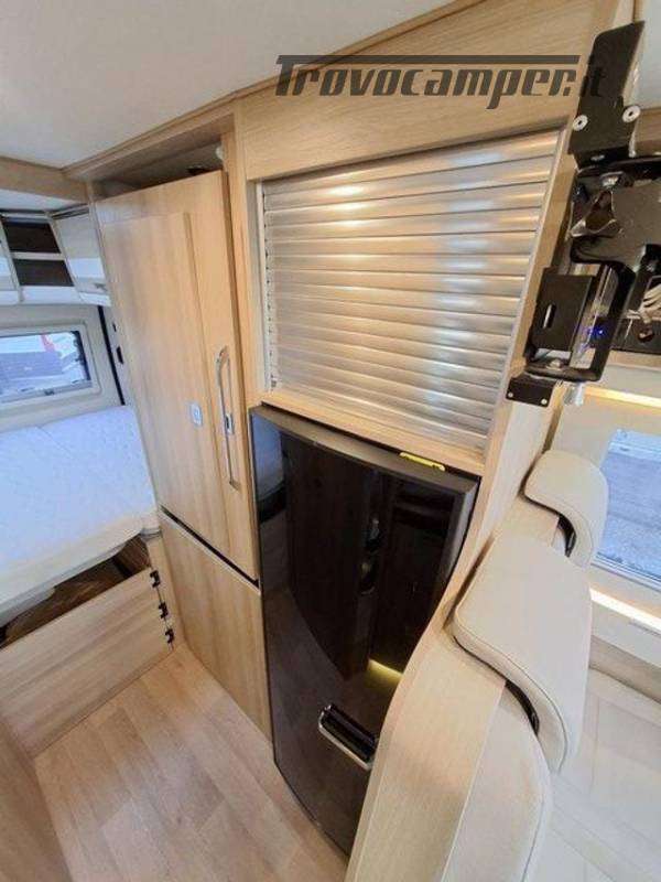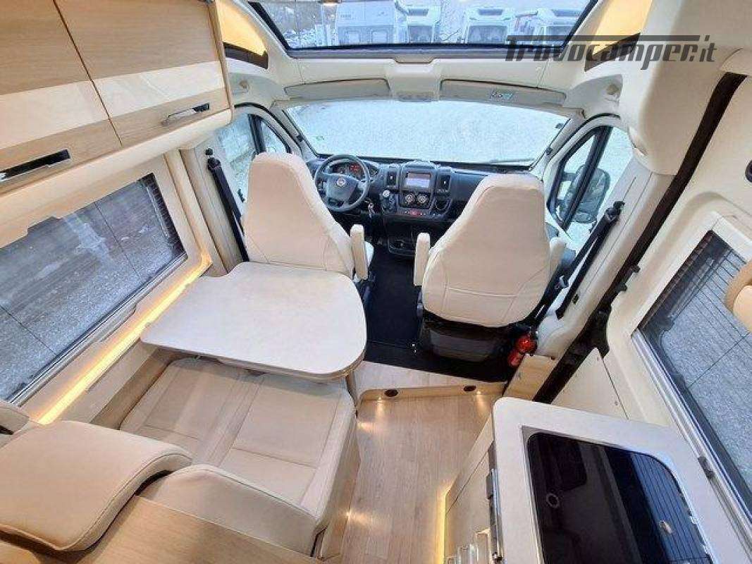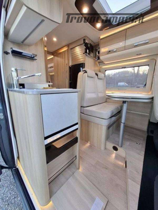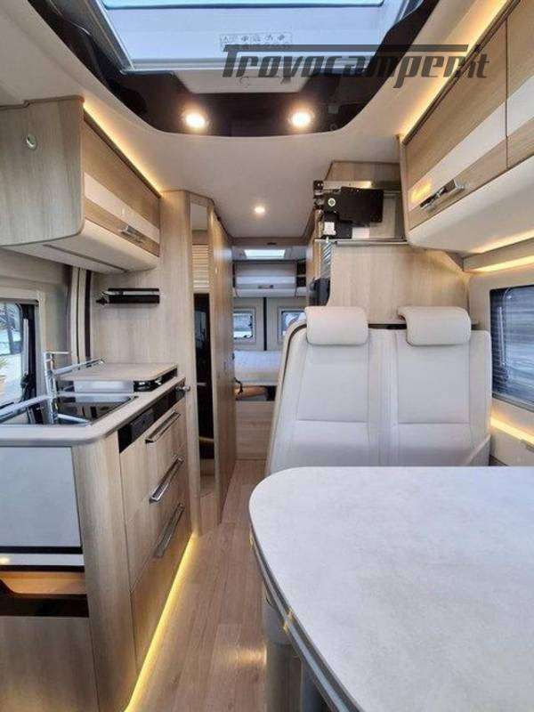 Clima in cabina, Tendalino FIAMMA, Sospensioni pneumatiche posteriori di rinforzo, Radio 2Din con Bluetooth e retrocamera integrata con Apple Car Play e Android Auto, Cerchi in Lega 16", Carrozzeria in colore metallizzato IRON GREY con paraurti in tinta, Finestre a filo carrozzeria con telaio in alluminio, Oblò Panoramico SKYVIEW, Pannello fotovoltaico NDS, Porta moto Edicar, Antifurto perimetrale e volumetrico, Traction Plus con Hill Descent Control (assistenza al mantenimento della velocità costante in discesa), ESC, ASR, ROM e Hill Holder, Cruise control con limitatore di velocità, Gradino d'ingresso elettrico, Grondaia di protezione della porta laterale con luce esterna a LED, Centralina di controllo touch, Zanzariera scorrevole all'ingresso, Oscuranti REMIS plissettati in cabina guida, Sedili in cabina guida girevoli, Maxi oblò HEKI centrale, Tavolo dinette con prolunga girevole, Cucina con 2 fuochi, Estensione superficie piano di appoggio, Frigo AES da 135lt., Supporto TV estraibile, toilette a cassetta estraibile, Riscaldamento TRUMA Combi 4KW gas, KIT per trasformazione dinette a letto supplementare, Doccetta esterna con miscelatore acqua calda e fredda, Duo Control (vano bombole 2x13kg) automatismo bombole gas e possibilità di utilizzo in marcia, Serbatoio Acqua da 100lt., serbatoio acque di recupero 90lt..;