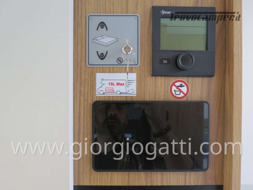 -Dotazioni di serie: specchietti regolabili elettricamente-ABS/ESP/ASR,Hill Holder, start&stop, Fix&go-Traction +/Hill descent control – -paraurti verniciato in tinta carrozzeria – Skid plate nero – fari fendinebbia adattivi – cruise control/limitatore di velocità-comandi radio al volante-clima manuale in cabina-airbag guidatore e passeggero- Serbatoio gasolio 90 lt – Predisposizione radio con antenna DAB – Finestre S7 con doppio vetro – Truma Combi Diesel 4000w con kit altitudine- pannello comandi CP Plus – Isofix – finestra bagno – zanzariera scorrevole portellone laterale -oscurante plissettato cabina – luce esterna con funzione di grondaia – serbatoio acque grigie riscaldato – fodere sedili anteriori – frigo compressore – batteria litio – pedana doccia – tavolo con prolunga-gradino elettrico-videocamera posteriore-dinette trasformabile in letto – tappezzeria chile