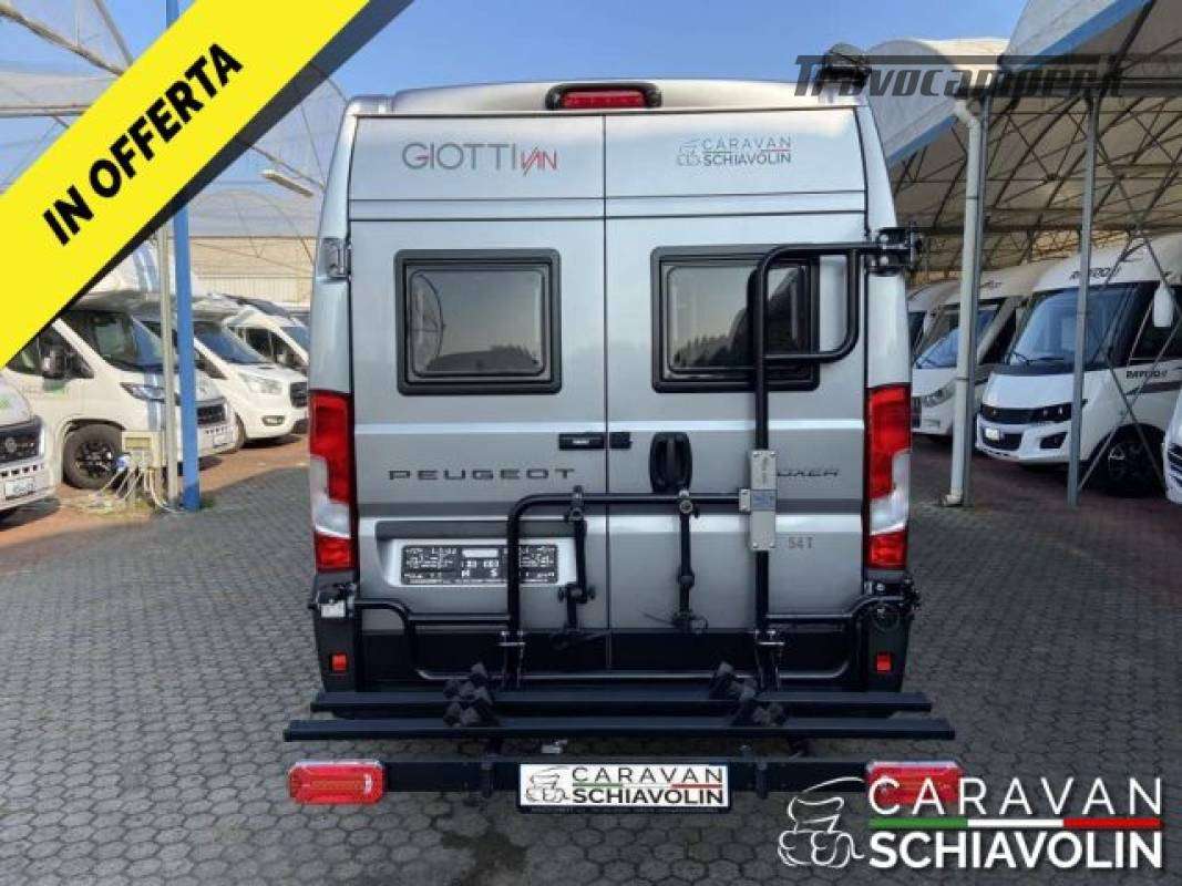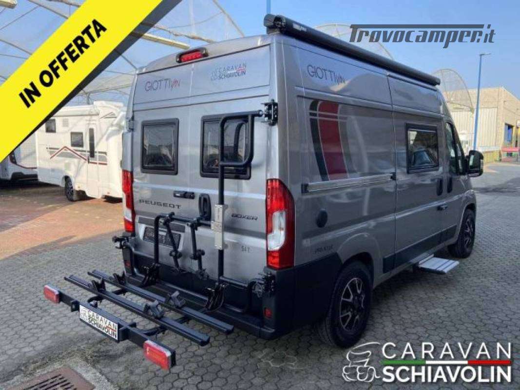 Veranda, Portabici Vanbike per due e bike, Pannello solare da 140W, Doppia batteria servizi, Turbovent sopra il letto, Chiusure di sicurezza esterne Thule Van Lock, Antenna tv, Tv con staffa orientabile in zona dinette, Presa 220V vicino a cappelliera, Prese usb in cucina aggiuntive, Antifurto volumetrico e perimetrale, Predisposizione per Inverter. Vernice metallizzata GRIGIO ARTENSE Cerchi in lega da 16" con volante in pelle Paraurti verniciato e fendinebbia PACK VAN PRIVILEGE STELLANTIS (Radio 6.8 con Apple Car Play e Android Auto (solo su Stellantis), Foderine cabina coordinate, Zanzariera porta ingresso, Gradino esterno elettrico, Oscuranti plissettati cabina, Retrocamera)DI SERIE = Airbag passeggero, Comando truma CP plus, Esp, Traction+, Hill Holder e Hill Descent, Start & Stop, Cruise control, Pneumatici M+S, Retrovisori esterni elettrici e riscaldabili, Predisposizione radio con antenna Dab, Comandi radio al volante, Cerchi di 15 in acciaio con copricerchi, Agganci Isofix, Luce esterna a LED, Letto singolo supplementare in dinette, Doghe sul letto posteriore, Stufa 4000 diesel) Prezzo con permuta ? 57.900,00 Camper van Giottiline lungo solo 5.40 mt, con 3 posti letto, stufa diesel e numerosi optional inclusi. Veicolo eccezionale per qualità, compattezza e funzionalità, Veicolo full optional pochi mesi di vita e pochi km quindi pari al nuovo..;