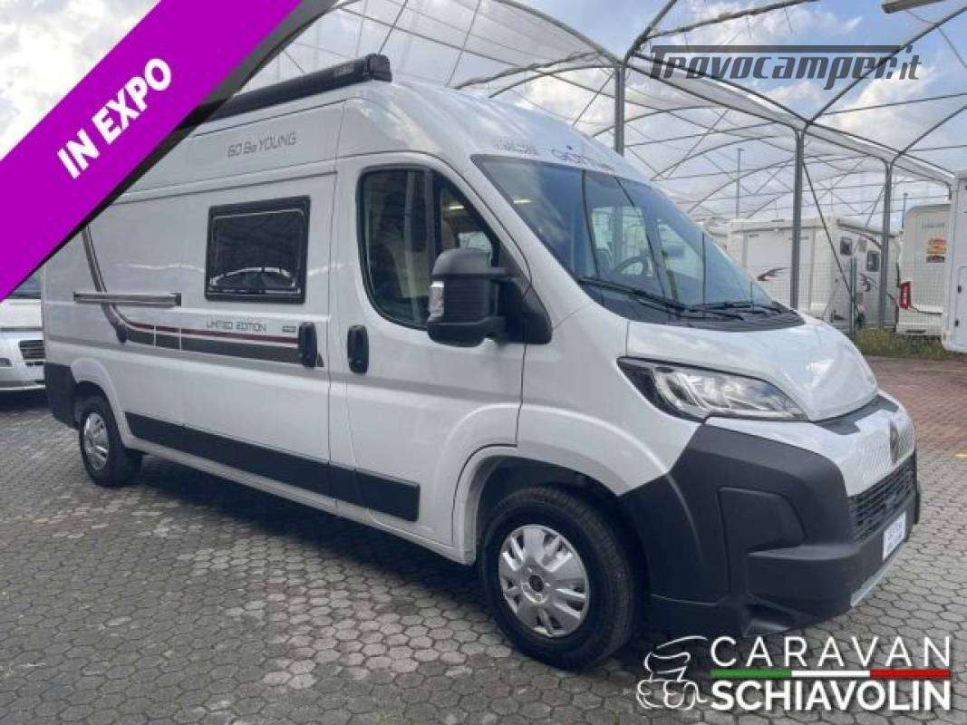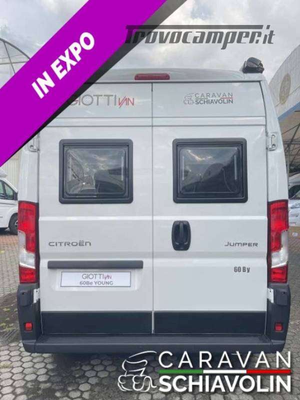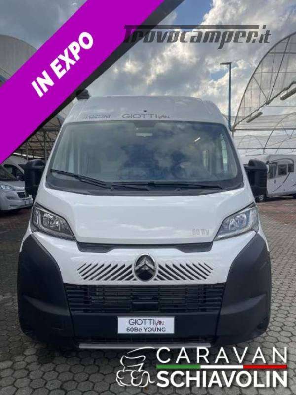 Differenza per motore da 140cv ? 2.000,00Truma Combi 4000 Diesel ? 610,00PACK YOUNG ? 500,00 (Gradino esterno elettrico, luce esterna LED)DOTAZIONI DI SERIE DI NELLA VERSIONE 60Be YOUNG : Veranda, CITROEN o PEUGEOT da 2.000 cc con 120cv, Portata 35Qli., Climatizzatore cabina manuale, Pneumatici M+S, 4 stagioni, Airbag guidatore e passeggero, ESP, traction Plus, Hill holder, Hill descent, Start & Stop, ABS, Cruise control, Predisposizione radio DAB, Cambio manuale 6 marce, Sedili cabina girevoli, Volante regolabile, Specchietti retrovisori elettrici e riscaldati, Comandi radio al volante, Stufa Combi Gas 4000, Comando Truma CP Plus, Attacchi ISOFIX, Cerchi 15'' in acciaio, Kit Oscurante isolante interno cabina, Predisposizione retrocamera, Chiusura centralizzata, Finestra Seitz, Predisposizione pannello solare, Predisposizione tv digitale/sat, Doghe sul letto posteriore.PUNTI DI FORZA= Letti posteriori sovrapposti (133×186 cm ? / 124×186 cm ?), Ampio piano cucina e frigorifero a compressore da 90L, Bagno con doccia separata "VARIO" e sistema Truma Combi 4000. GIOTTIVAN 60 BE YOUNG è il van perfetto per chi cerca uno stile di viaggio giovane, dinamico e senza rinunce. Con una lunghezza di 5,99 metri, offre una disposizione interna ottimizzata con letti matrimoniali a castello posteriori, cucina compatta e funzionale, e bagno con doccia integrata. La zona giorno è luminosa e accogliente, pensata per condividere momenti di relax o pasti in compagnia. Gli spazi contenitivi sono ben distribuiti, ideali per chi viaggia con attrezzature sportive o bagagli al seguito.NOVITA' 2026FOTO DI REPERTORIO .;