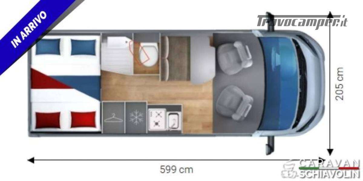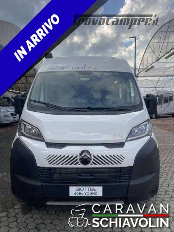 Truma Combi 4000 Diesel ? 610,00DOTAZIONI DI SERIE DI NELLA VERSIONE 60Be YOUNG : Veranda, CITROEN o PEUGEOT da 2.000 cc con 120cv, Portata 35Qli., Climatizzatore cabina manuale, Pneumatici M+S, 4 stagioni, Airbag guidatore e passeggero, ESP, traction Plus, Hill holder, Hill descent, Start & Stop, ABS, Cruise control, Predisposizione radio DAB, Cambio manuale 6 marce, Sedili cabina girevoli, Volante regolabile, Specchietti retrovisori elettrici e riscaldati, Comandi radio al volante, Stufa Combi Gas 4000, Comando Truma CP Plus, Attacchi ISOFIX, Cerchi 15'' in acciaio, Kit Oscurante isolante interno cabina, Predisposizione retrocamera, Chiusura centralizzata, Finestra Seitz, Predisposizione pannello solare, Predisposizione tv digitale/sat, Doghe sul letto posteriore.PUNTI DI FORZA= Letti posteriori sovrapposti (133×186 cm ? / 124×186 cm ?), Ampio piano cucina e frigorifero a compressore da 90L, Bagno con doccia separata "VARIO" e sistema Truma Combi 4000. GIOTTIVAN 60 BE YOUNG è il van perfetto per chi cerca uno stile di viaggio giovane, dinamico e senza rinunce. Con una lunghezza di 5,99 metri, offre una disposizione interna ottimizzata con letti matrimoniali a castello posteriori, cucina compatta e funzionale, e bagno con doccia integrata. La zona giorno è luminosa e accogliente, pensata per condividere momenti di relax o pasti in compagnia. Gli spazi contenitivi sono ben distribuiti, ideali per chi viaggia con attrezzature sportive o bagagli al seguito.NOVITA' 2026IN ARRIVO foto di repertorio .;