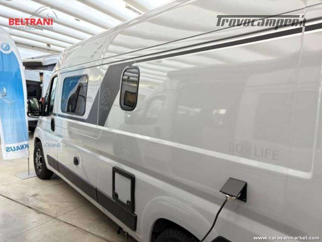 Knaus BoxLife 600 MQ Platinum Selection 2026 Automatico: van 5,99 m su Fiat Ducato con cambio automatico, letto matrimoniale trasversale regolabile in altezza, semidinette, cucina maggiorata con frigo a compressore, bagno a parete girevole per vera doccia, riscaldamento diesel Truma Combi per uso 4 stagioni, oscuranti plissettati, zanzariera porta e tendalino di serie. Ideale per coppie o famiglie che cercano un 6 metri versatile, accessoriato e pronto alla sosta libera.