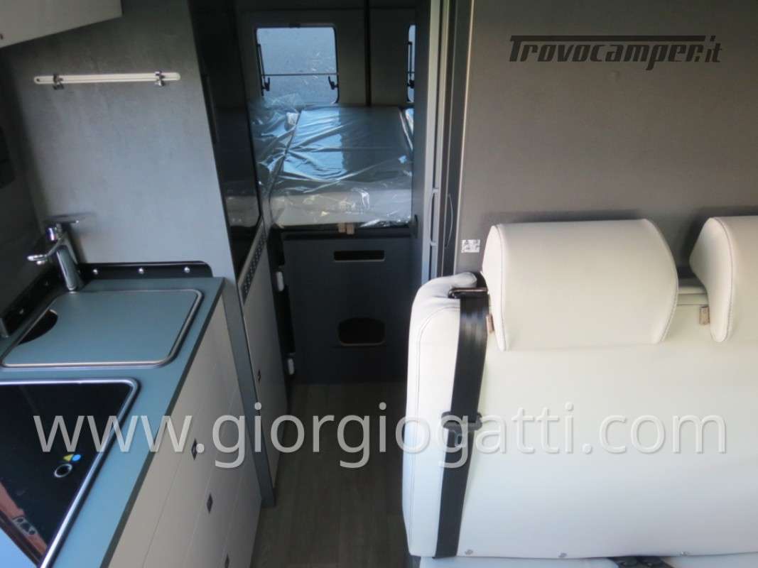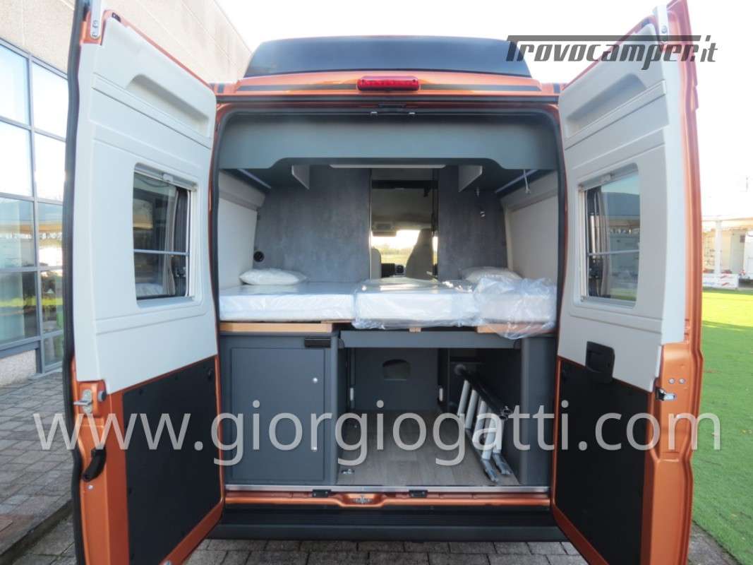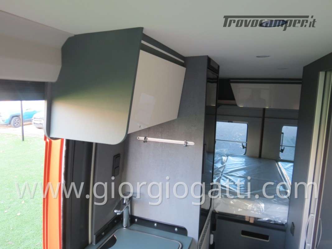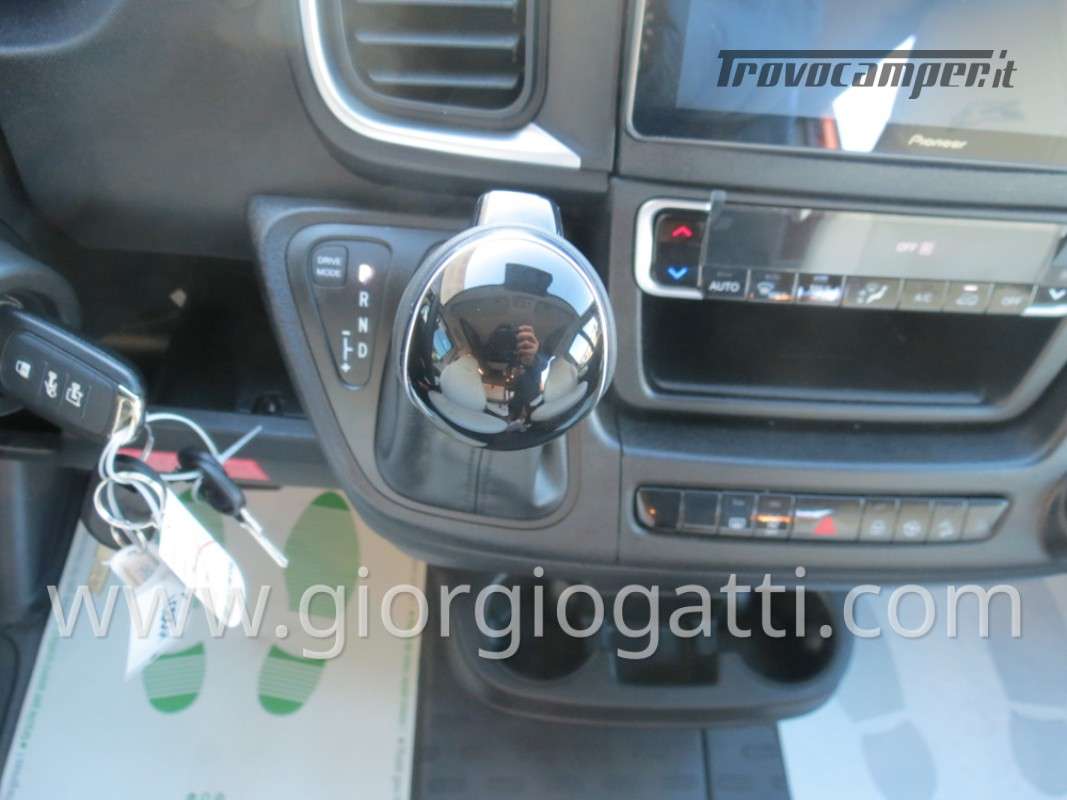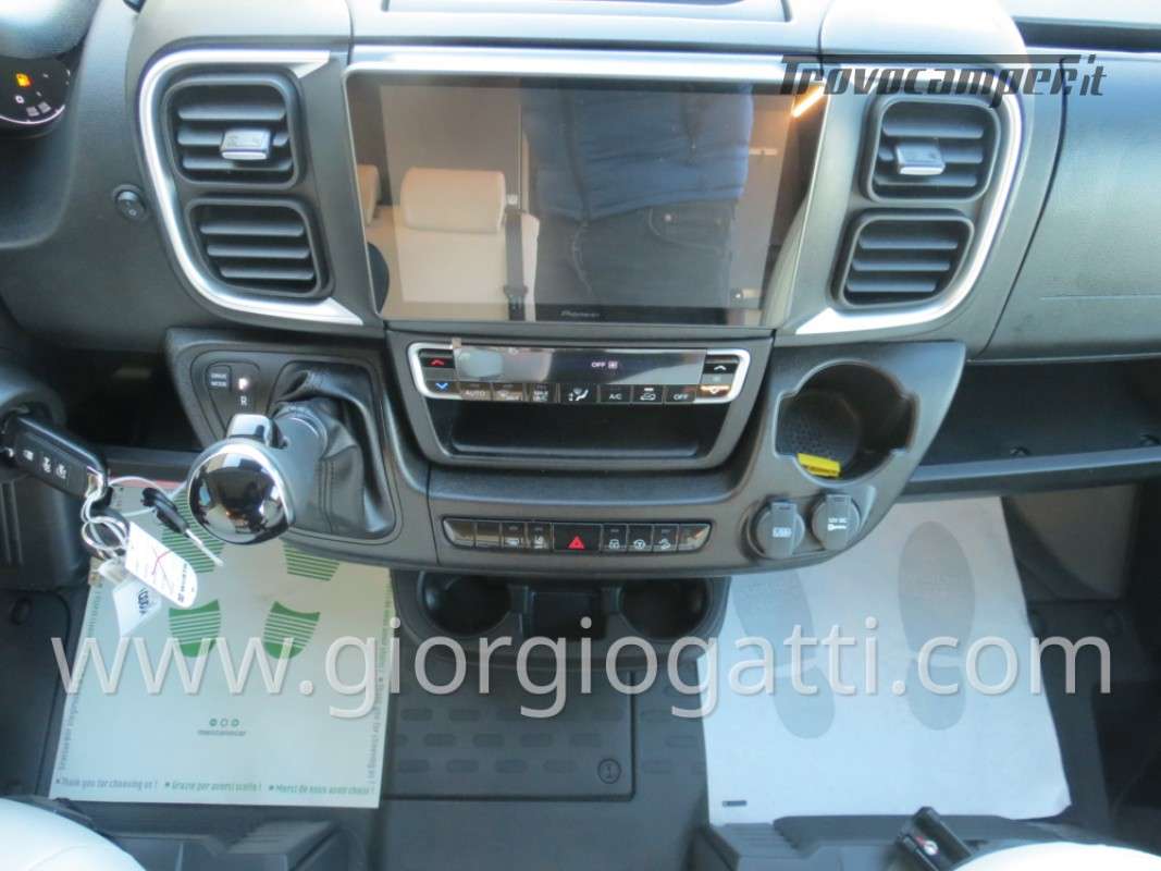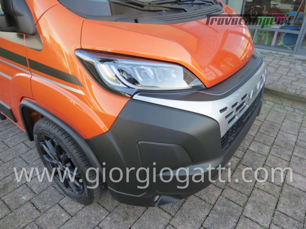 -Dotazioni opzionali presenti sul veicolo : meccanica 180 cv (light duty) + cambio automatico - cerchi in lega 18" nero matter - Pack chassis Max (freno a mano elettrico- TPMS -climatizzatore cabina automatico con filtro antipolline – sistema di ricarica induttiva per smartphone – strumentazione digitale con display a colori TFT da 7” – Fari full led)-Pack Safety (controllo autonomo della frenata di emergenza con rilevamento di pedoni e ciclisti, controllo della corsia, sensore di pioggia e crepuscolo, riconoscimento dei segnali stradali + riconoscimento degli abbaglianti – Cruise control adattivo >30km/h)-Pack Comfort (Zanzariera portellone laterale – predisposizione telecamera di retromarcia – serbatoio di recupero isolato e riscaldato – luci led e gocciolatoio per portellone laterale – pedana doccia – pareti camera da letto posteriore rivestite in Ecopelle – mensola abbattibile in cucina)- Pack Multimedia Pioneer (Multimedia System Pioneer 9”, Autoradio DAB, Touchscreen, Apple Car Play/Android Auto, altoparlanti, retrocamera-Tetto sollevabile nero-Colore esterno ARANCIO SICILIA-Tappezzeria Bianco Carrara-Mobilio “Forest Green + Stone Grey”