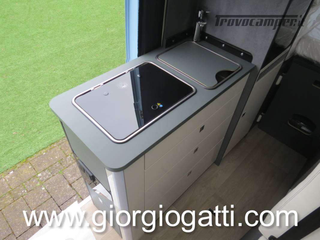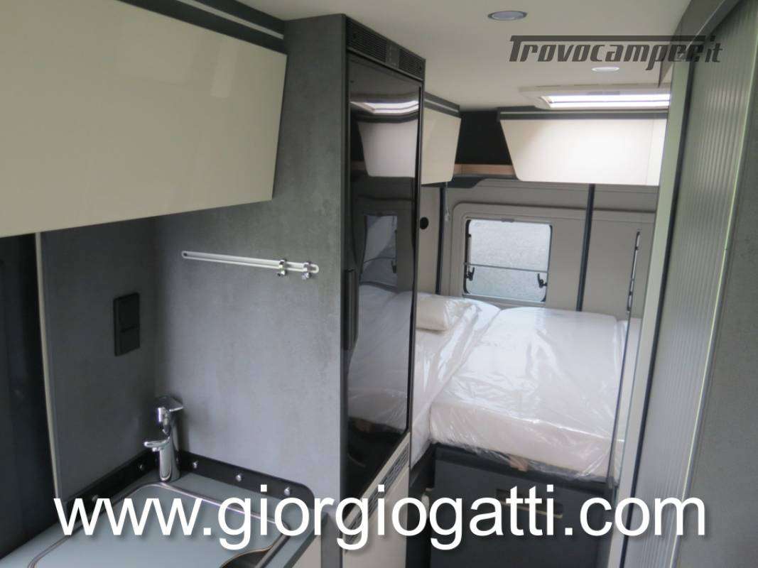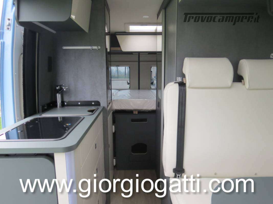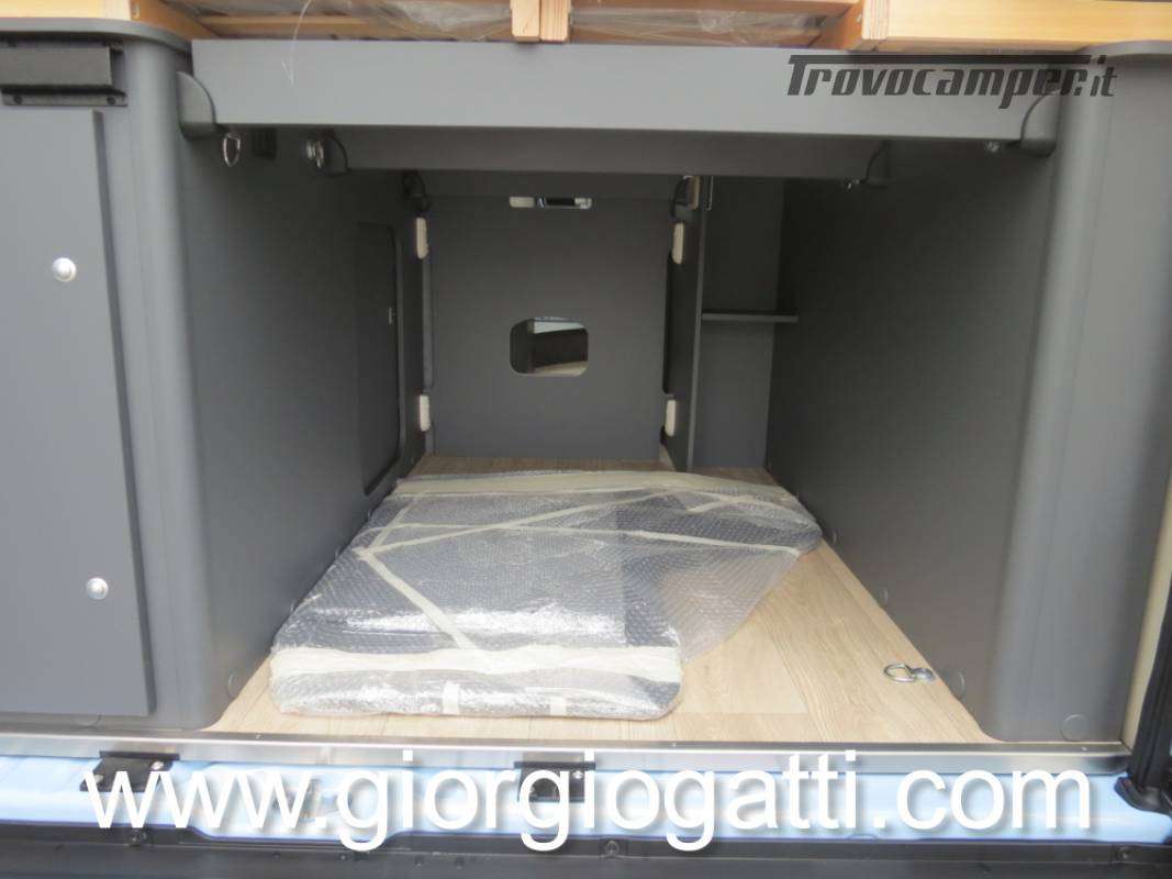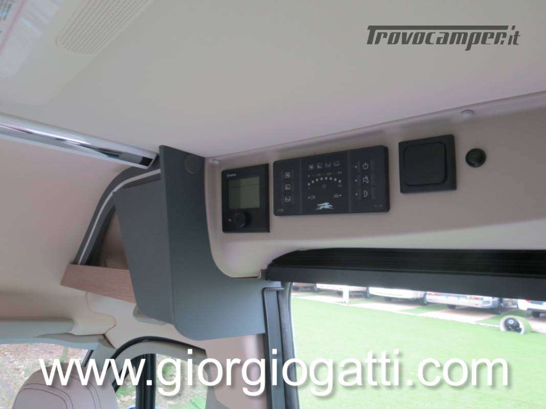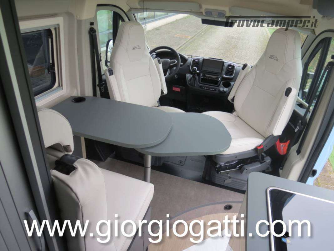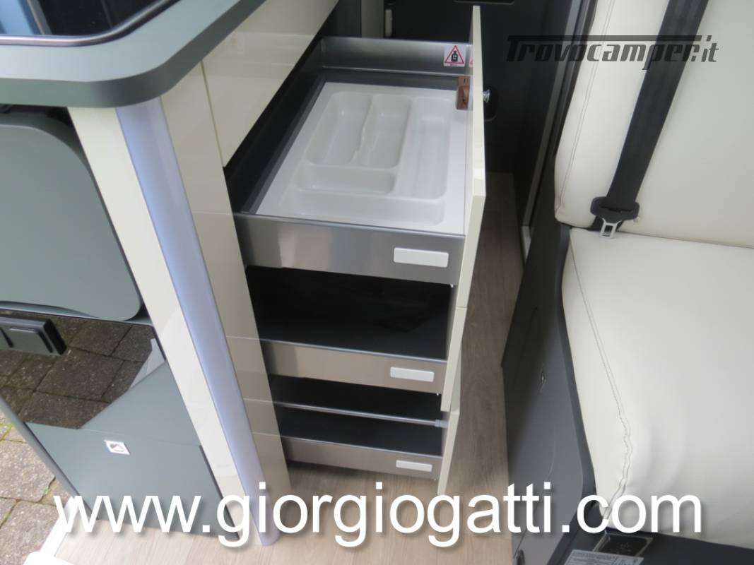 -Dotazioni presenti sul veicolo : meccanica 180 cv (light duty) + cambio automatico - cerchi in lega 18" nero matter - Pack chassis Max (freno a mano elettrico- TPMS -climatizzatore cabina automatico con filtro antipolline – sistema di ricarica induttiva per smartphone – strumentazione digitale con display a colori TFT da 7” – Fari full led)-Pack Safety (controllo autonomo della frenata di emergenza con rilevamento di pedoni e ciclisti, controllo della corsia, sensore di pioggia e crepuscolo, riconoscimento dei segnali stradali + riconoscimento degli abbaglianti – Cruise control adattivo >30km/h)-Pack Comfort (Zanzariera portellone laterale – predisposizione telecamera di retromarcia – serbatoio di recupero isolato e riscaldato – luci led e gocciolatoio per portellone laterale – pedana doccia – pareti camera da letto posteriore rivestite in Ecopelle – mensola abbattibile in cucina)- Pack Multimedia Pioneer (Multimedia System Pioneer 9”, Autoradio DAB, Touchscreen, Apple Car Play/Android Auto, altoparlanti, retrocamera-Dinette trasformabile in letto-Colore esterno Azzurro Capri-Tappezzeria Bianco Carrara-Mobilio “Forest Green + Stone Grey”