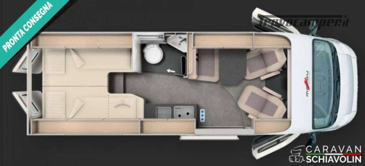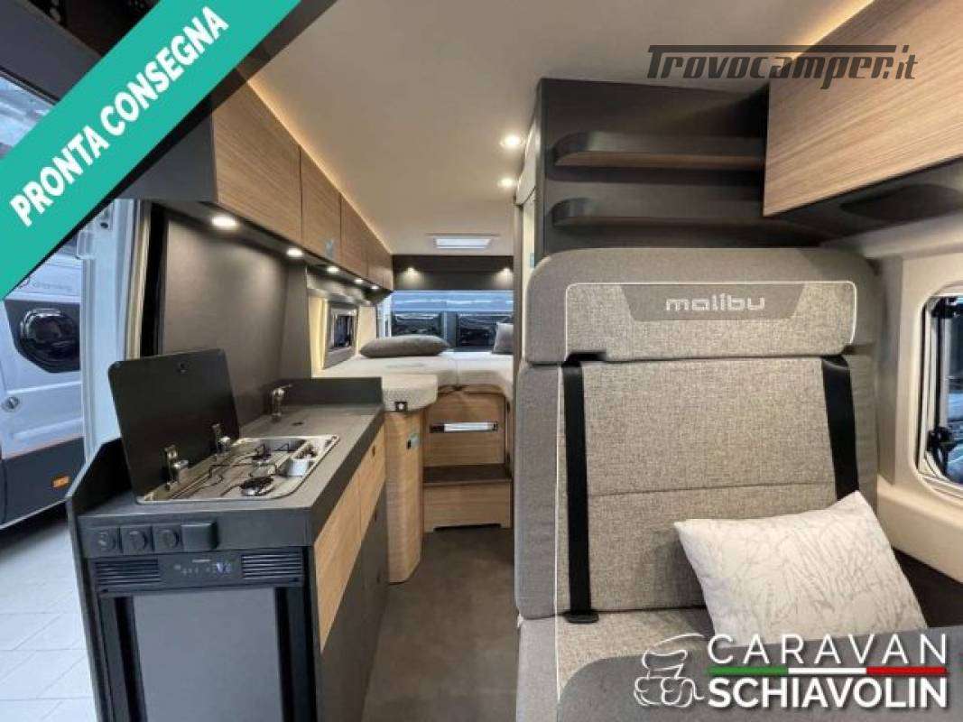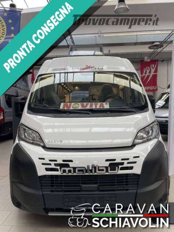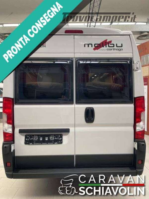 Linea di equipaggiamento ACTIVE ? 6.910,00 (Sistema di assistenza al parcheggio con sensori nel retro, Serbatoio carburante da 90 litri, Booster di ricarica, Sistema di oscuramento della cabina di guida su parabrezza e finestrini laterali, Predisposizione radio con antenna a tetto e DAB+, altoparlanti (4x) 34), Sedile passeggero regolabile in altezza, Sedili pilota rivestiti con la stessa tappezzeria della zona giorno incl. braccioli imbottiti, Zanzariera dietro la porta scorrevole, Specchi retrovisori regolabili e riscaldabili elettricamente, Specchi retrovisori a chiusura elettrica, Cornice dei fari in colore nero, Volante multifunzione (con tasti di comando radio a distanza), Predisposizione gancio traino, Predisposizione retrocamera, Rivestimento interno climatico in microfibra sul soffitto, Materasso in schiuma fredda di alta qualità nel letto posteriore, Pannello comandi digitale Truma CP Plus, Sistema di ancoraggio vano bagagli, Radio/Moniceiver Pioneer 6,8" incl. DAB+, Colore esterno bianco, Pacchetto prese: 3x presa USB / 2x presa da 230 V)Cerchi in Lega da 16" ? 1.120,00Corredo per letto Malibu e set decorativo ? 425,00 CAMPER VAN TEDESCO DI FASCIA PREMIUM MALIBU BY CARTHAGO NOVITA' ASSOLUTA 2026 A PARTIRE DA SOLI € 59.230,00, FURGONATO DA 6,36 Mt CON LETTI GEMELLI POSTERIORI NOVITA' 2026IN PRONTA CONSEGNA FOTO DI REPERTORIO.;