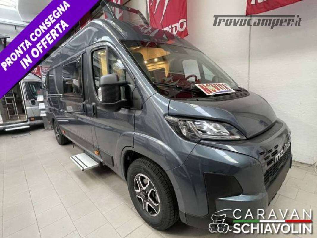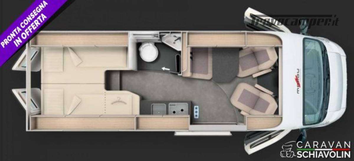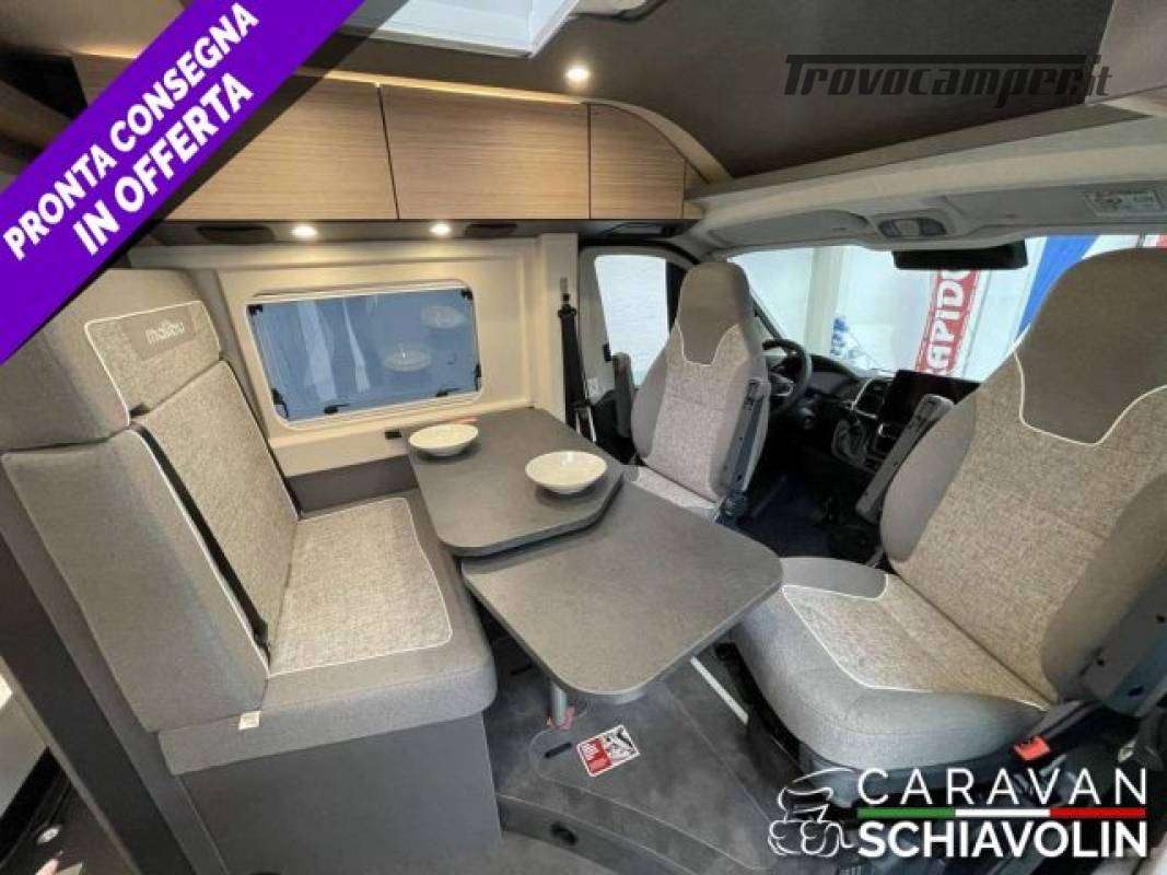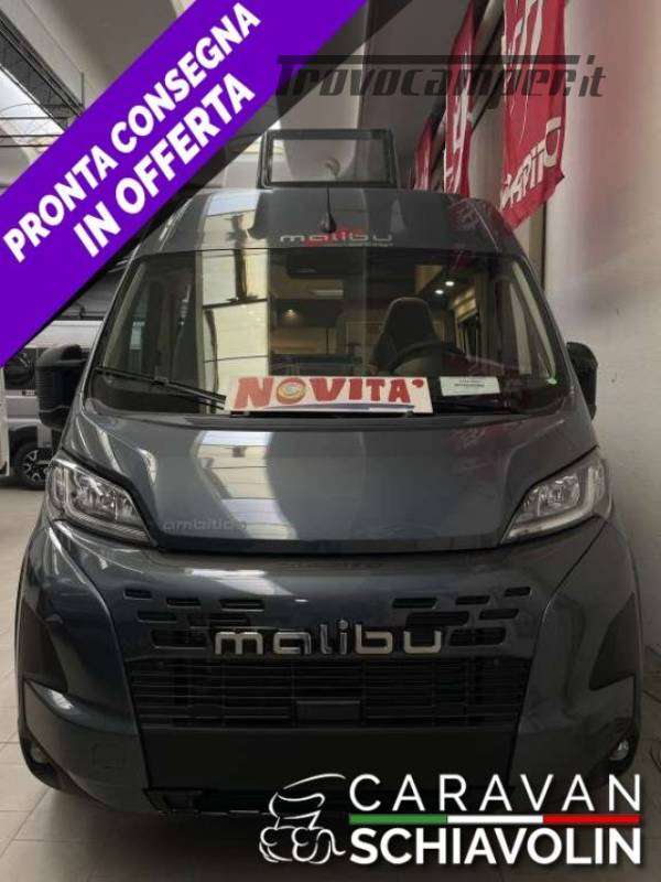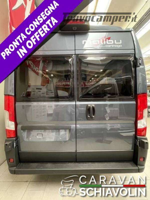 Linea di equipaggiamento AMBITION ? 21.030,00 (Motore 140 CV f35 light, cambio automatico a 8 marce, Sistema di assistenza al parcheggio con sensori nel retro, Serbatoio carburante da 90 litri, Booster di ricarica, Sistema di oscuramento della cabina di guida su parabrezza e finestrini laterali, Predisposizione radio con antenna a tetto e DAB+, altoparlanti (4x) 34), Sedile passeggero regolabile in altezza, Sedili pilota rivestiti con la stessa tappezzeria della zona giorno incl. braccioli imbottiti, Zanzariera dietro la porta scorrevole, Specchi retrovisori regolabili e riscaldabili elettricamente, Specchi retrovisori a chiusura elettrica, Cornice dei fari in colore nero, Volante multifunzione (con tasti di comando radio a distanza), Predisposizione gancio traino, Volante e pomello del cambio in similpelle, Abbellimento del cruscotto: griglie di ventilazione cromate, Cerchi in lega da 16 pollici, Paraurti verniciati nel colore della carrozzeria, Skid plate nera, Fendinebbia con luce di svolta, Climatizzatore automatico cabina di guida, Base di ricarica induttiva per cellulare, Strumento combinato digitale con display a colori nel cruscotto, Sistema Keyless Entry & Go, Freno di stazionamento elettrico, Assistente attivo alla frenata con riconoscimento pedoni e biciclette, Assistente attivo di mantenimento corsia, Assistente abbaglianti, Riconoscimento segnaletica stradale, Sensore luce e pioggia, Tempomat adattivo, Limitatore di velocità intelligente, Sistema di rilevamento della stanchezza del conducente, Sensori pressione pneumatici, Serbatoio acque grigie incassato e isolato nell?alloggiamento, Materasso in schiuma fredda di alta qualità nel letto posteriore, Pannello comandi digitale Truma CP Plus, Sistema di ancoraggio vano bagagli, Pacchetto prese: 3x presa USB / 2x presa da 230 V, Sistema multimediale Fiat 10,1" incl. navigatore, funzione di calcolo itinerari per camper e DAB+, Sistema retrocamera digitale con lente singola, Rivestimento interno climatico in microfibra sul soffitto, Colore esterno metallizzato: GRIGIO FERRO, FINESTRA PREMIUM nella zona bagno, Truma Duo Control CS con sensore d?urto e commutazione automatica) CAMPER VAN TEDESCO DI FASCIA PREMIUM MALIBU BY CARTHAGO NOVITA' ASSOLUTA 2026 A PARTIRE DA SOLI € 59.230,00, FURGONATO DA 6,36 Mt CON LETTI GEMELLI POSTERIORI NOVITA' 2026 N PRONTA CONSEGNA.;