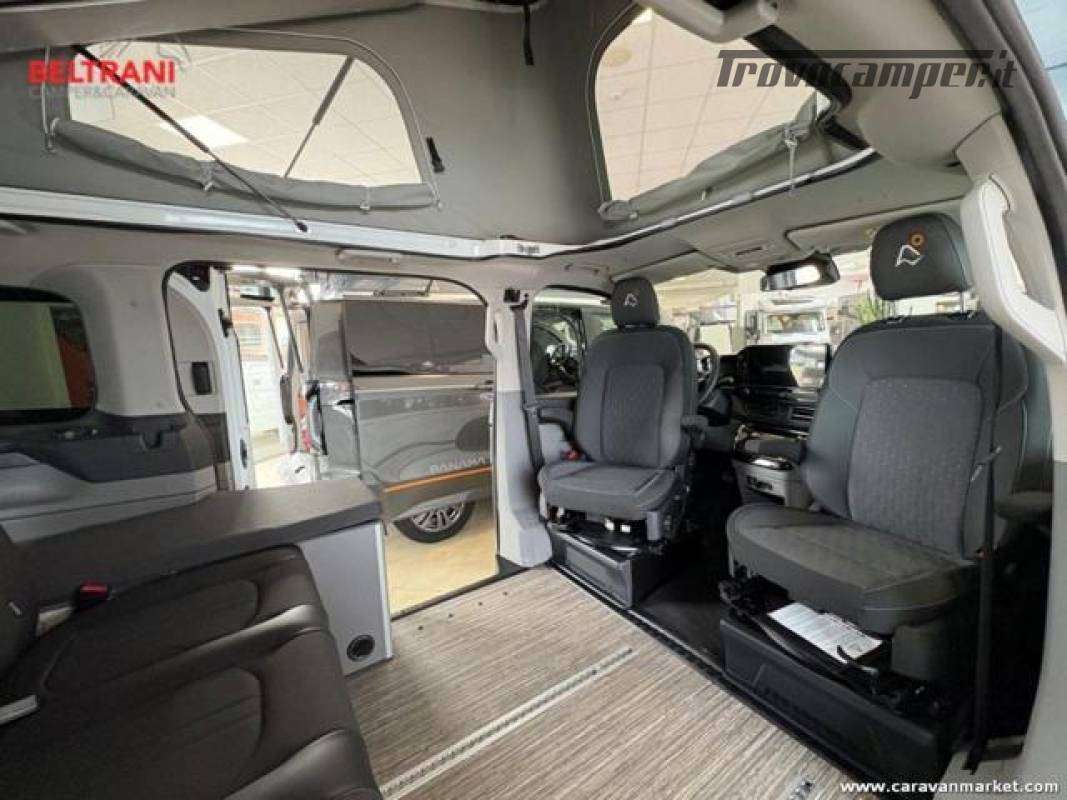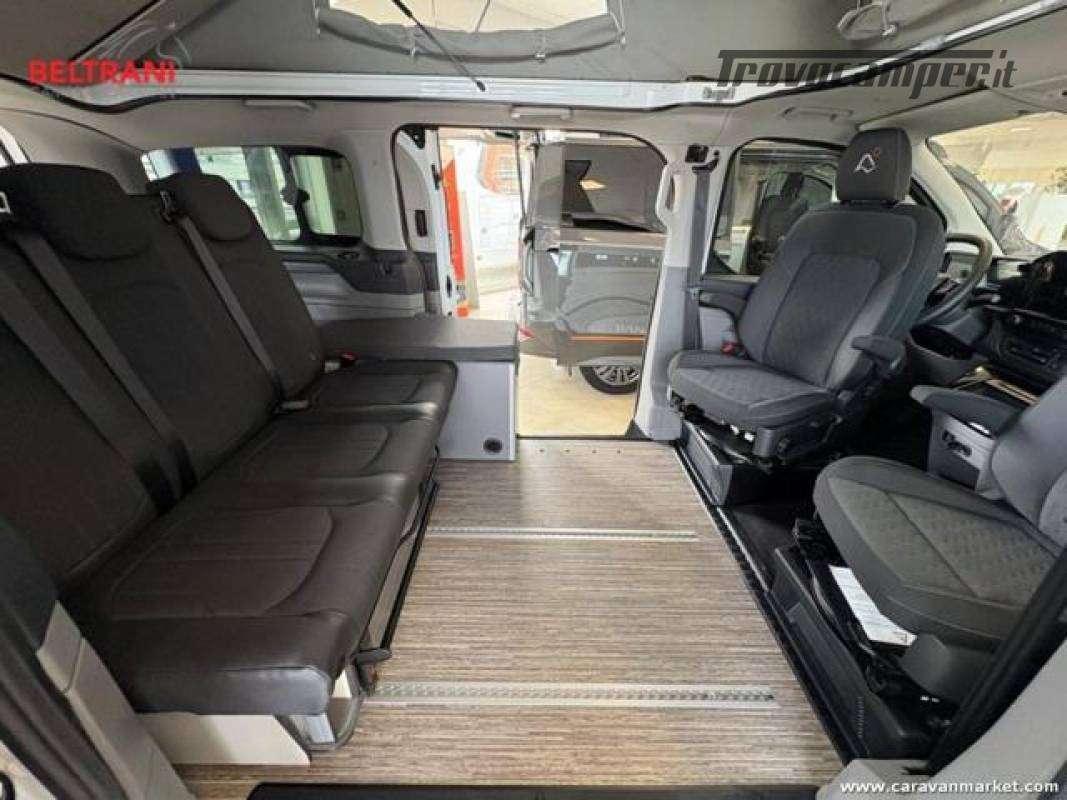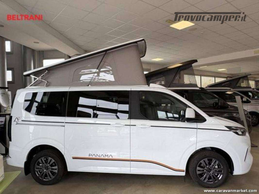 Il Panama P09+ è il mini van ideale per chi cerca un mezzo facile da guidare, pratico e completo, perfetto sia per l?uso quotidiano che per le vacanze. Realizzato su meccanica Ford Transit Custom 2.0 TDCi, questo modello offre tutta la qualità e la versatilità tipiche della gamma Panama, unendo comfort, tecnologia e libertà di movimento.Con una dimensione totale di soli 5,05 metri e un?altezza di circa 2 metri, il Panama P09+ garantisce la massima maneggevolezza in città, nei parcheggi e nei campeggi, dove spesso i veicoli oltre i 7 metri incontrano restrizioni o costi aggiuntivi. Le dimensioni compatte non sacrificano lo spazio interno: il van è infatti omologato per 5 posti viaggio e offre fino a 5 posti letto grazie al tetto sollevabile con letto matrimoniale e alla panca trasformabile.