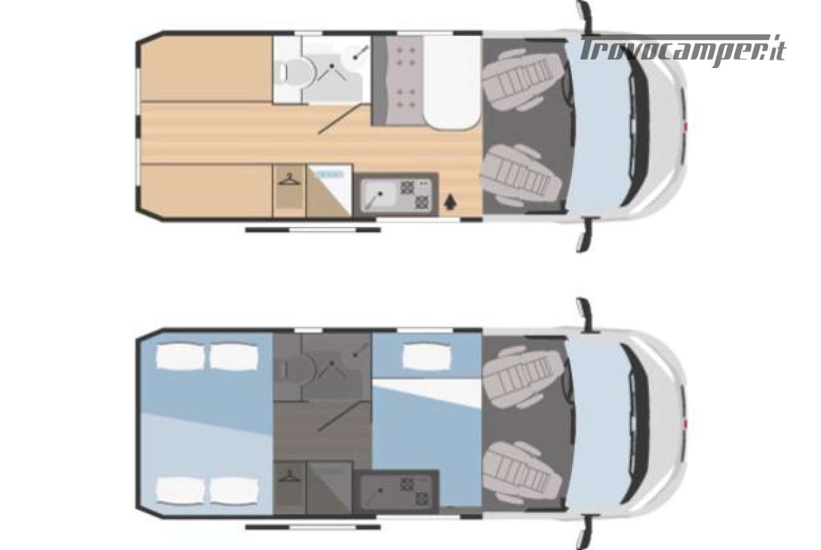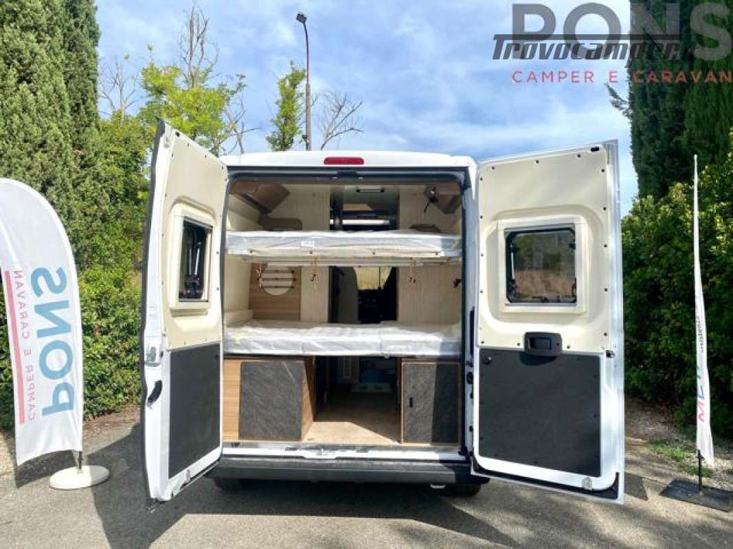 Particolarità del veicolo la possibilità di avere 4 posti letto sempre pronti in coda grazie alla soluzione del castello.