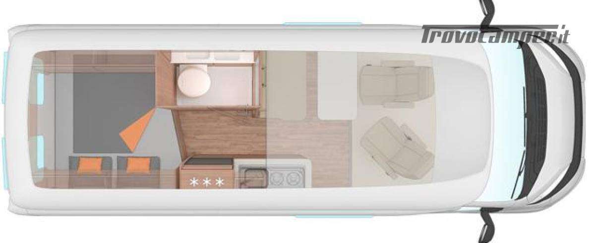 DISPOSIZIONE LETTO POSTERIORE + LETTO SOPRA LA CABINA GUIDA A SCOMPARSA +
