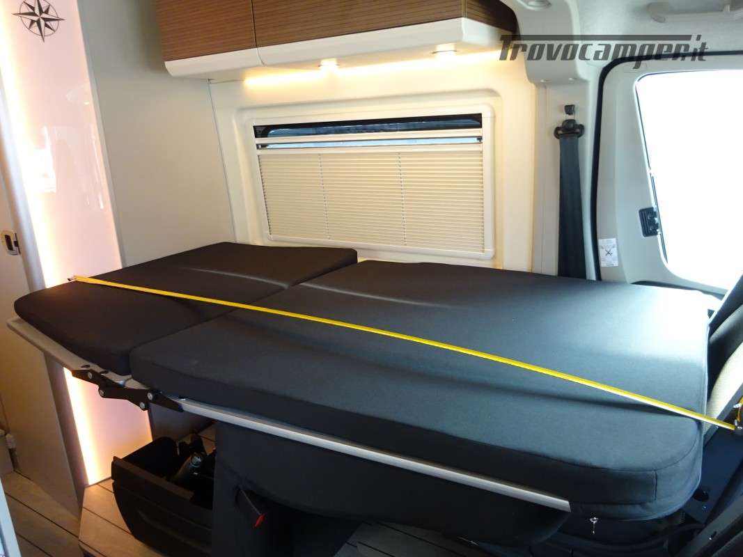 Spazio per tutti: 4 posti viaggio e 4 posti letto, ideale per famiglie o gruppi di amici.
