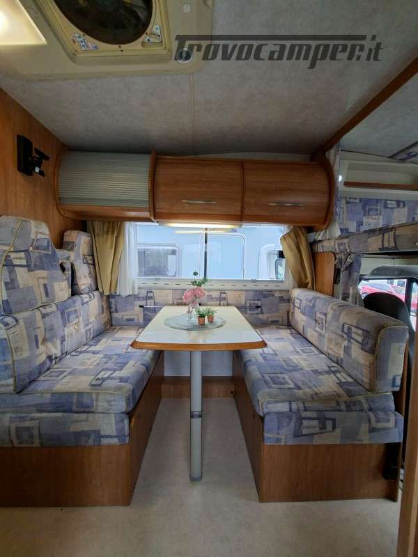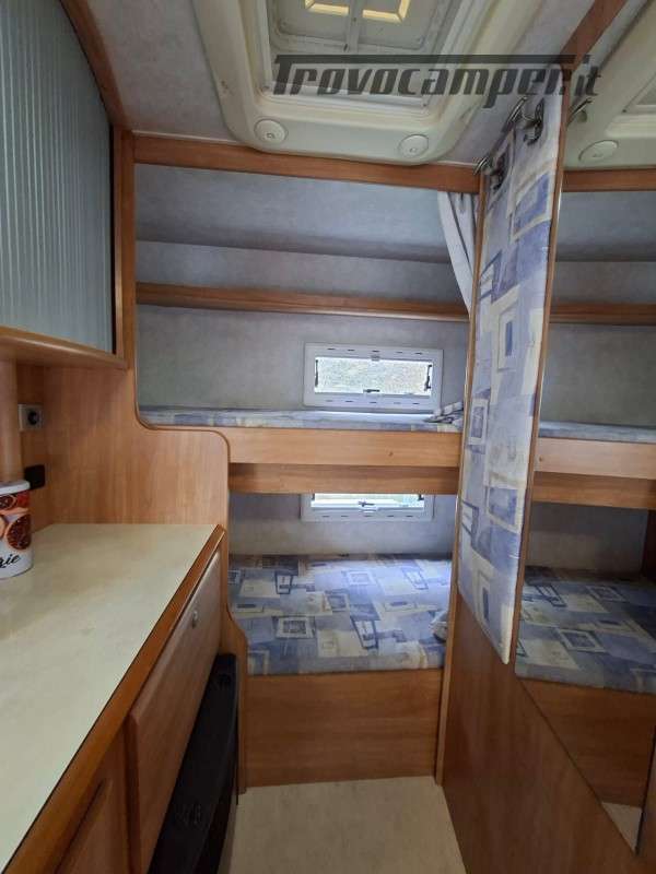 * Tipologia: Camper MANSARDATO | ** Posti Letto 6 | ** Posti Omologati 6 | ANTENNA TV DIGITALE TERRESTRE | Autoradio. | Bagno con Doccia Separata | Boiler Truma | CAPPA ASPIRANTE | Cassetta WC Thetford Estraibile | Dinette Centrale | DOPPIO AIRBAG | Doppio Vano Porta Bombole | FINESTRE SEITZ | Frigorifero Trivalente Basso con Scomparto Ghiaccio | GARAGE_POSTERIORE a VOLUME VARIABILE | Letti a Castello in Coda | Luce Esterna | PANNELLO FOTOVOLTAICO | Piano Cottura Cucina 3 Fuochi | Piedini di Stazionamento | Porta Cellula con Zanzariera | PORTABICI | Portapacchi con Scaletta | Servosterzo | Stufa Riscaldamento Truma con Ventilazione | TENDALINO ESTERNO | TRAZIONE POSTERIORE su Ruote Gemellate | TURBOVENT