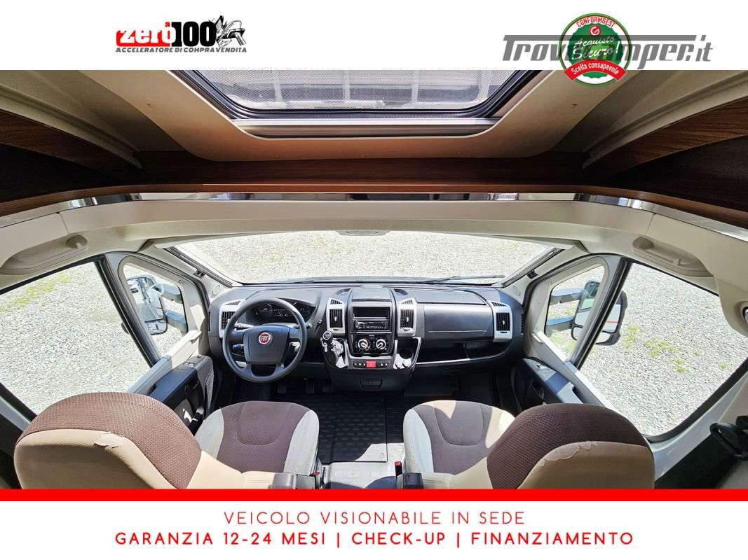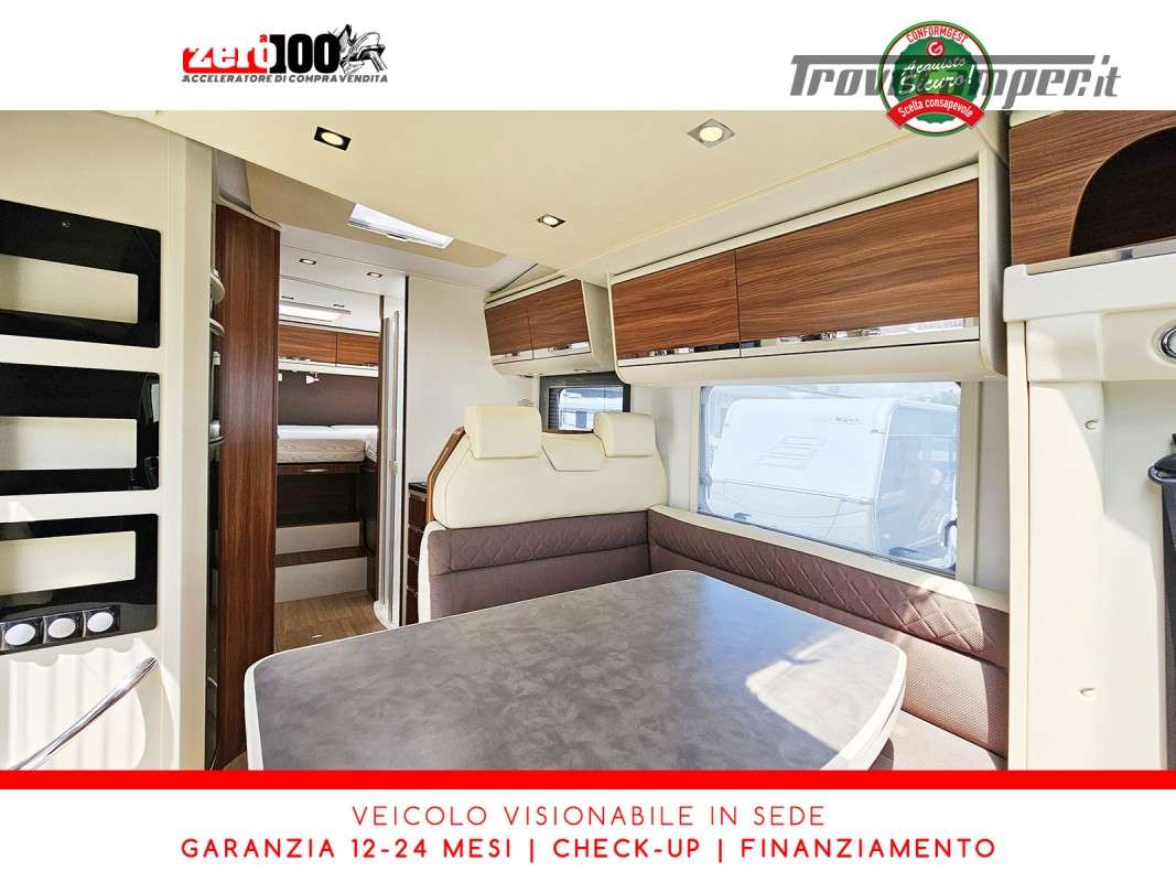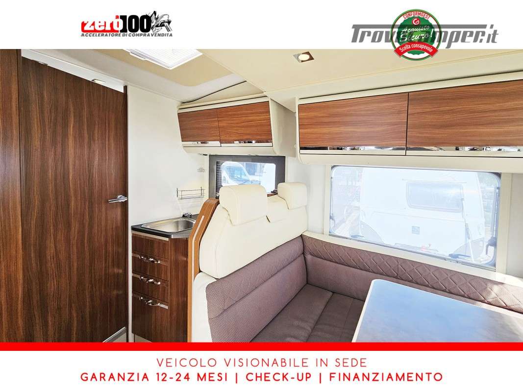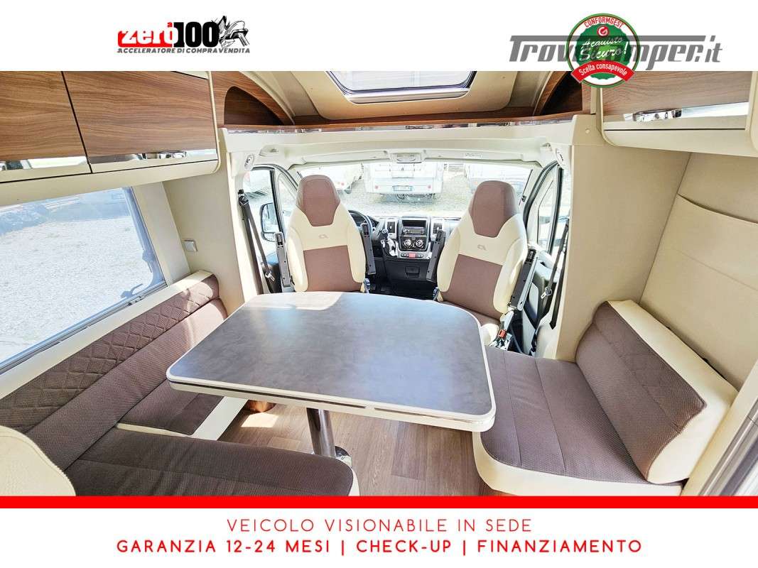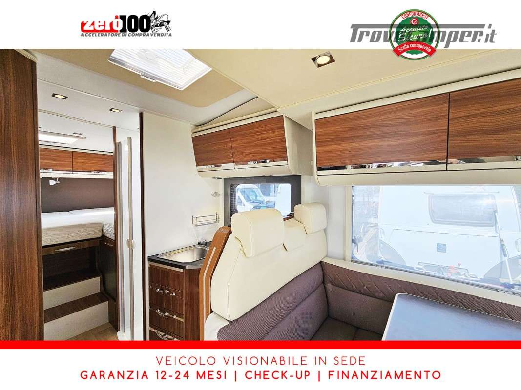 Letti gemelli in coda – Dinette a L con sedili cabina girevoli – Cucina 3 fuochi con piezo e frigorifero trivalente 150 lt automatico – Bagno in 2 vani indipendenti con box doccia separata – Letto anteriore basculante elettrico