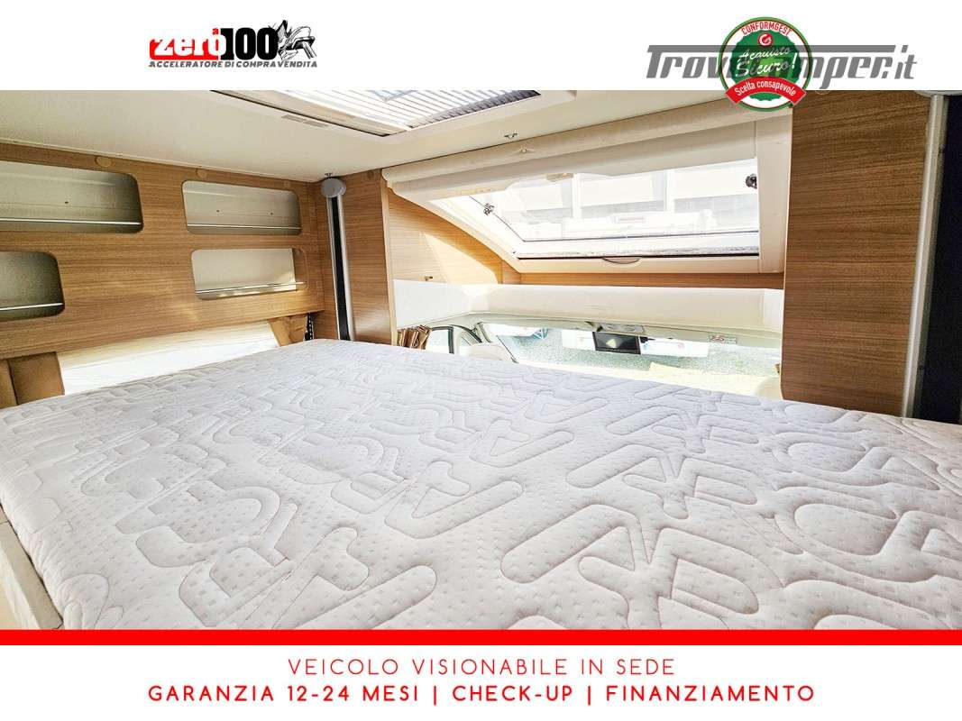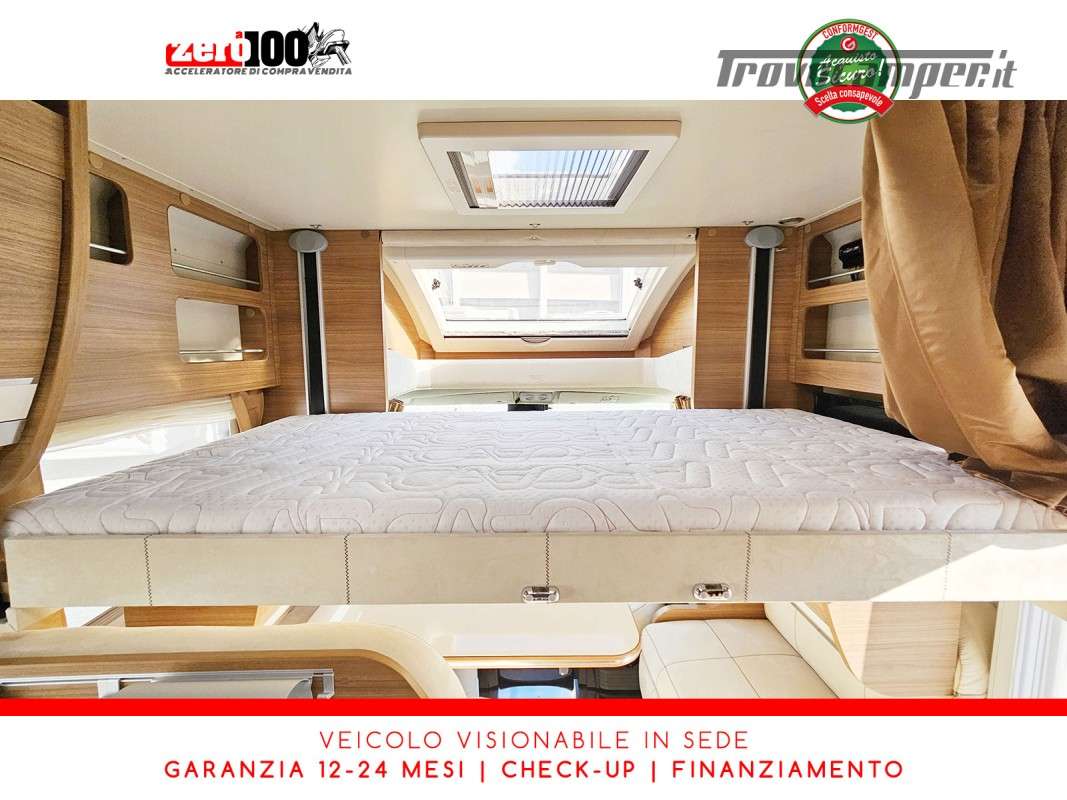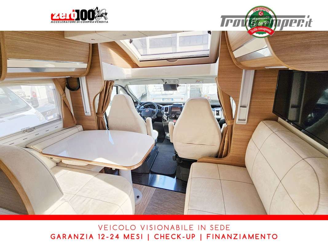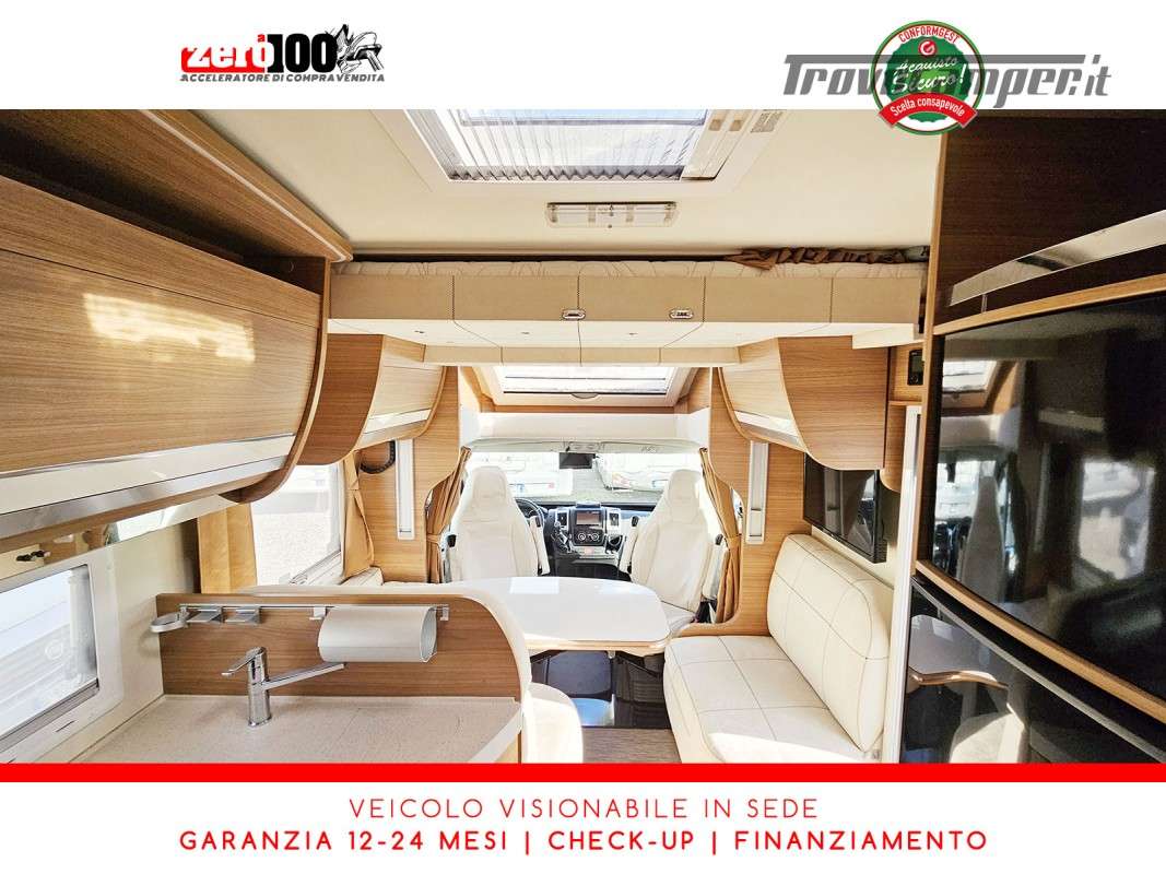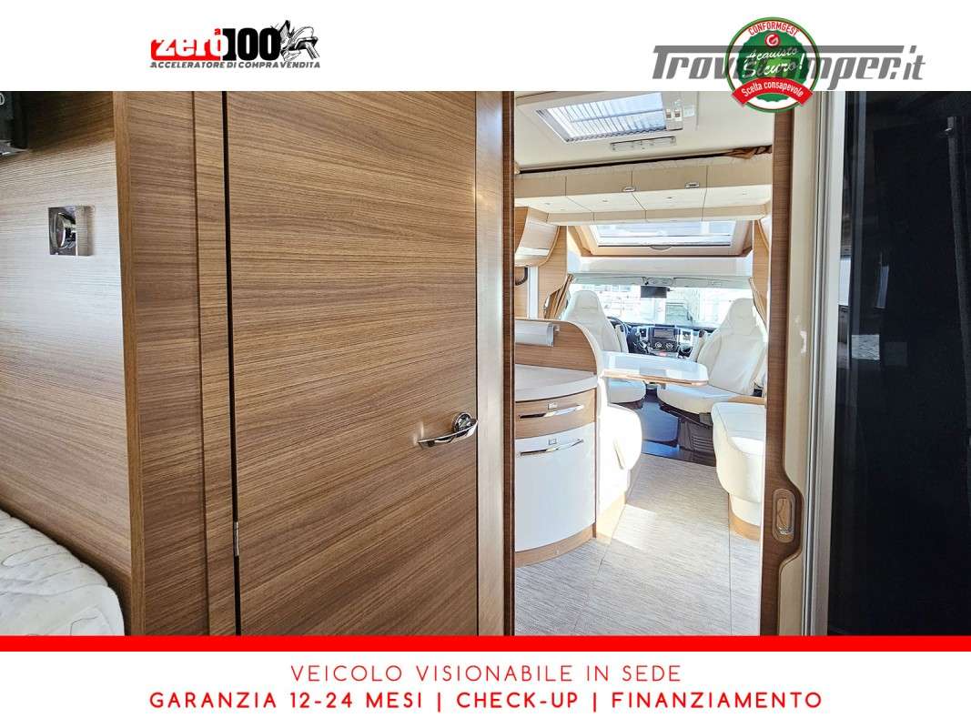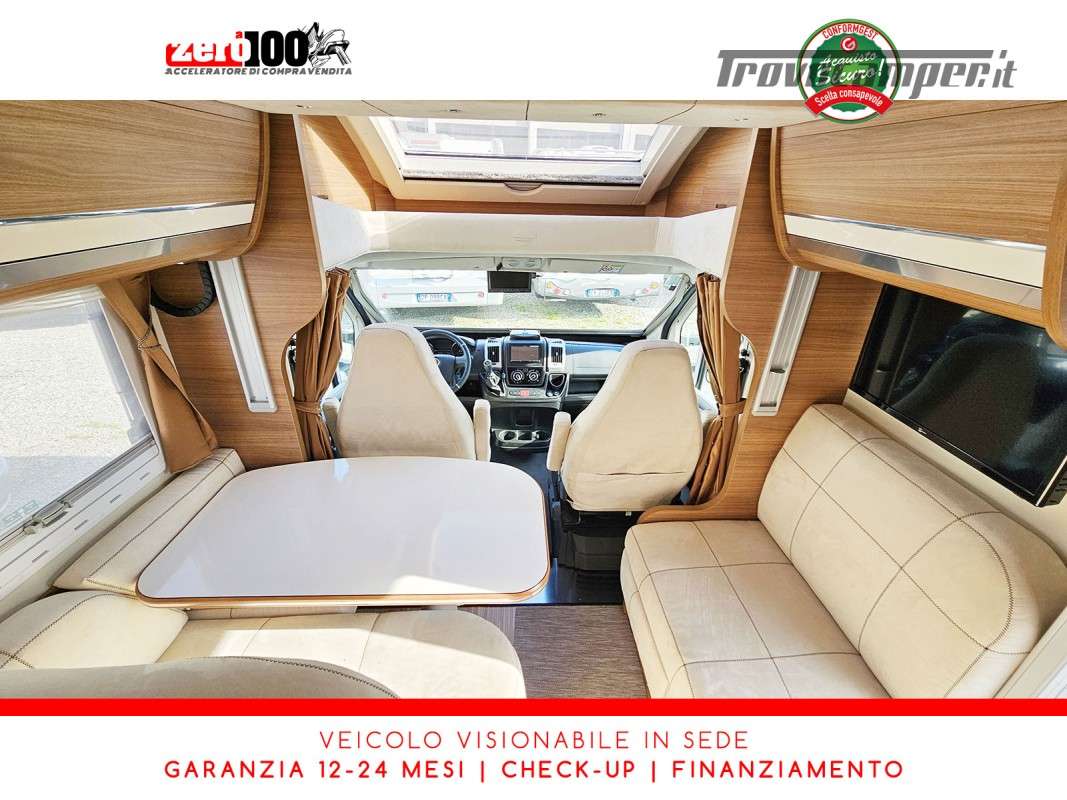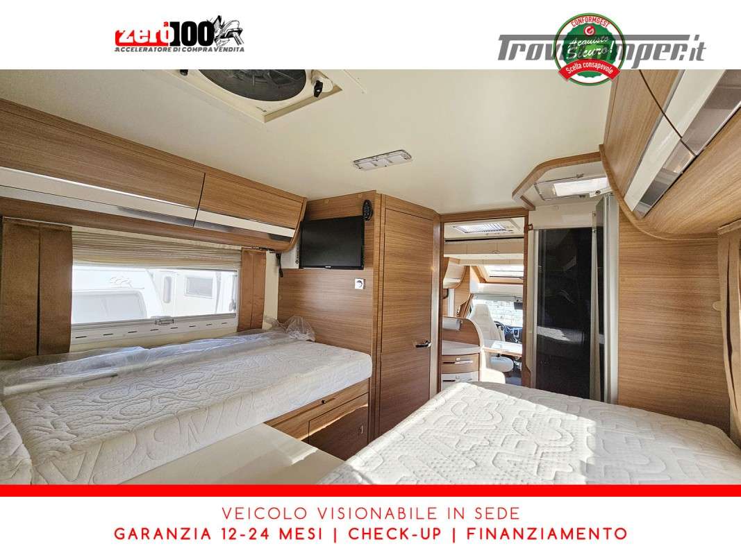 Letti gemelli in coda – Dinette a L con sedili cabina girevoli e gamba telescopica trasformabile in letto – Cucina 3 fuochi con piezo e frigorifero trivalente 150 lt automatico – Bagno in 2 vani indipendenti con box doccia separata – Letto anteriore basculante elettrico – Garage