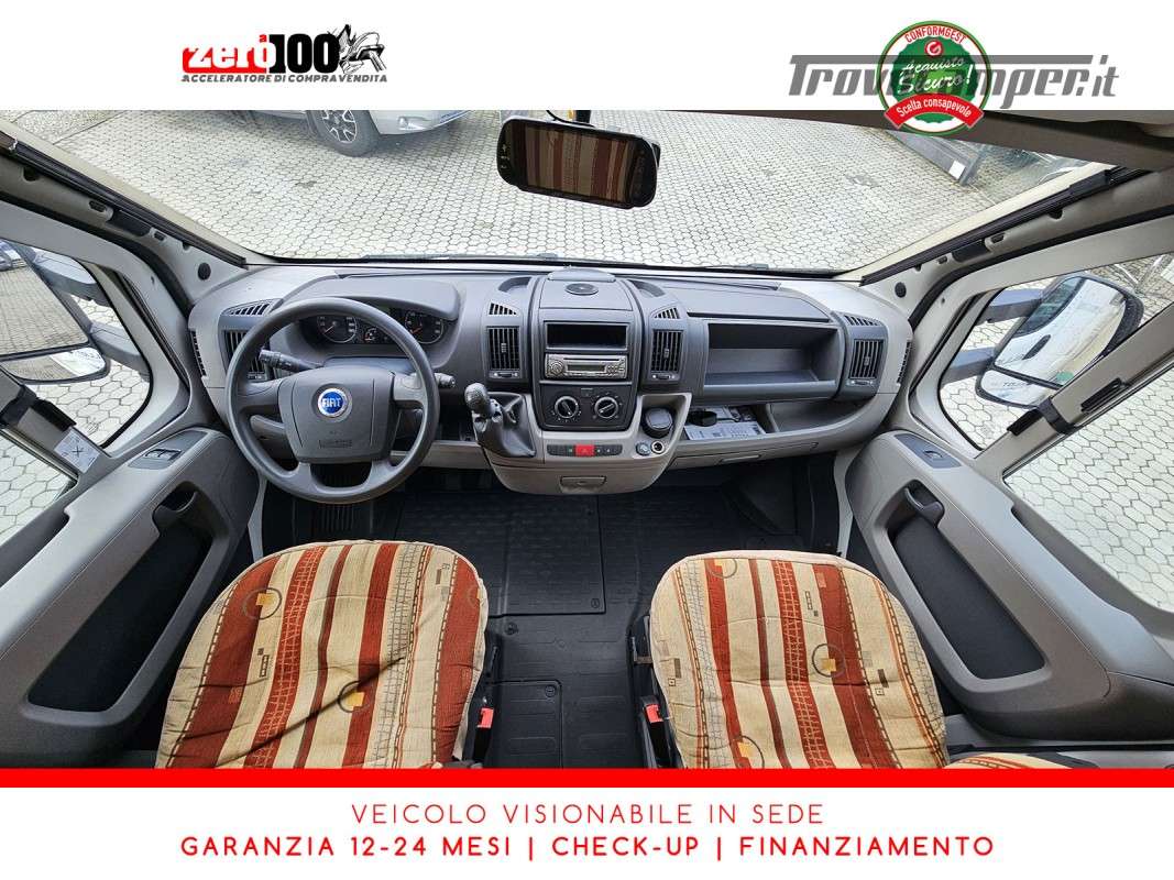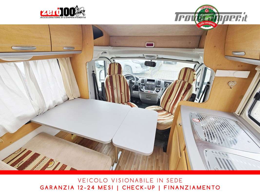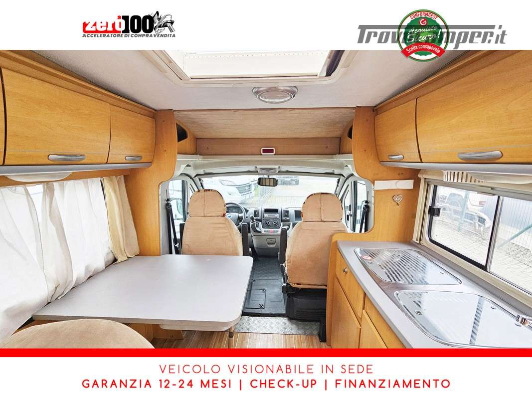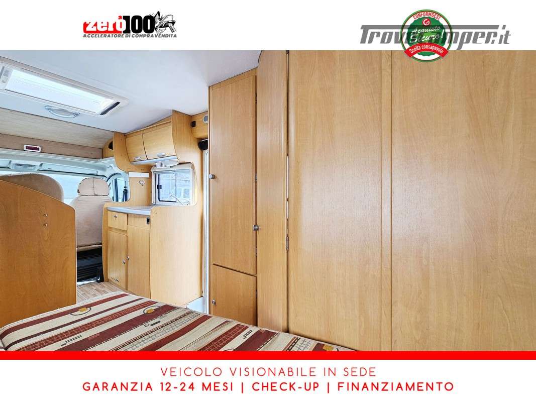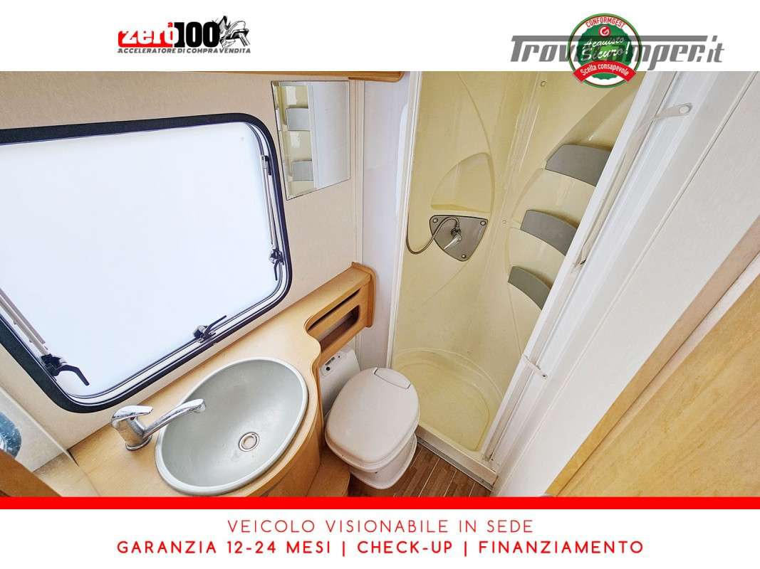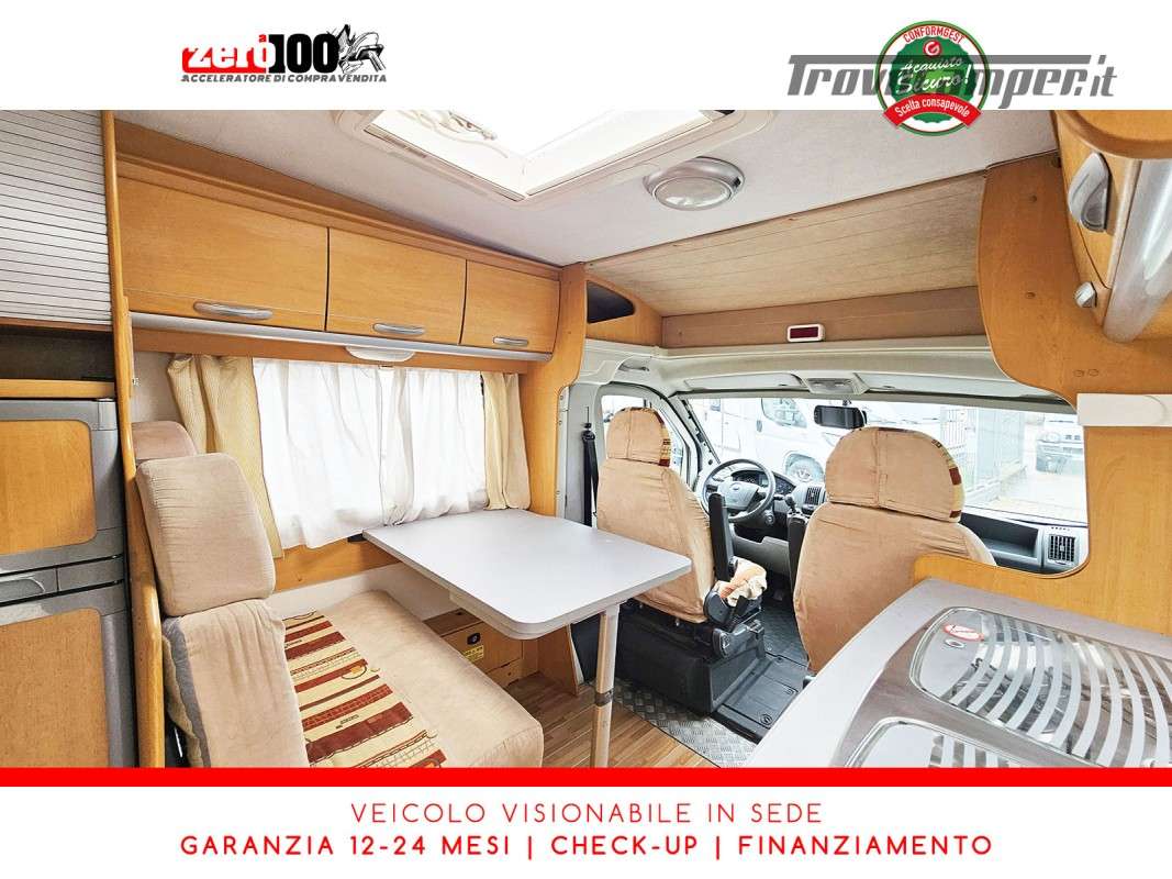 Letto alla francese lato SX in coda - Mezza dinette con sedili cabina girevoli trasformabile in letto - Cucina lineare 3 fuochi con aspiratore, Frigorifero trivalente alto con cella freezer separata - Bagno con box doccia separato, finestra e oblò 28 x 28