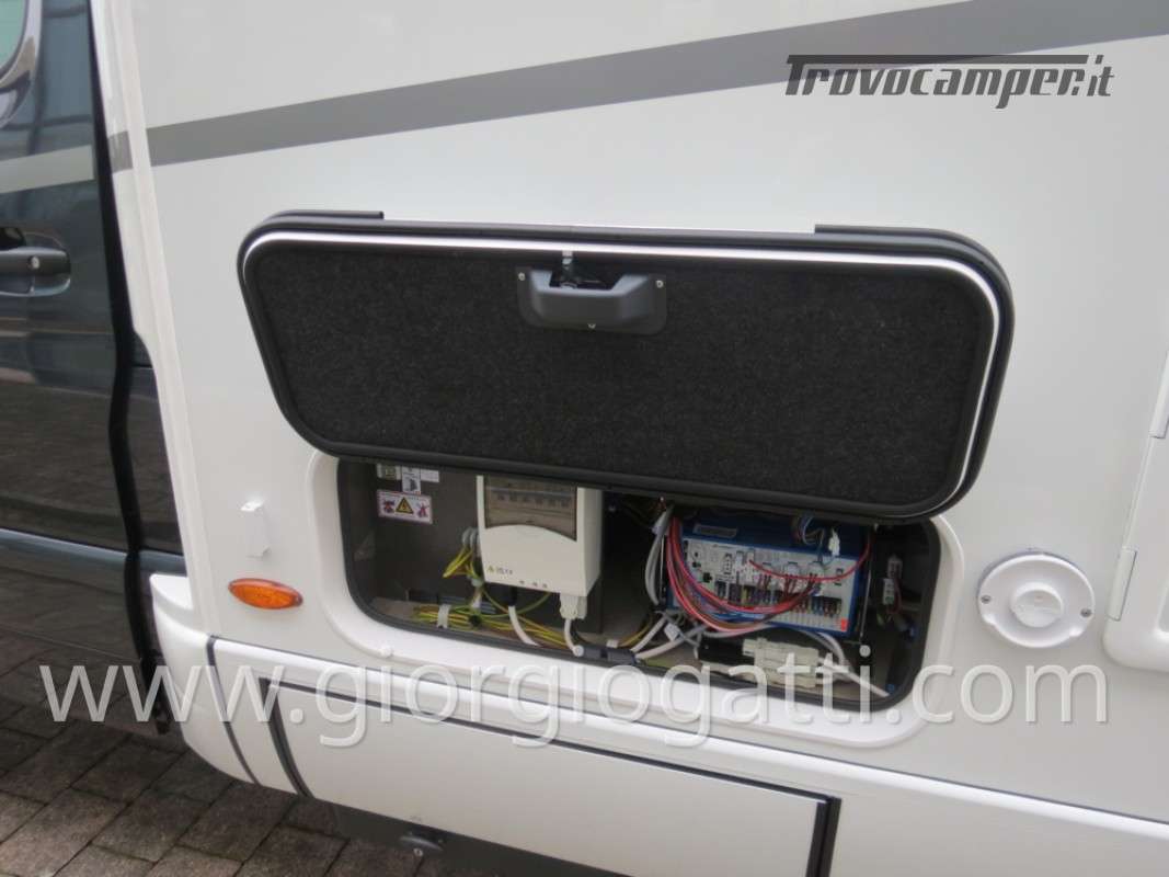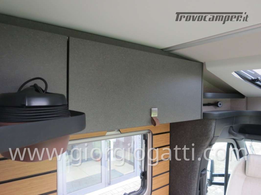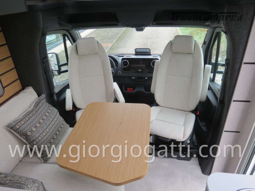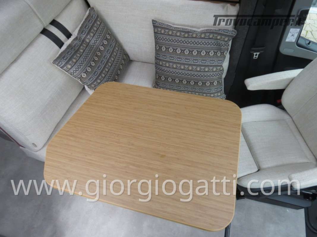 -Dotazioni accessorie presenti sul veicolo: Maggiorazione per meccanica 419 CDI 190cv-Trazione integrale-Cerchi 16” con pneumatici All Terrain-Colore esterno cabina guida Tenorite Grey-Porta comfort-Chiusura centralizzata per porta conducente/cellula e porte garage-Dinette a L-Maggiorazione per Truma Combi DE-Predisposizione pannello solare-Unione cuscini tra letti gemelli -Protezione sotto motore-Pacchetto Style: (griglia di raffreddamento cromata- paraurti, componenti e cornice griglia di raffreddamento nel colore del veicolo – fari fendinebbia con luci statiche di svolta)-Equipment Line plus: (sospensioni asse anteriore rinforzate-vetro termoisolante – pacchetto acustico Mercedes Benz-freno di stazionamento elettrico-clima semiautomatico – quadro strumenti con display a colori MB-volante multifunzione-cruise control-assistenza al mantenimento della corsia-sistema rilevamento stanchezza-sensori pioggia-radio DAB-sistema multimediale MBUX 10,25” con retrocamera, controllo vocale, touchscreen – cambio automatico 9G-TRONIC incl. Funzione Hold- volante in pelle-regolatore della distanza DISTRONIC PLUS-rilevamento segnali stradali-navigatore e integrazione smartphone per il sistema MBUX)-Pack Comfort Abitativo: (rete a doghe sistema Froli per letti post. – lenzuola su misura per i letti posteriori – rivestimento garage in feltro – pedana doccia-4 cuscini- ambient light system – pacchetto luci – prese aggiuntive 4x230 v e 1 x 12v)-Tappezzeria Indiana-Interni Native Bamboo