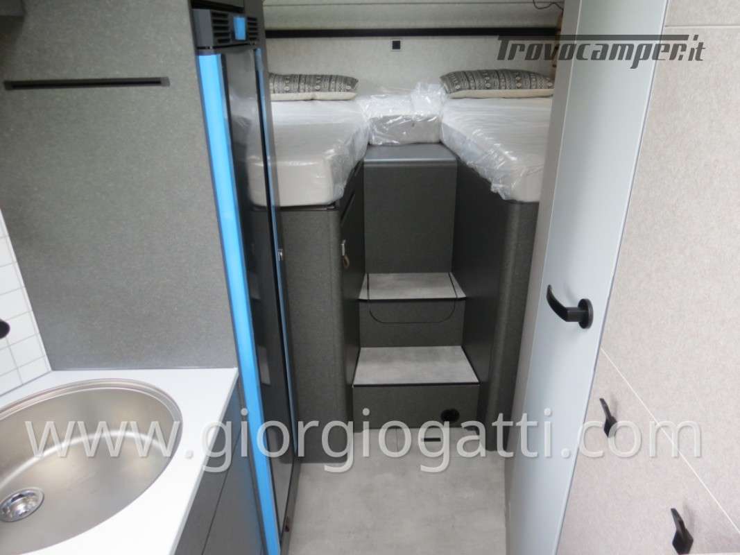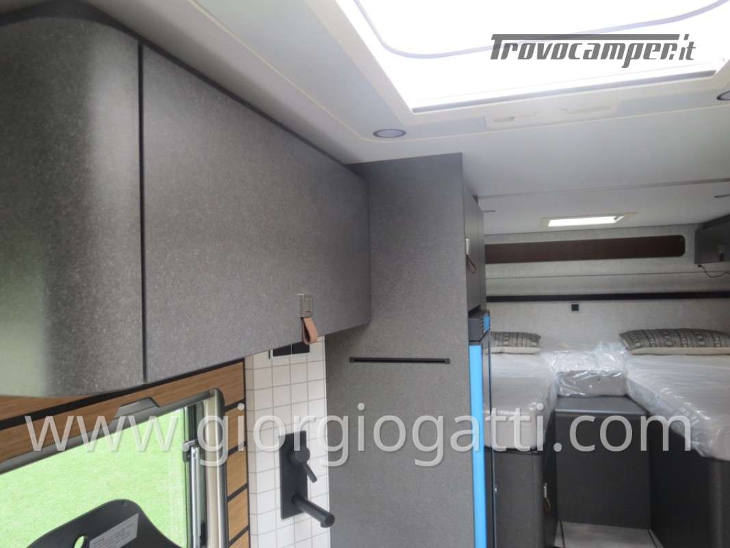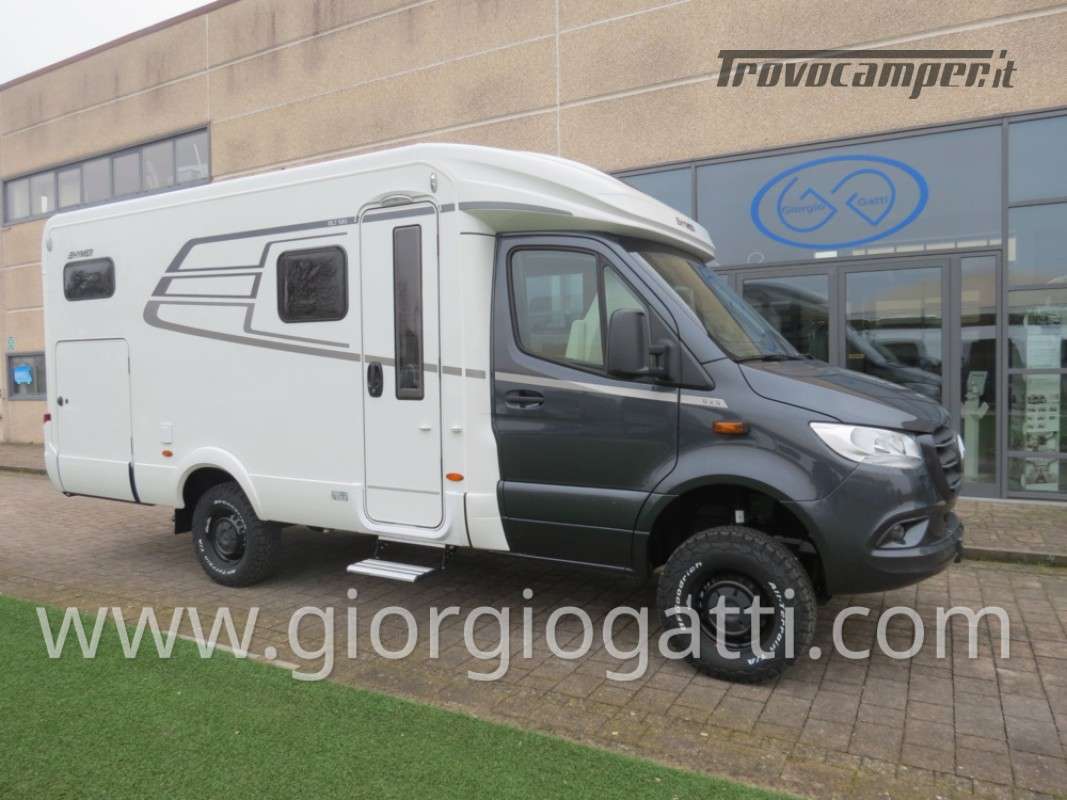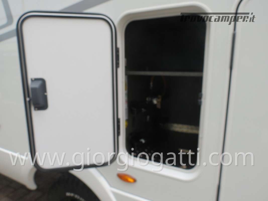 -Dotazioni accessorie presenti sul veicolo: Maggiorazione per meccanica 419 CDI 190cv-Trazione integrale-Cerchi 16” con pneumatici All Terrain-Colore esterno cabina guida Tenorite Grey-Porta comfort-Chiusura centralizzata per porta conducente/cellula e porte garage-Dinette a L-Maggiorazione per Truma Combi DE-Predisposizione pannello solare-Unione cuscini tra letti gemelli -Protezione sotto motore-Pacchetto Style: (griglia di raffreddamento cromata- paraurti, componenti e cornice griglia di raffreddamento nel colore del veicolo – fari fendinebbia con luci statiche di svolta)-Equipment Line plus: (sospensioni asse anteriore rinforzate-vetro termoisolante – pacchetto acustico Mercedes Benz-freno di stazionamento elettrico-clima semiautomatico – quadro strumenti con display a colori MB-volante multifunzione-cruise control-assistenza al mantenimento della corsia-sistema rilevamento stanchezza-sensori pioggia-radio DAB-sistema multimediale MBUX 10,25” con retrocamera, controllo vocale, touchscreen – cambio automatico 9G-TRONIC incl. Funzione Hold- volante in pelle-regolatore della distanza DISTRONIC PLUS-rilevamento segnali stradali-navigatore e integrazione smartphone per il sistema MBUX)-Pack Comfort Abitativo: (rete a doghe sistema Froli per letti post. – lenzuola su misura per i letti posteriori – rivestimento garage in feltro – pedana doccia-4 cuscini- ambient light system – pacchetto luci – prese aggiuntive 4x230 v e 1 x 12v)-Tappezzeria Indiana-Interni Native Bamboo