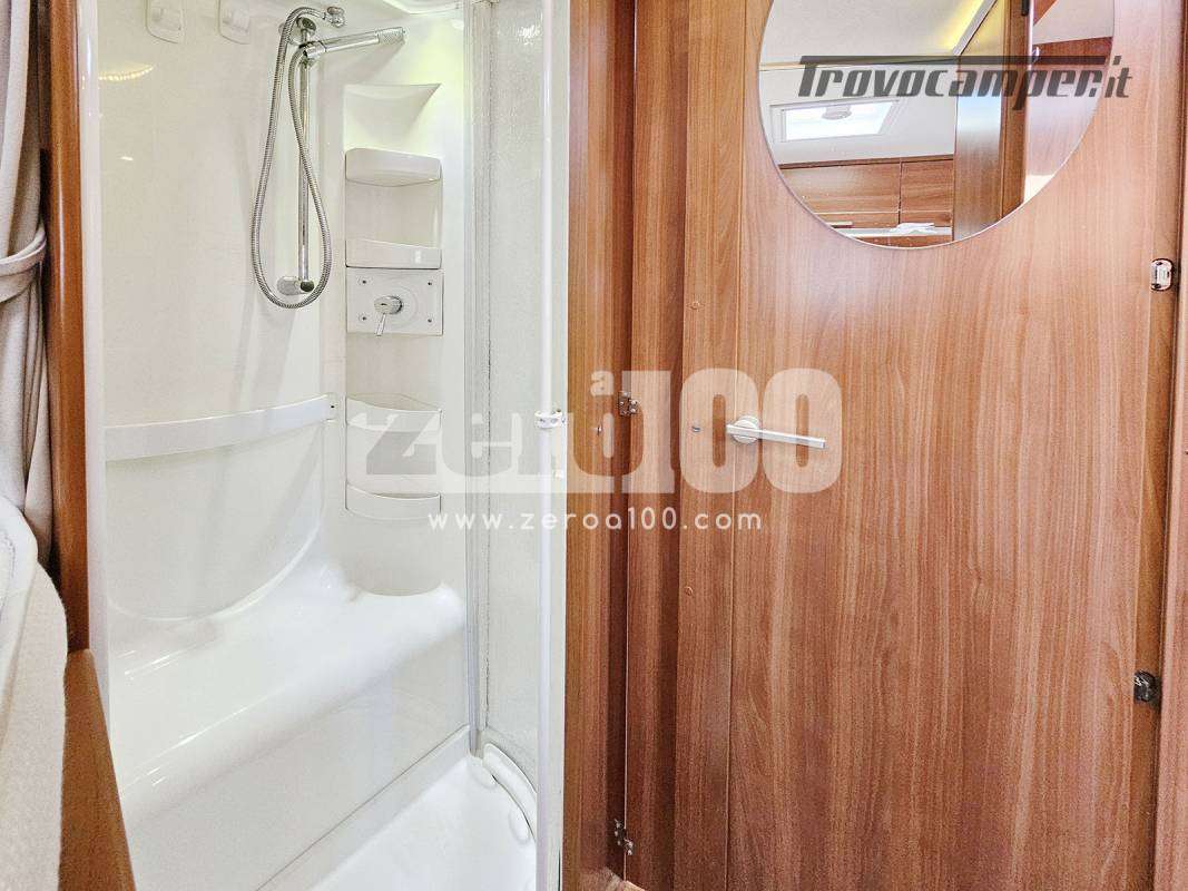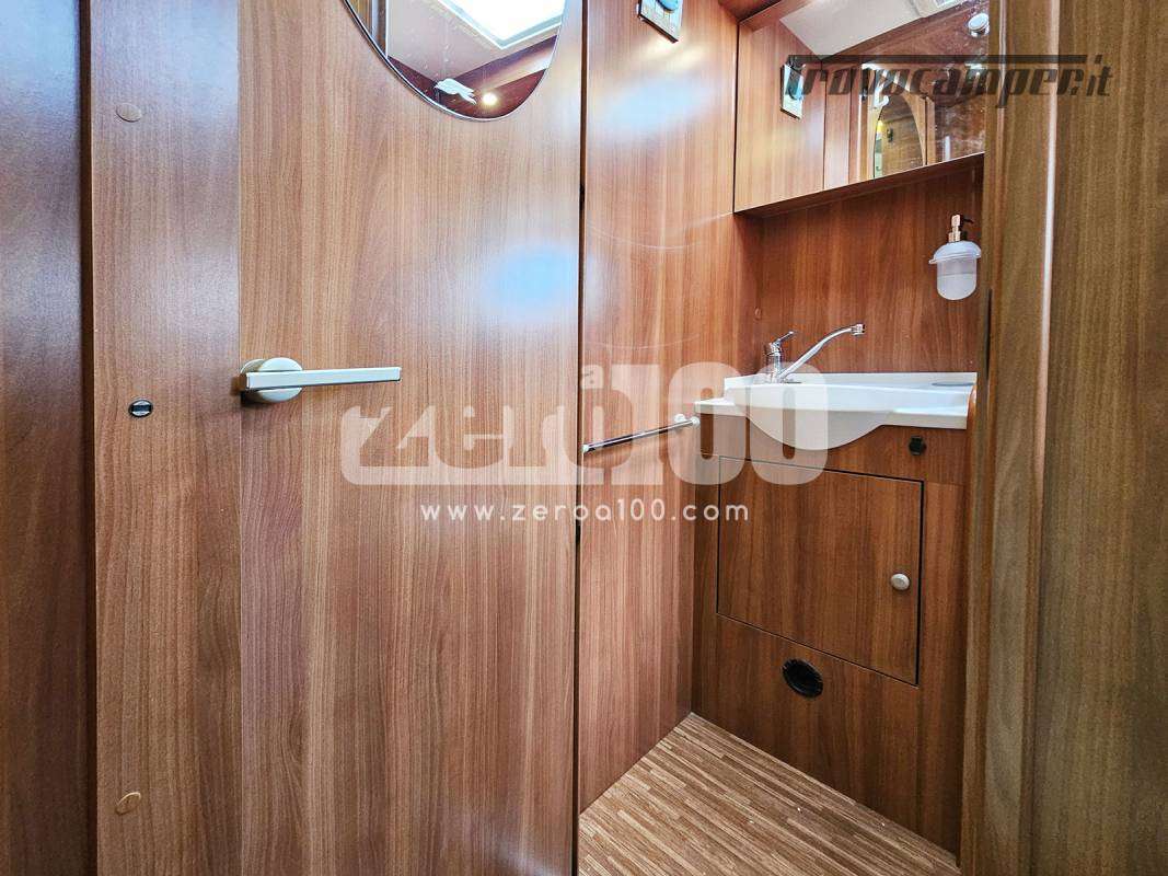 Letto matrimoniale trasversale in coda flex space elettrico – Letto basculante anteriore elettrico – Dinette a L lato SX e divanetto lato DX con sedili cabina girevoli – Cucina a L 3 fuochi con piezo e cappa aspirante, Frigorifero trivalente alto con cella freezer separata – Toilette lato DX con finestra e oblo’ 40 x 40 – Box doccia indipendente lato SX con oblo’ 28 x 28