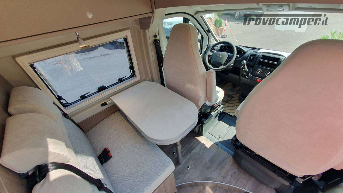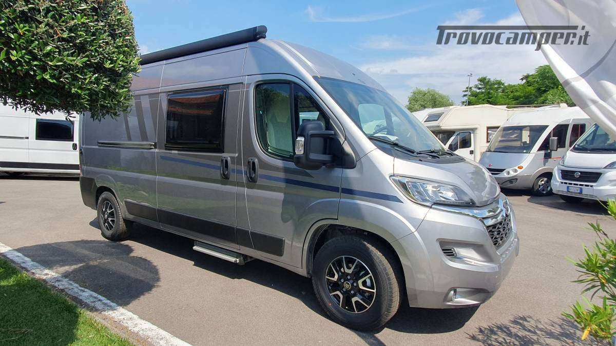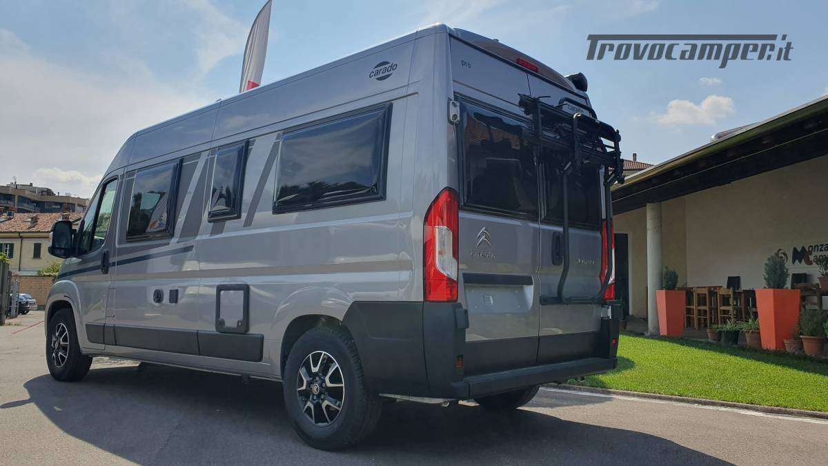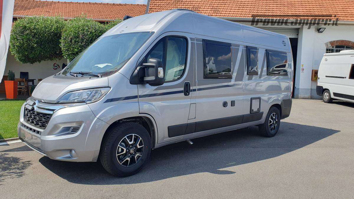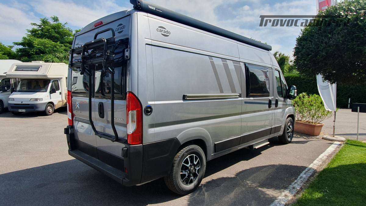 Omologato per 4 persone con 2 posti letto questo Carado CV600 Pro vi porterà lontano! Il layout è il classico con un grande letto matrimoniale trasversale posizionato nella parte posteriore del camper, sopra ad un ampio garage utile per stivare tutto l'occorrente di cui avrete bisogno. La zona giorno è composta dalla dinette e dalla cucina lineare a gas. Quest'ultima è fornita di 2 fuochi, lavandino, un ampio frigorifero a compressore da 90 Lt ed un utilissimo piano di appoggio. Il bagno con doccia è già dotato della comoda pedana in legno. L'acqua calda è gestita dal sistema Truma Combi mentre, il riscaldamento, è a gasolio e fornito dal Webasto. Lungo meno di 6 metri, questo van è su base Citroen Jumper con 140 cavalli e cambio manuale. Compreso nel prezzo troverete inoltre l'aria condizionata in cabina, oscuranti plissettati e una veranda da 4 metri. Tra le altre dotazioni abbiamo: Pacchetto PRO: Pacchetto Base, Pacchetto Optik 1, Pacchetto Optik 2, Serbatoio Diesel 90 L, Cerchi in lega da 16", Paraurti verniciato, Adesivi pro Sensori di pressione degli pneumatici Serbatoio acque reflue isolato e riscaldato Pedana doccia in legno Colore Grigio Artense metallizato