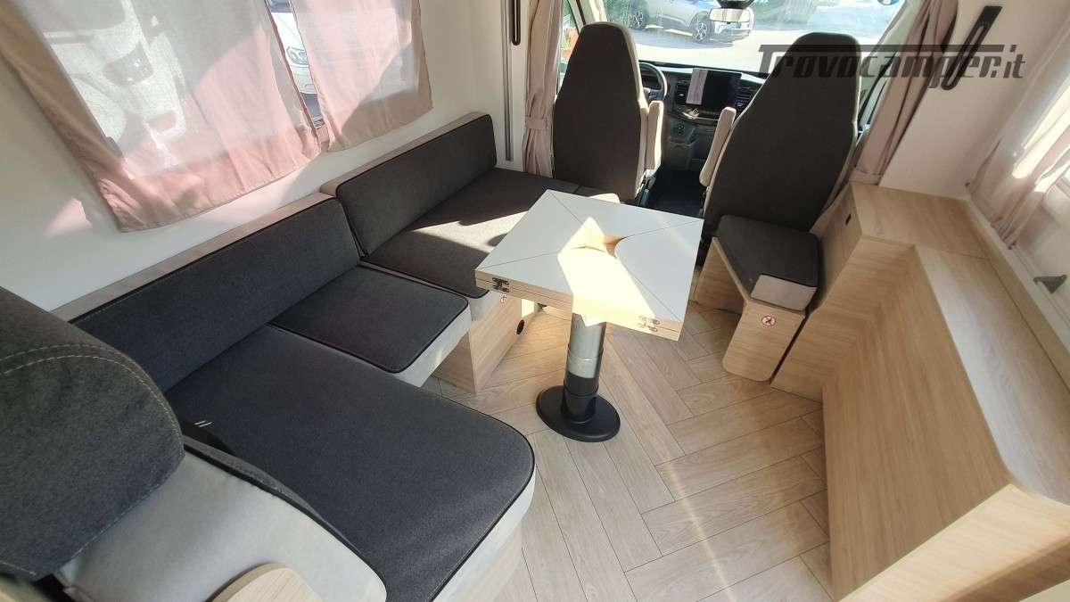 Con 4 posti letto e omologato per 4 persone, è l'ideale per viaggi in totale serenità. La zona giorno è un vero e proprio punto di forza, con un salone a U modulabile che ospita fino a 8 persone, perfetto per socializzare e rilassarsi. E quando è il momento di dormire, il salone si trasforma facilmente in 2 comodi posti letto, mentre sopra la dinette ci sono 2 letti basculanti, sempre pronti ad accoglierti.