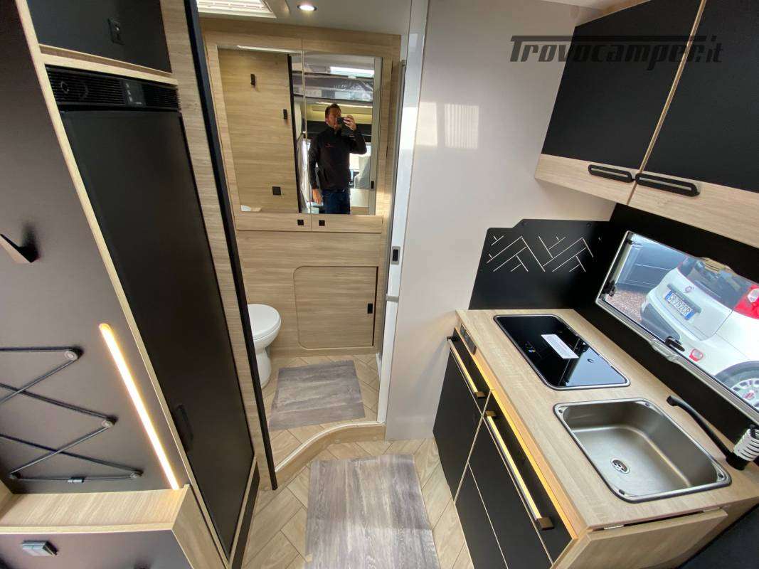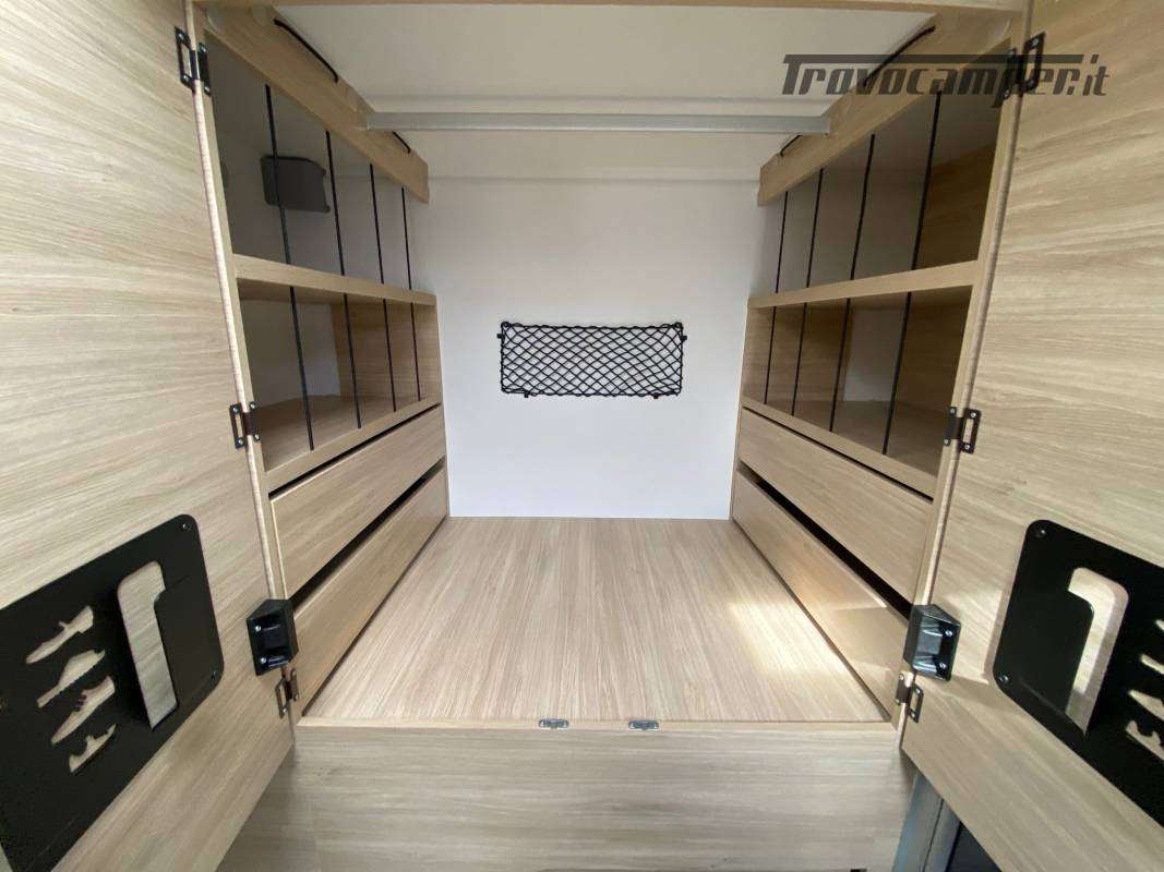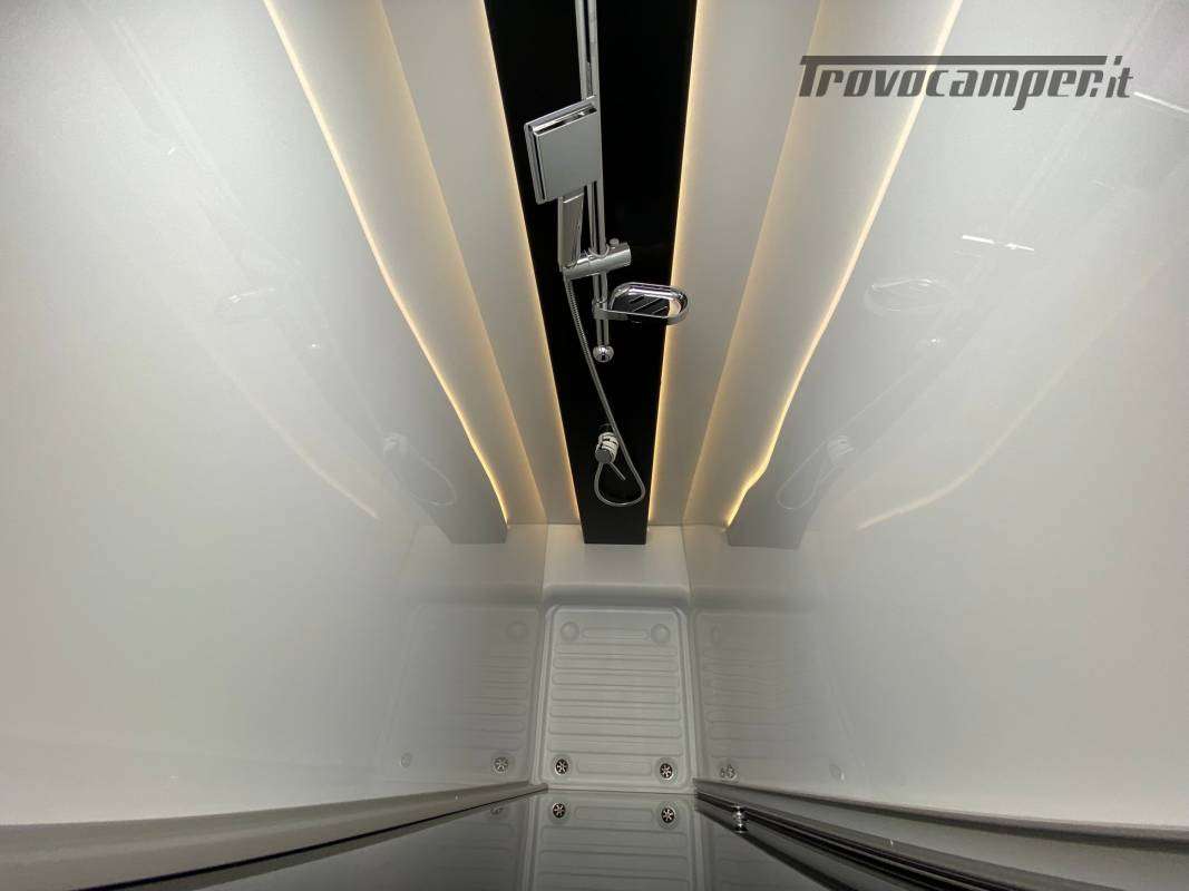 Una vivibilità incredibile, grazie al letto centrale discendente, senza letti fissi, e con garage in coda!